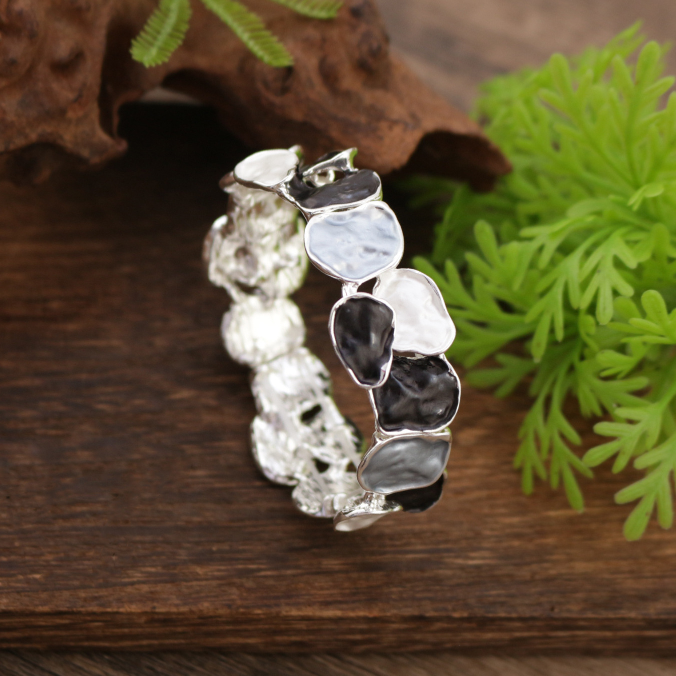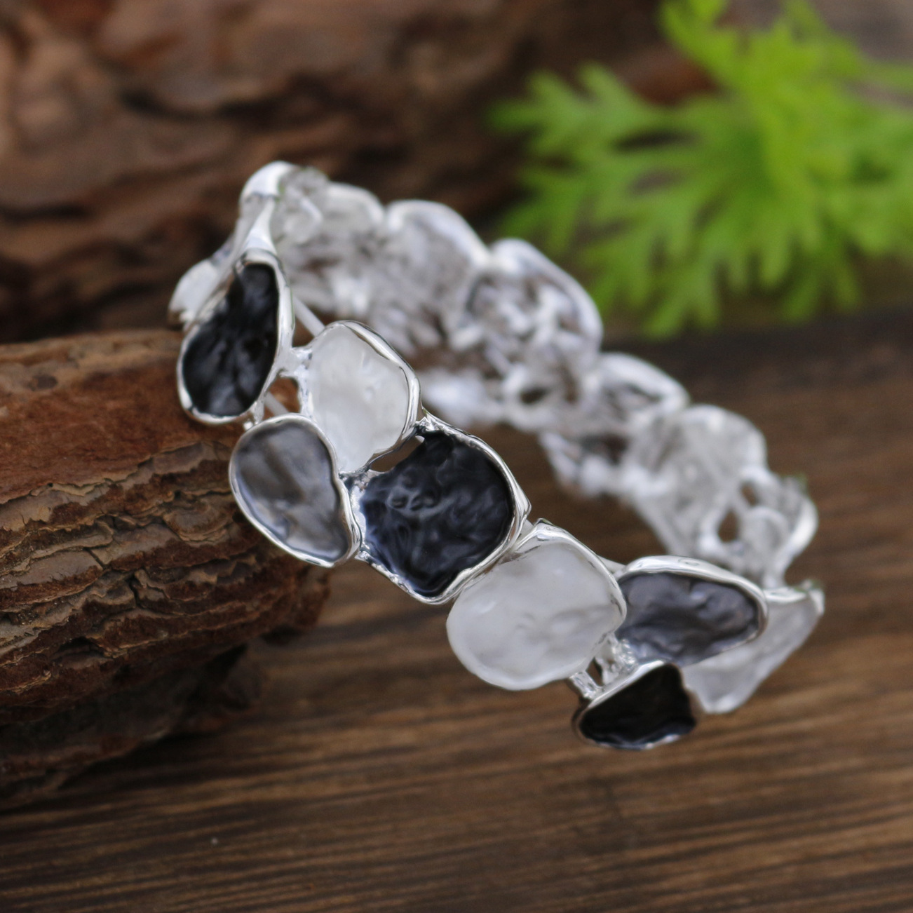 black geometric square bracelet-silver
