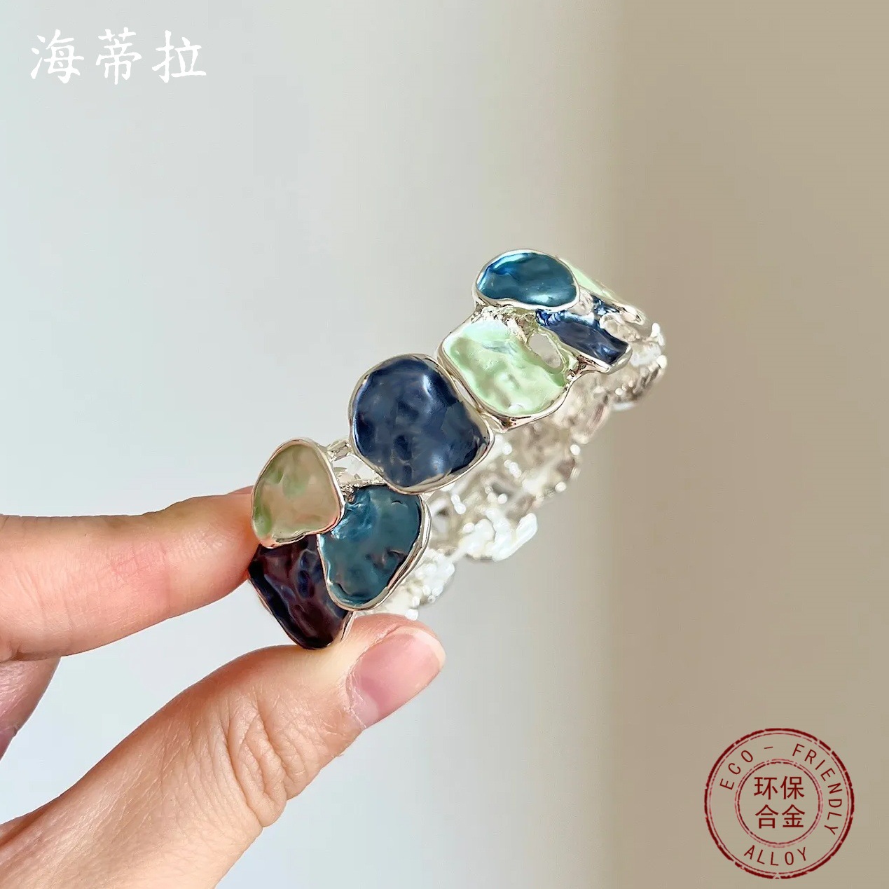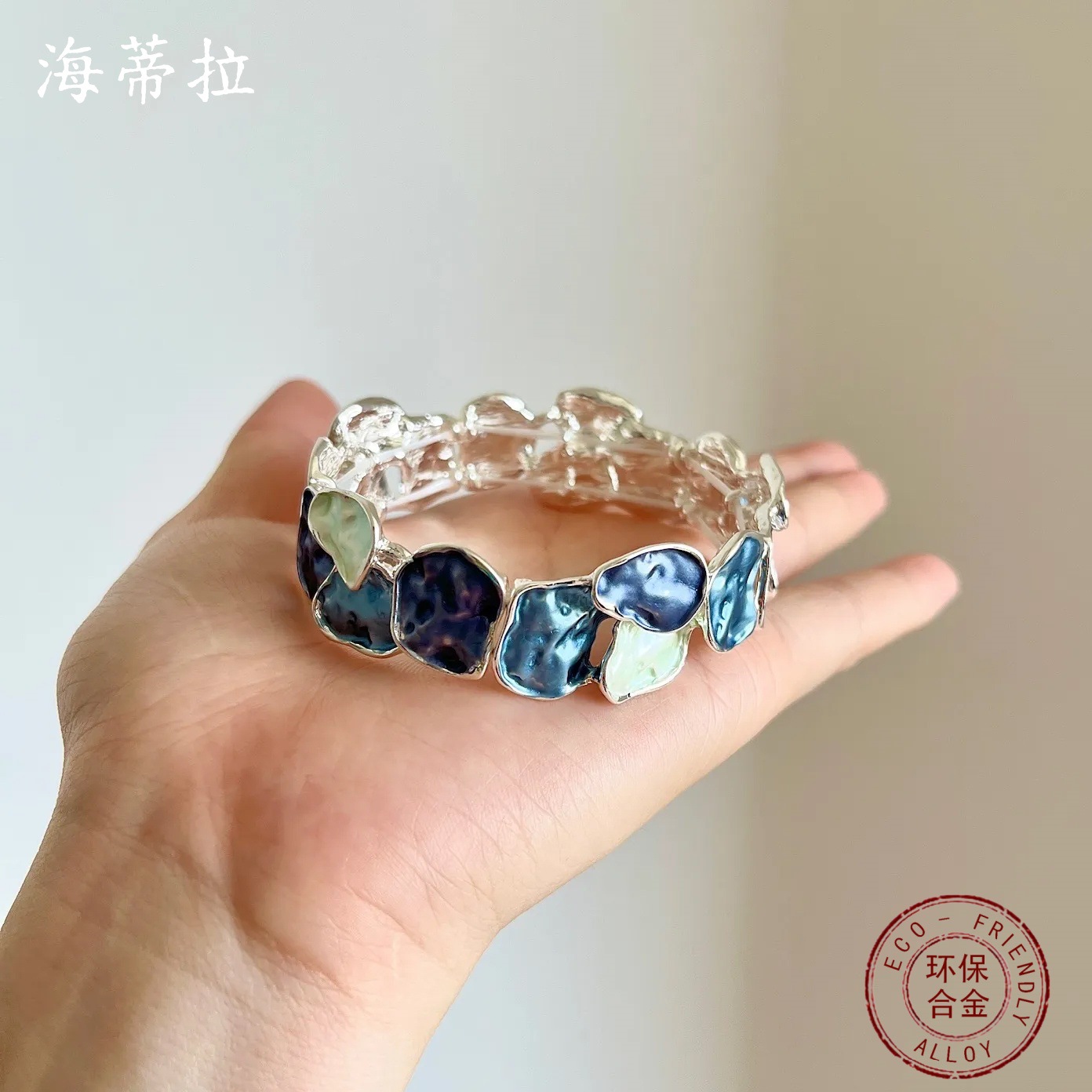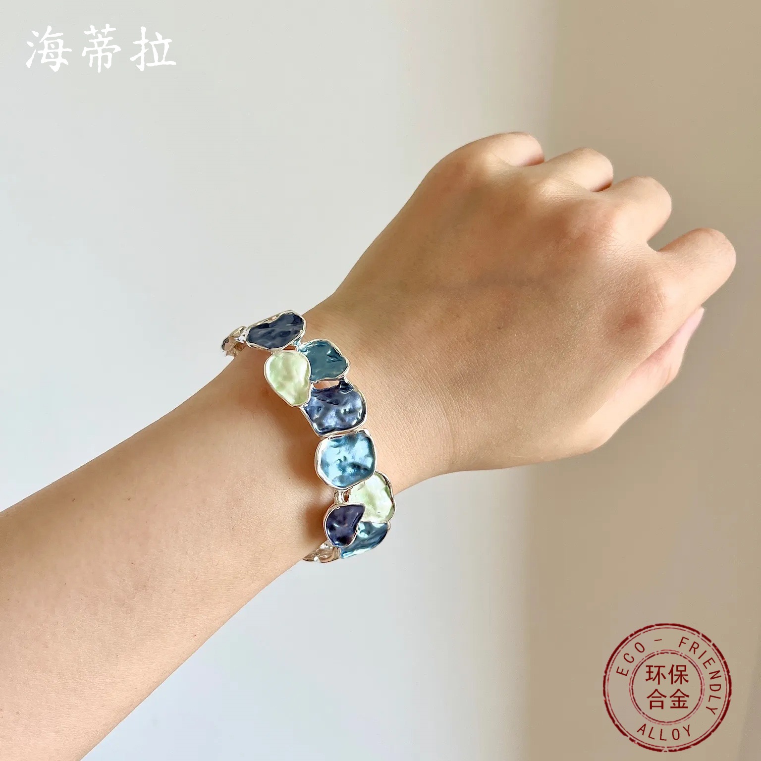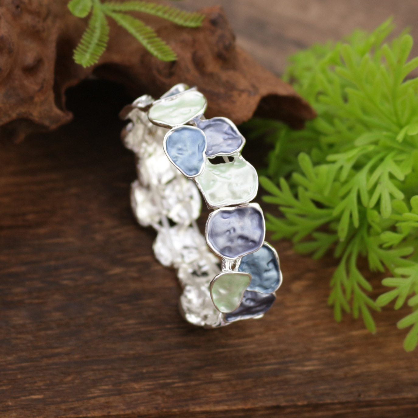 blue blocks bracelet-silver