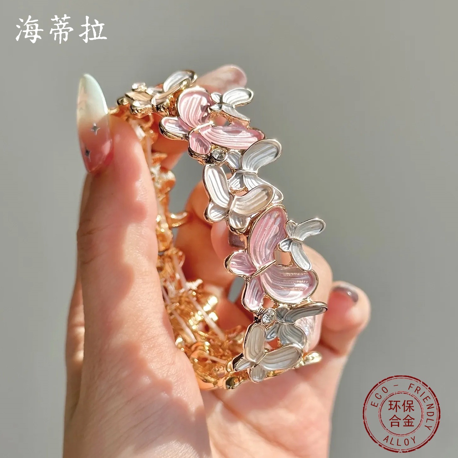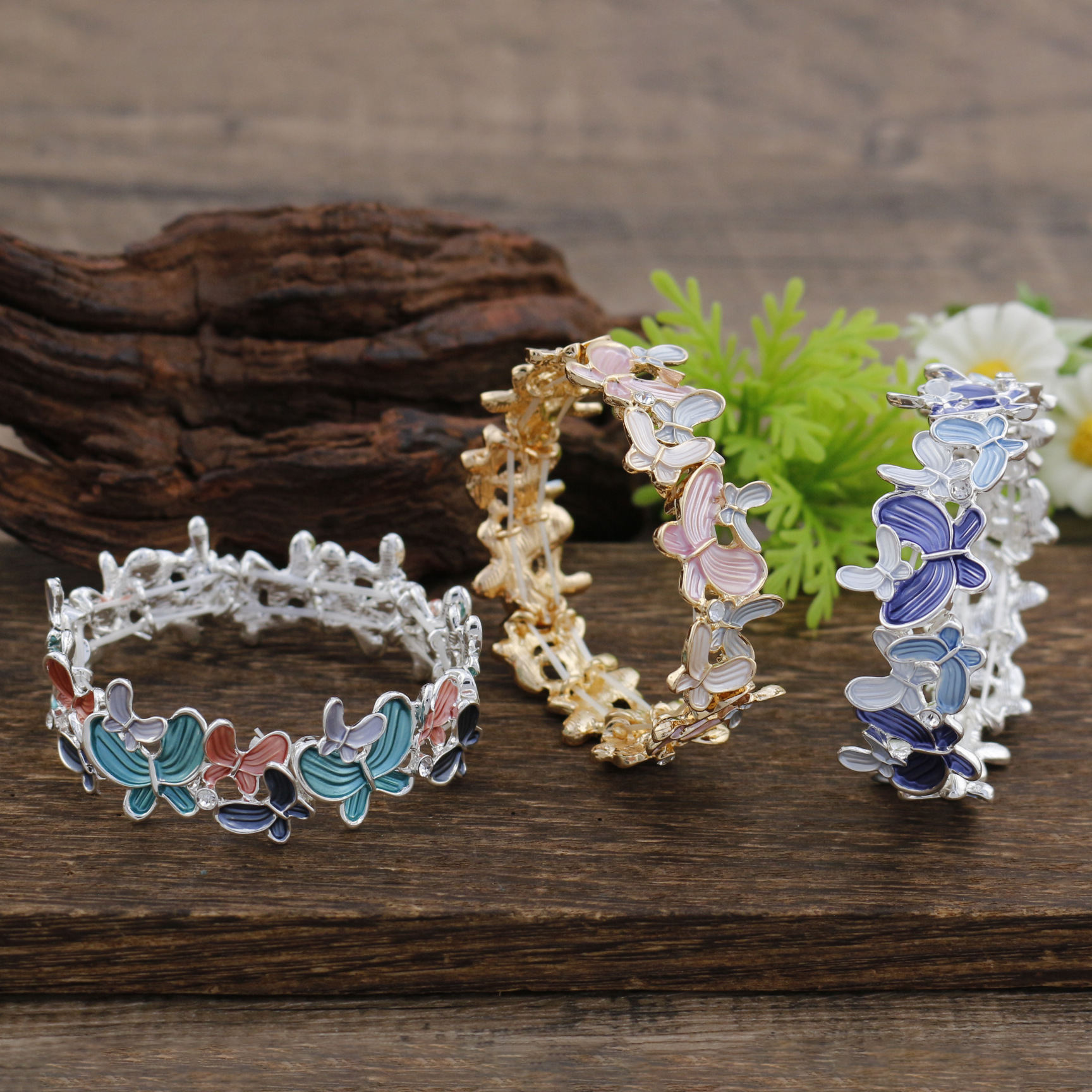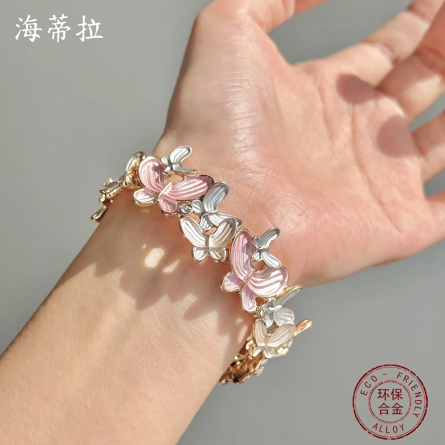 pink butterfly stretch bracelet-gold
