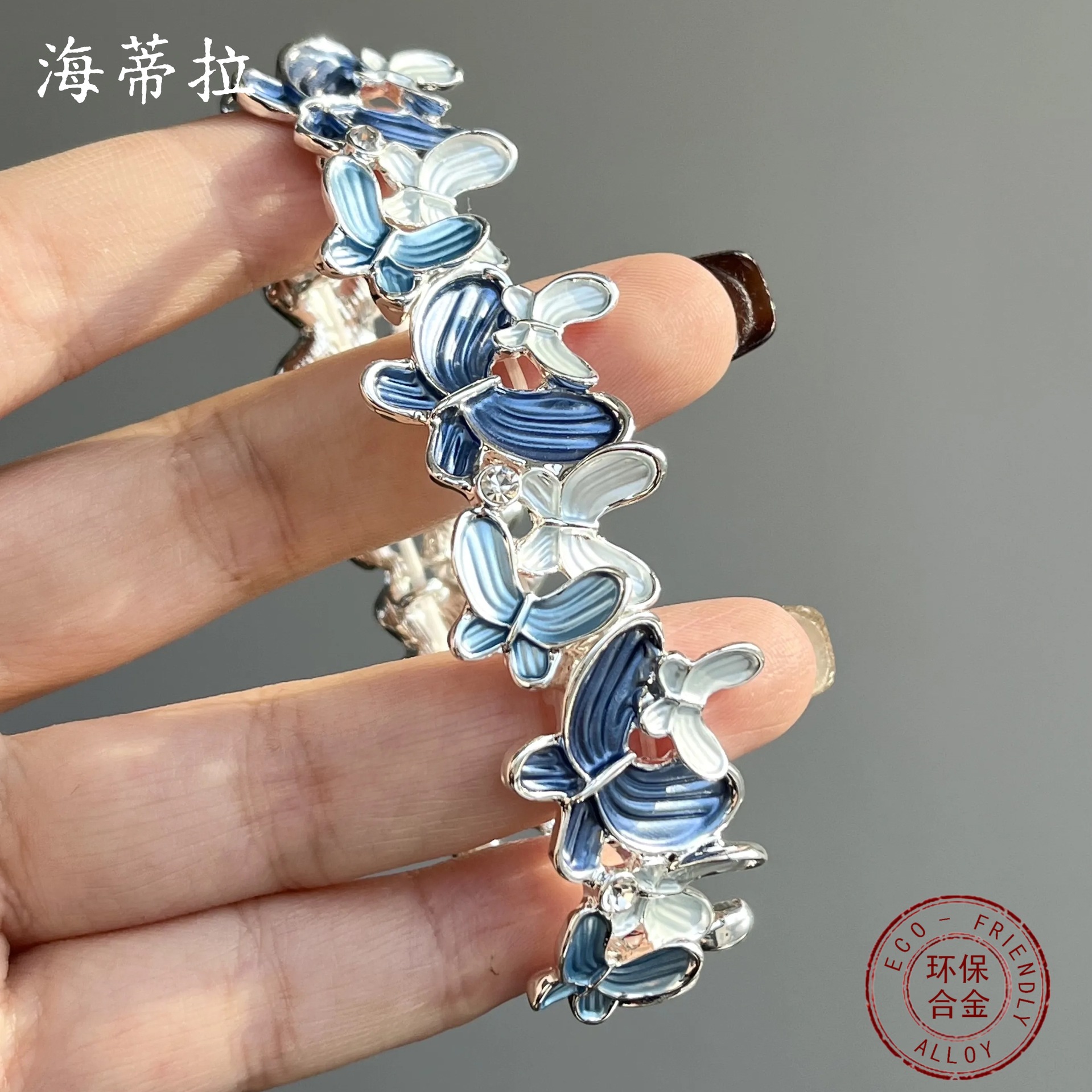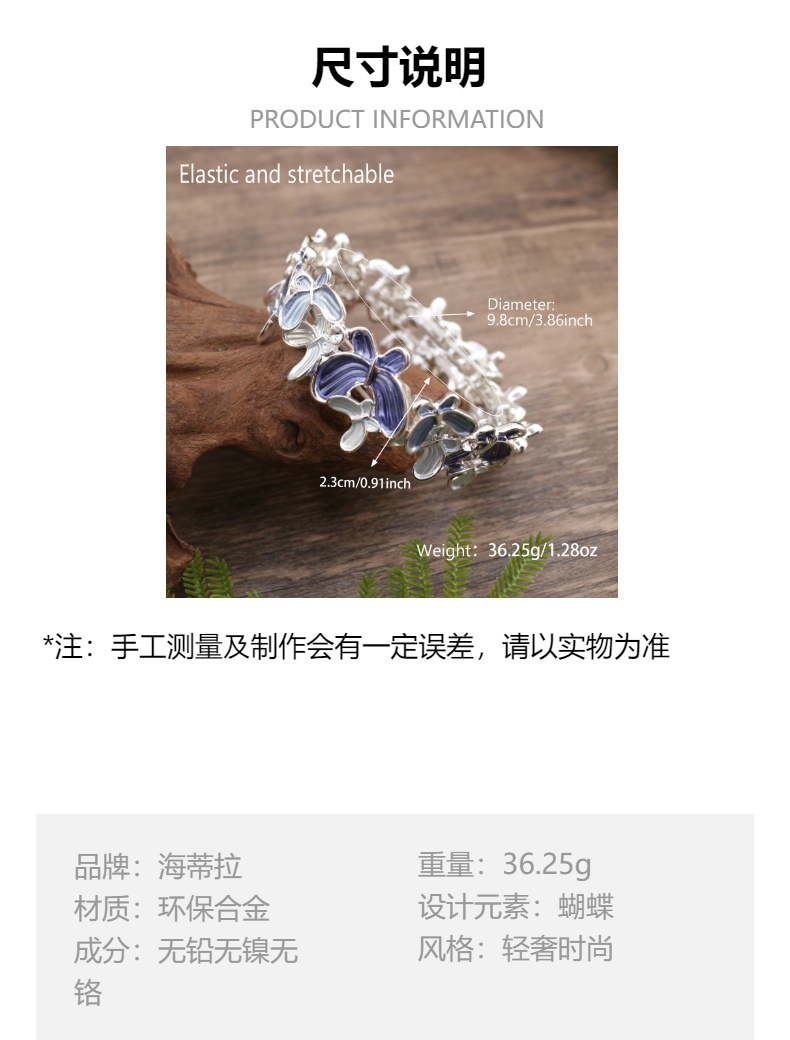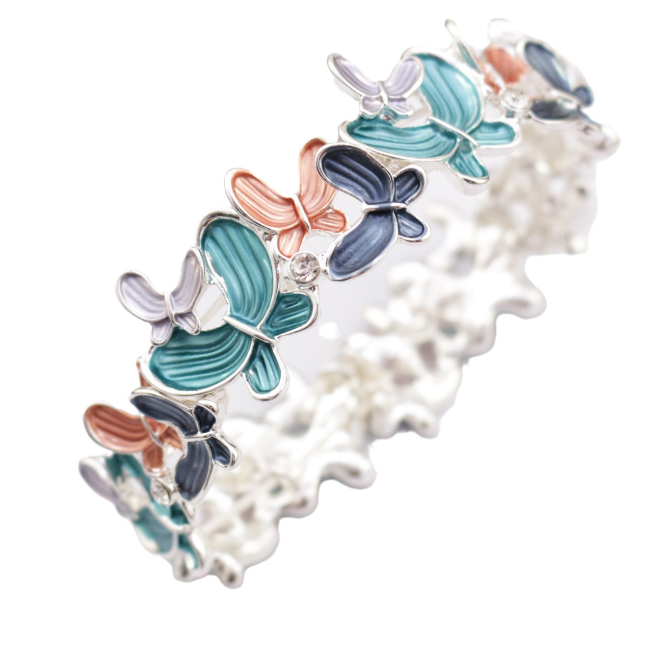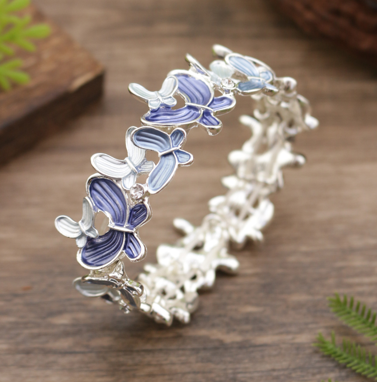 blue butterfly elastic bracelet-silver
