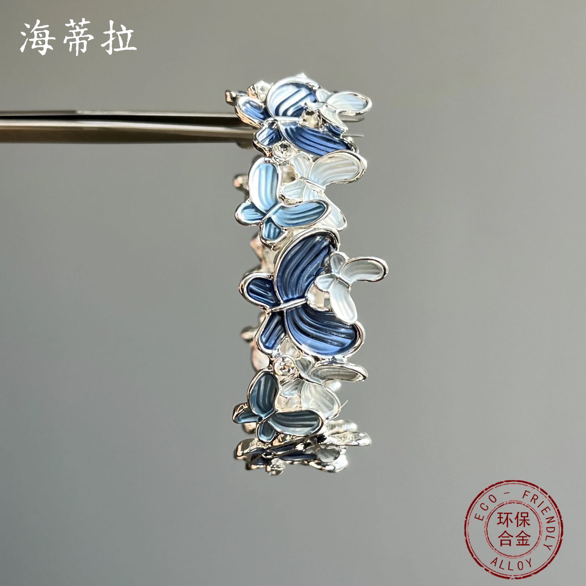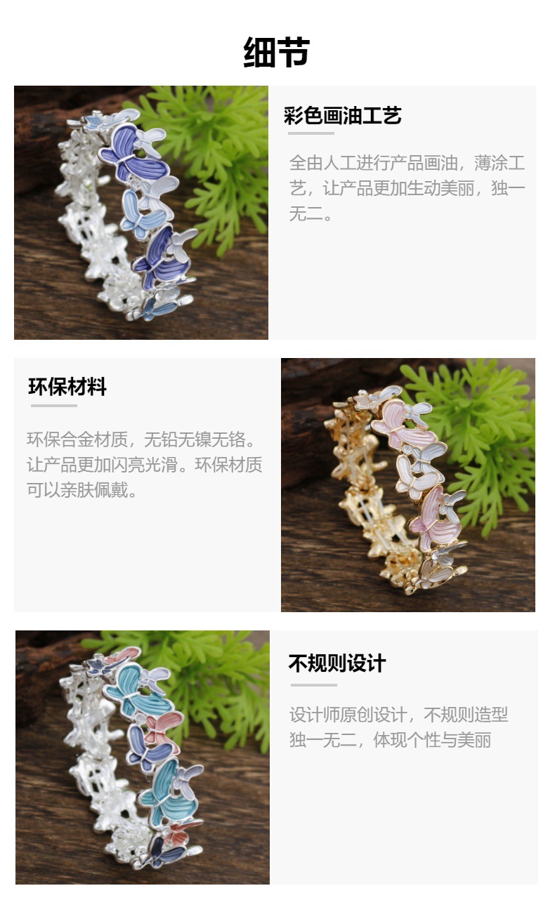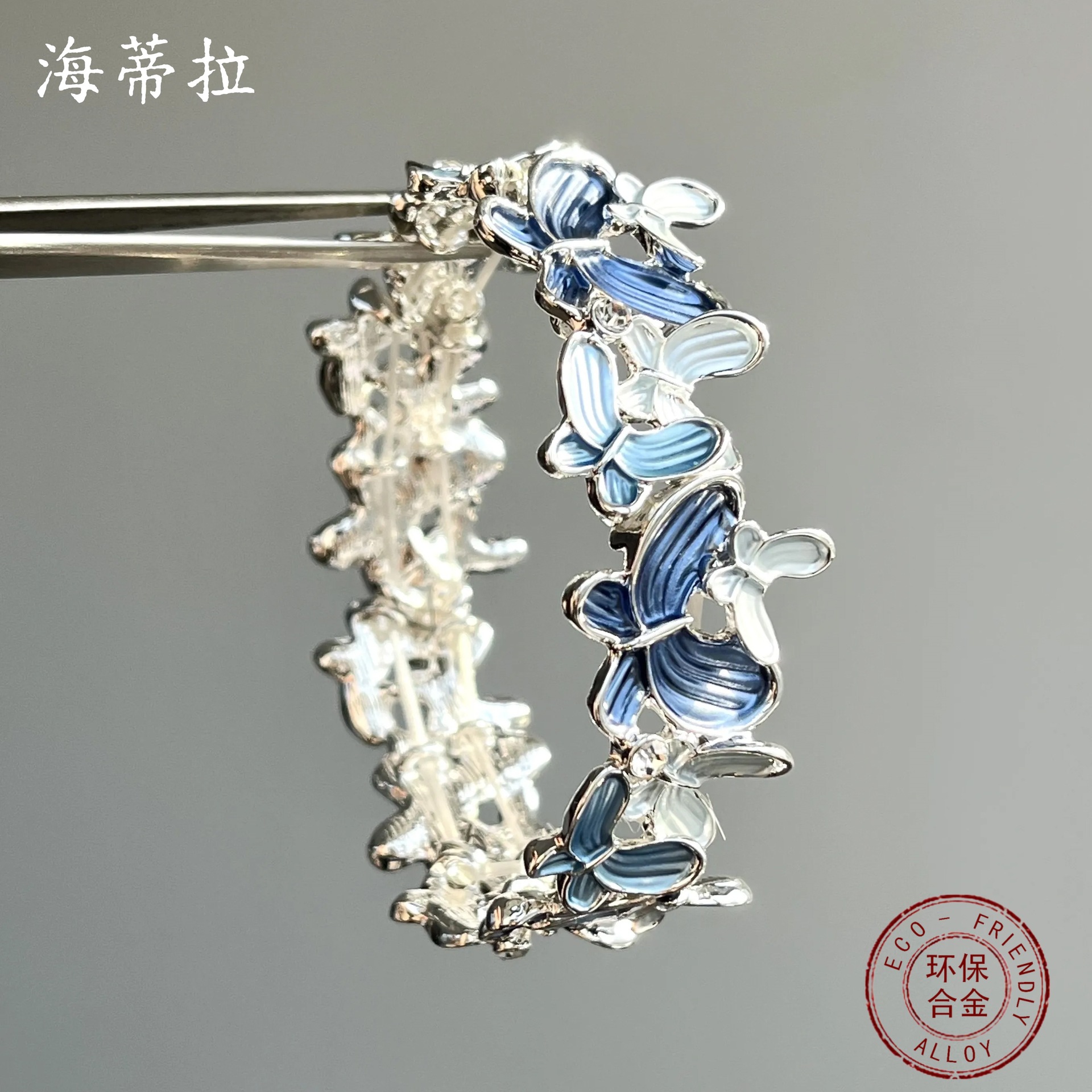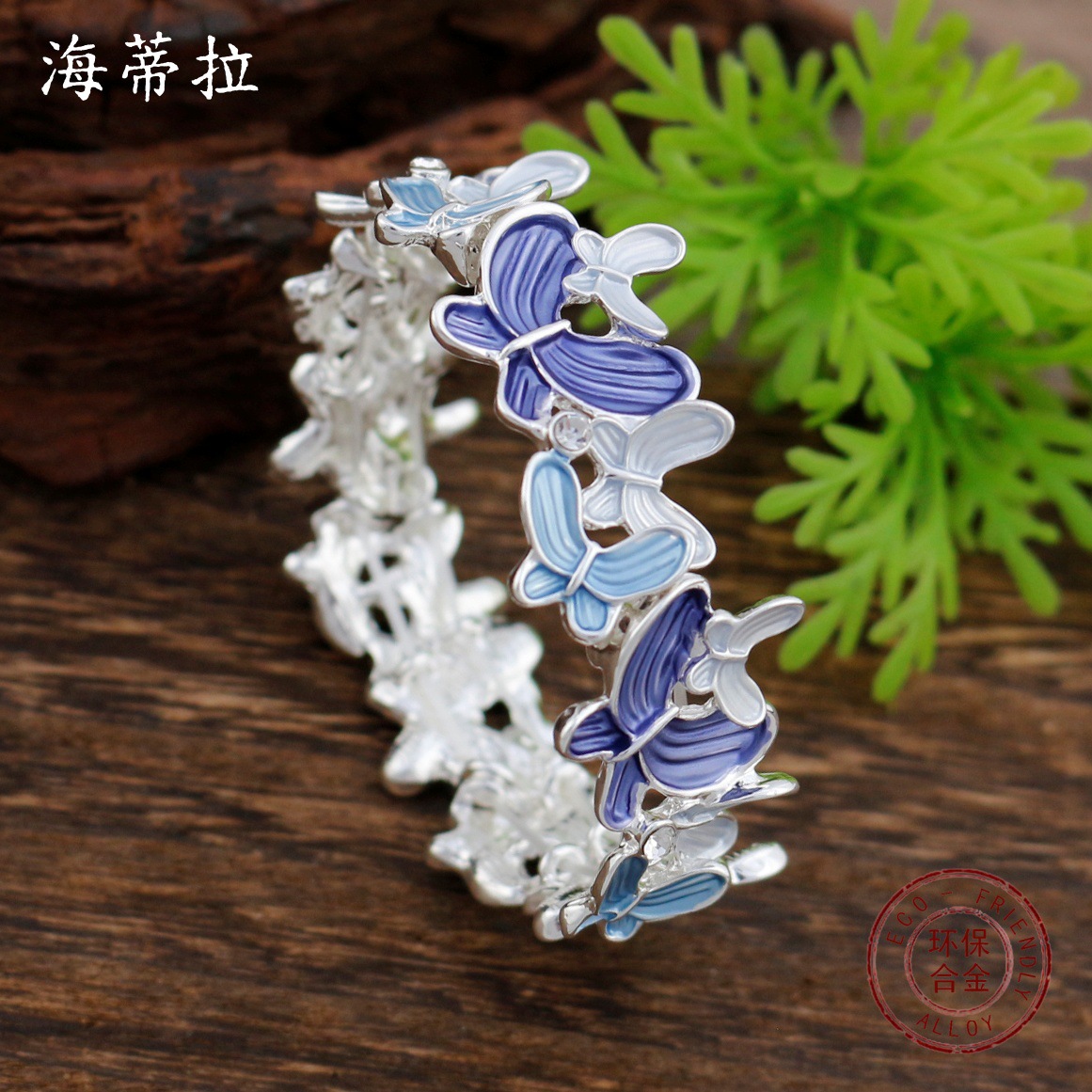 blue butterfly elastic bracelet-silver