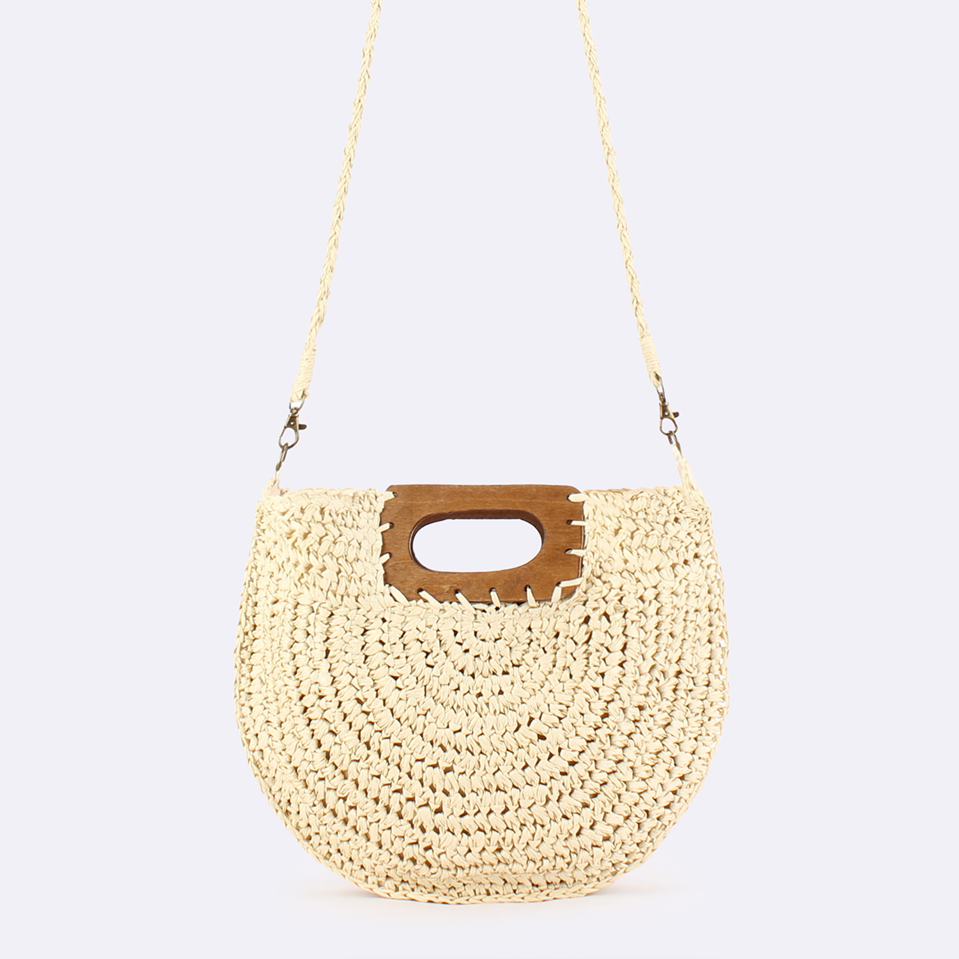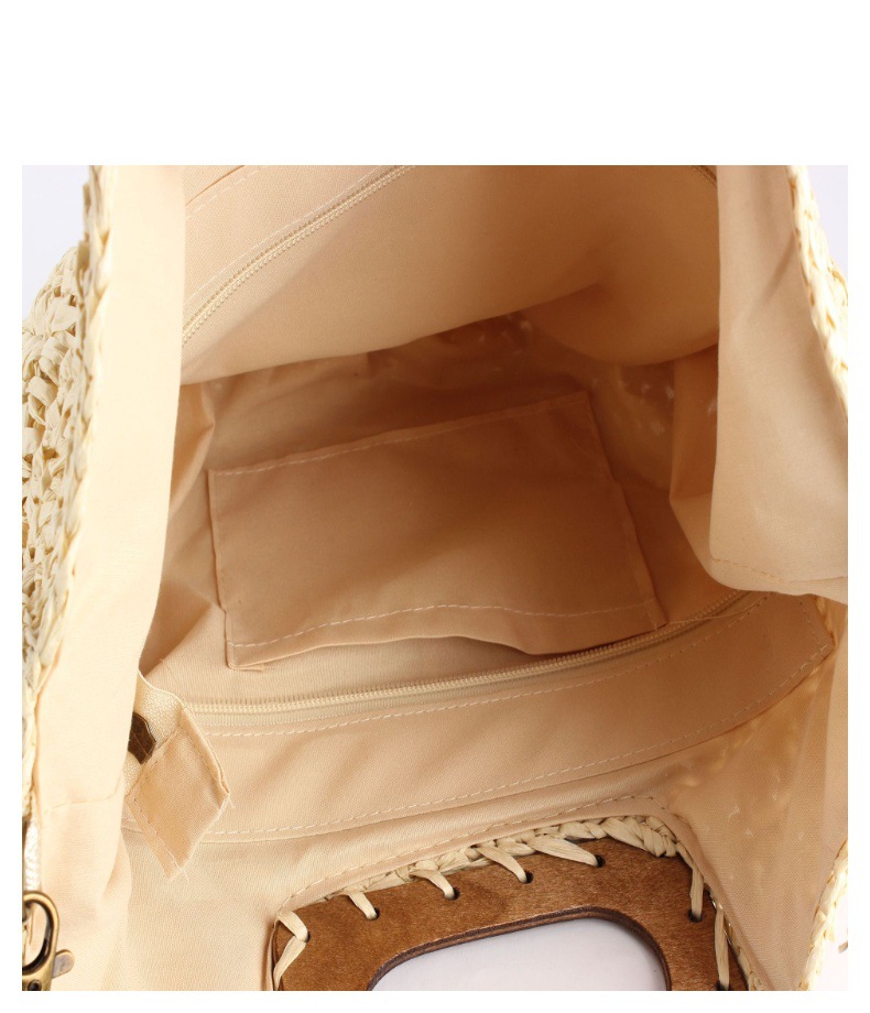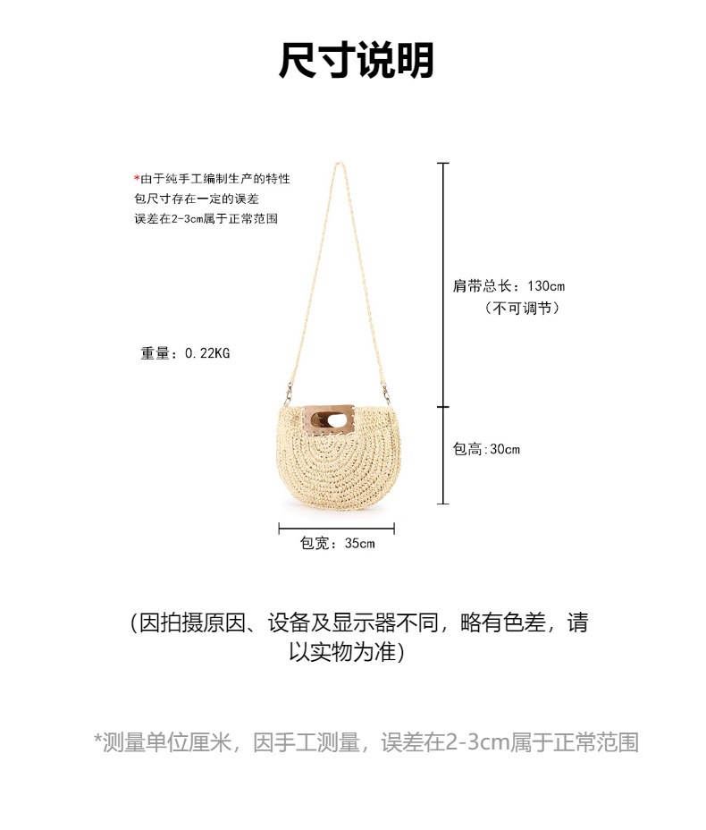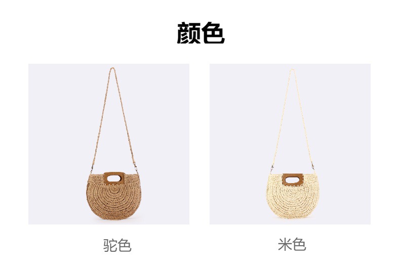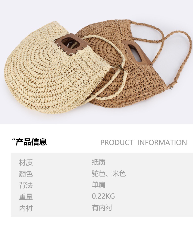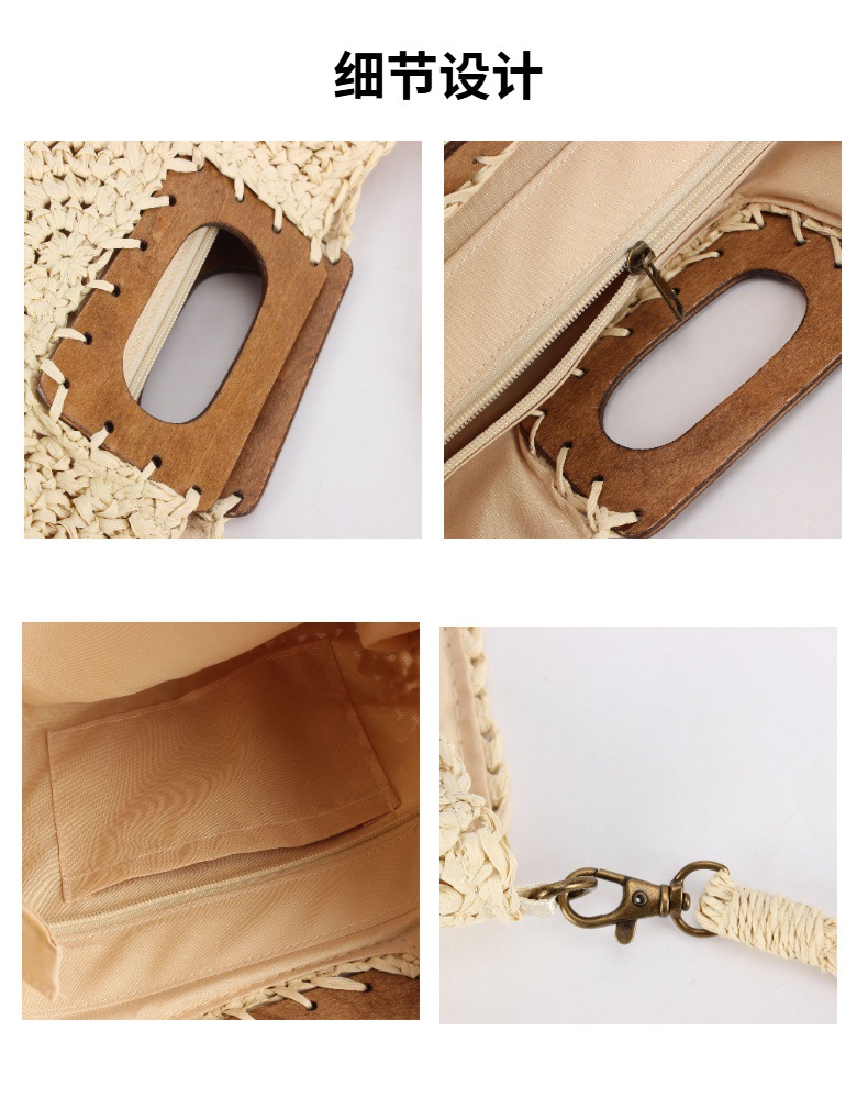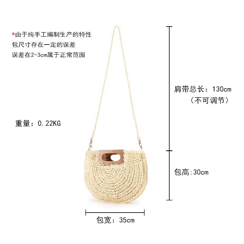 one piece dropshipping new square wood hand carrying semicircle straw bag seaside holiday fashion all-match casual niche women's bag