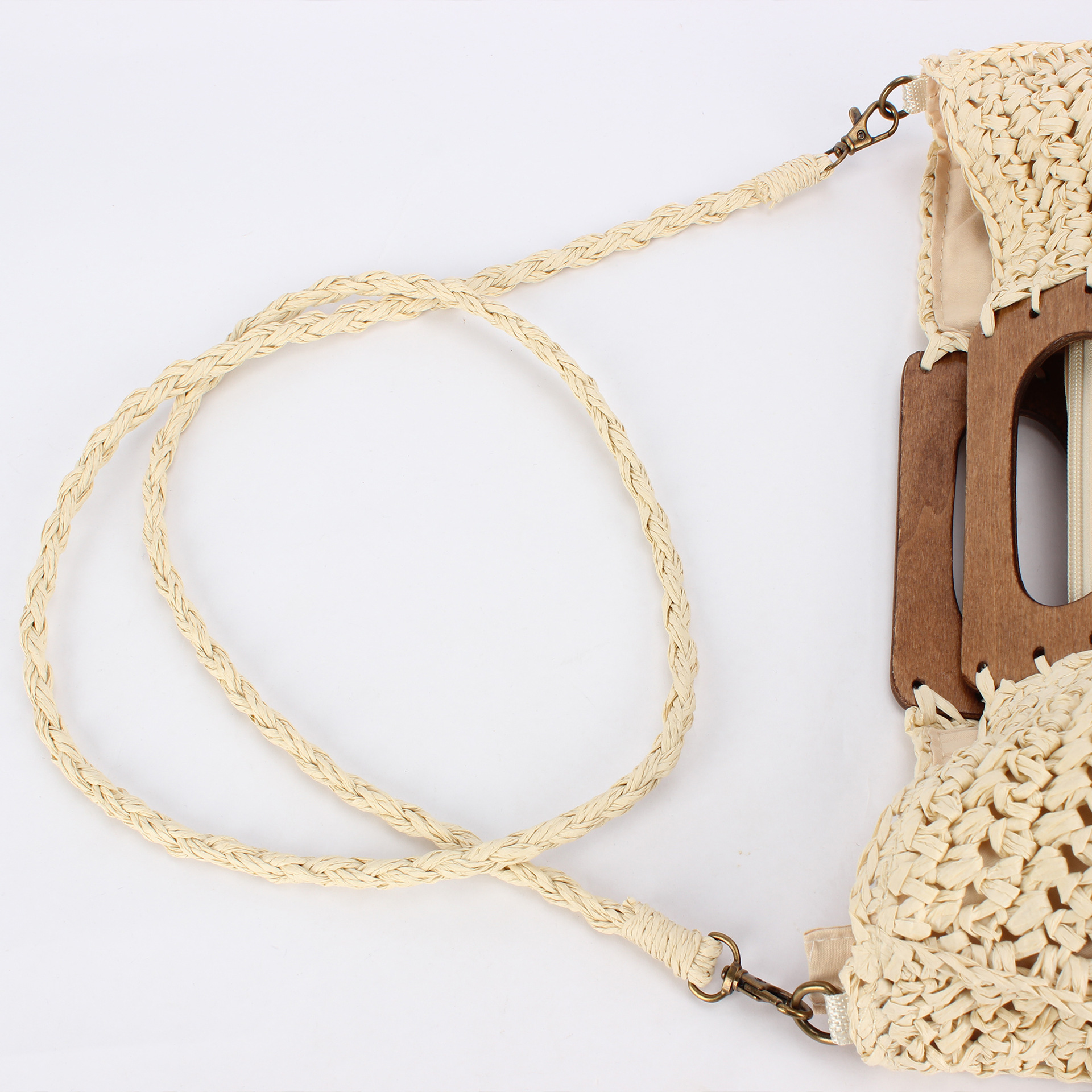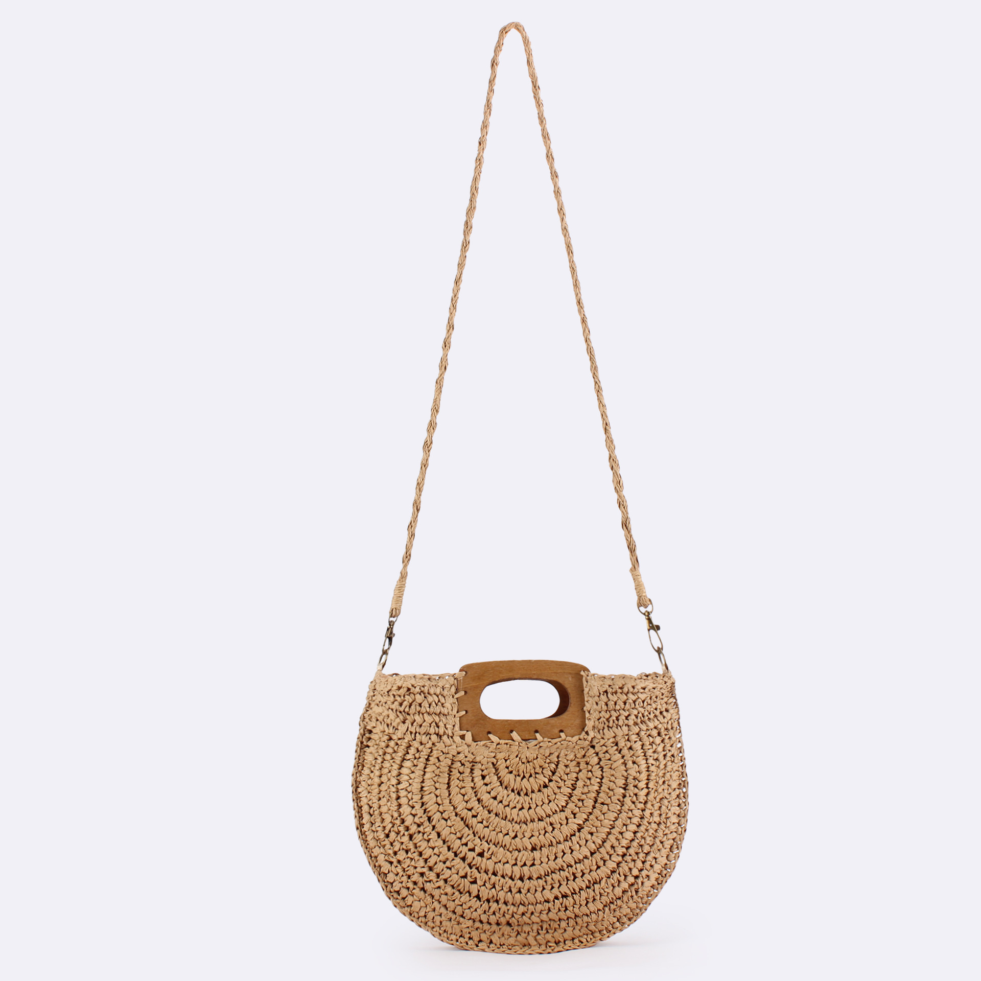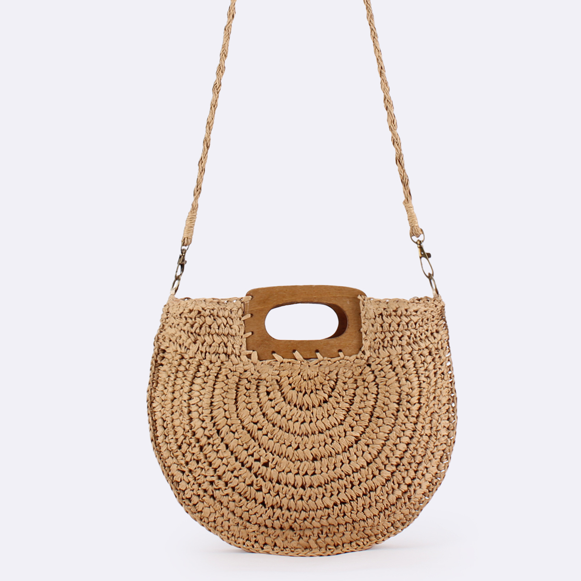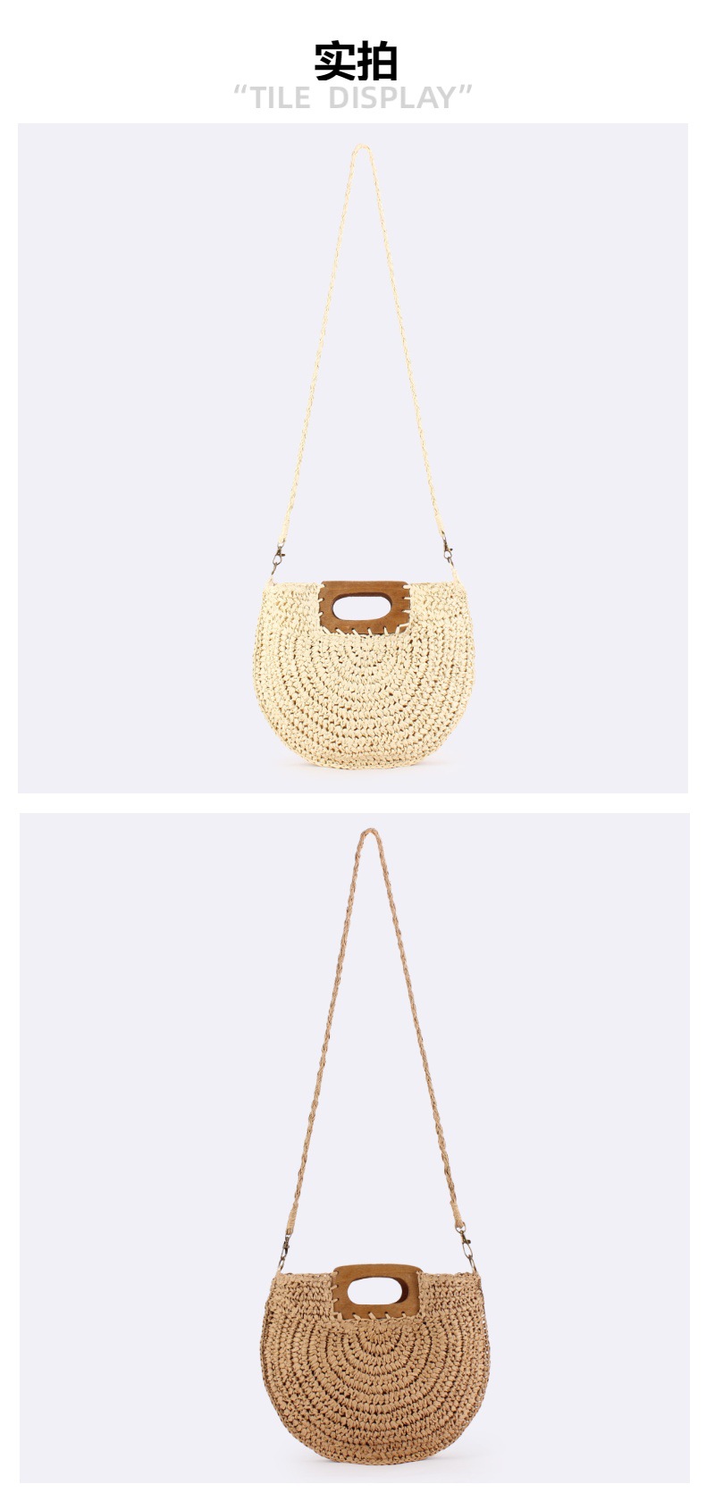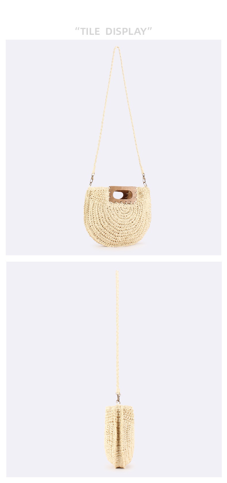 one piece dropshipping new square wood hand carrying semicircle straw bag seaside holiday fashion all-match casual niche women's bag