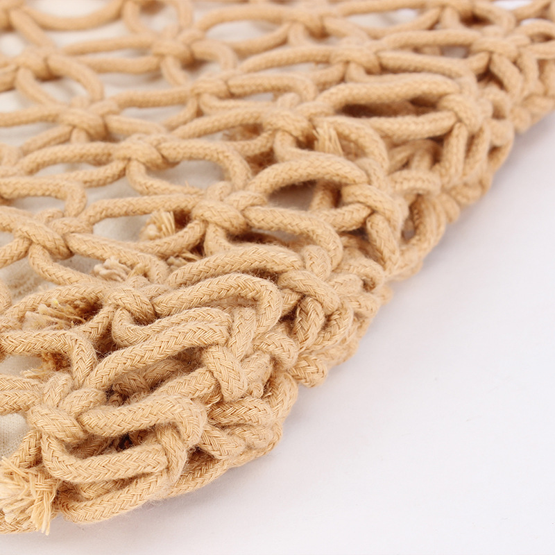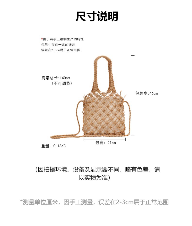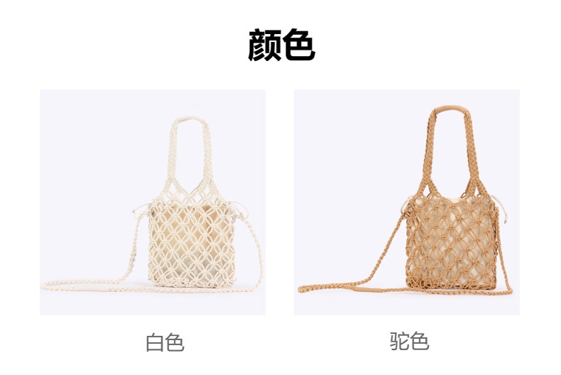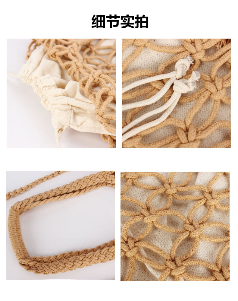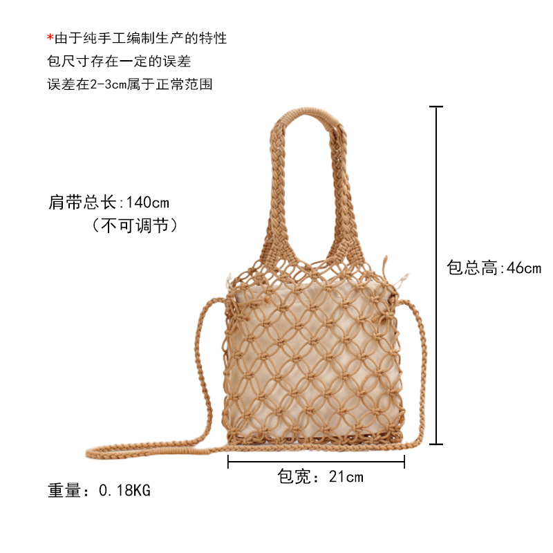 fashion commuter new pure color hand carrying crossbody dual-use hollow woven bag mori style cotton string net pocket vacation beach bag
