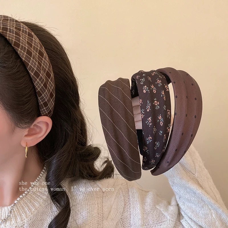 #22 coffee color suede wide brim hair band