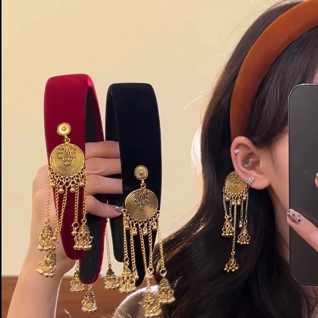 #19 red tassel wide brim hair band