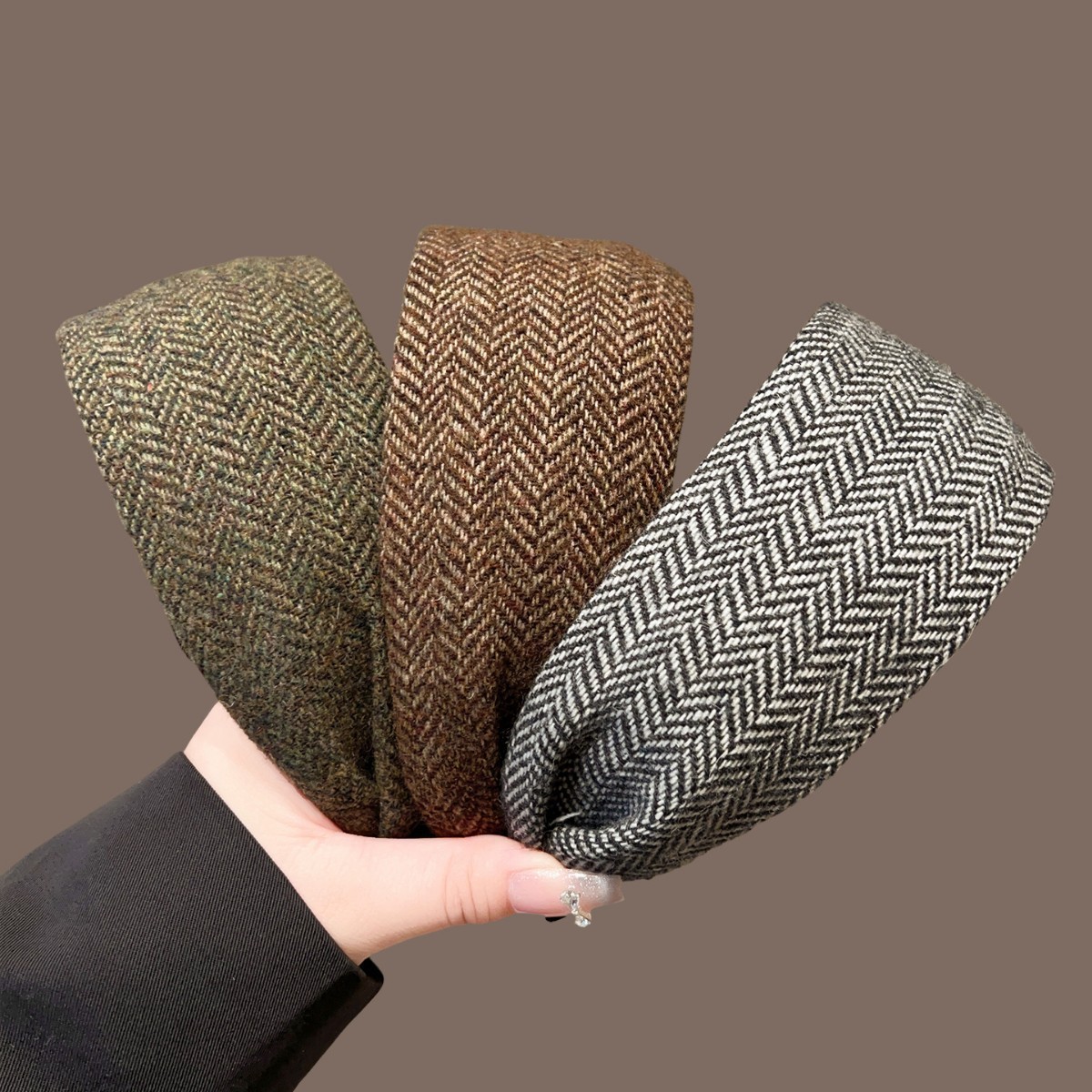 #7 coffee color plaid woolen narrow edge headband