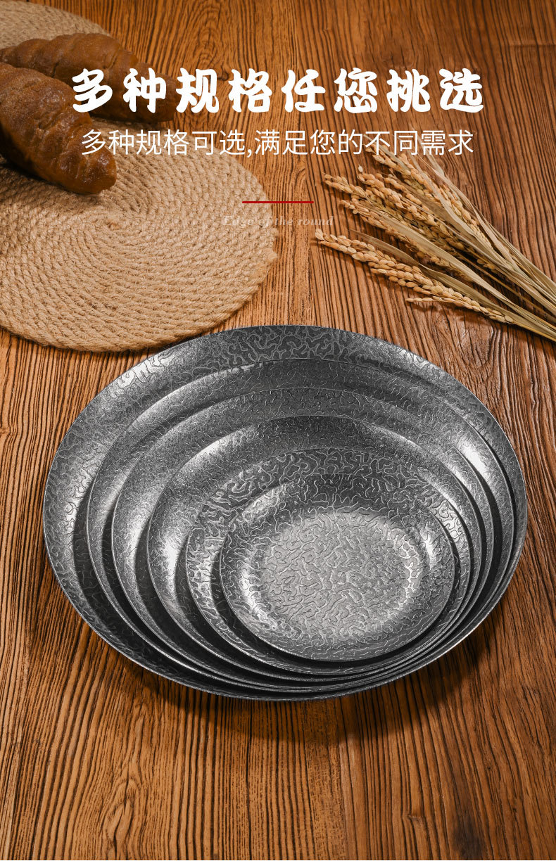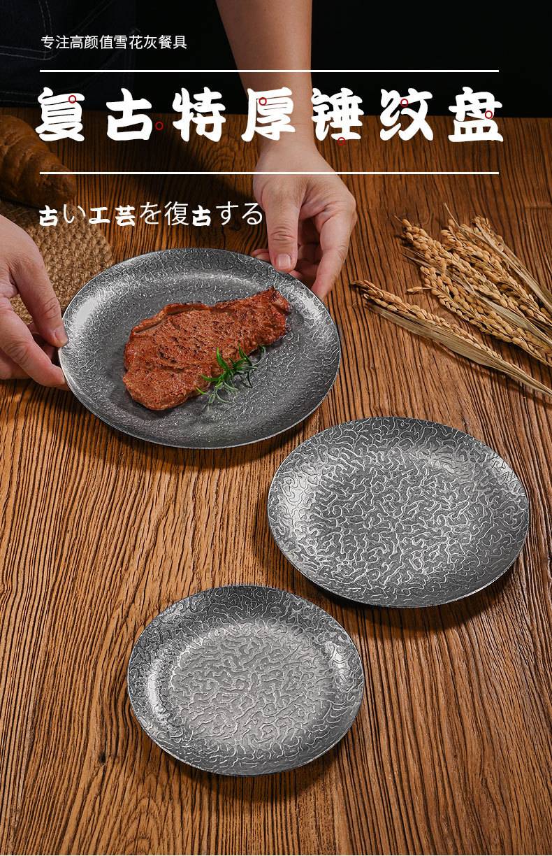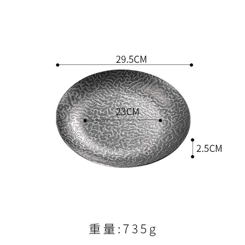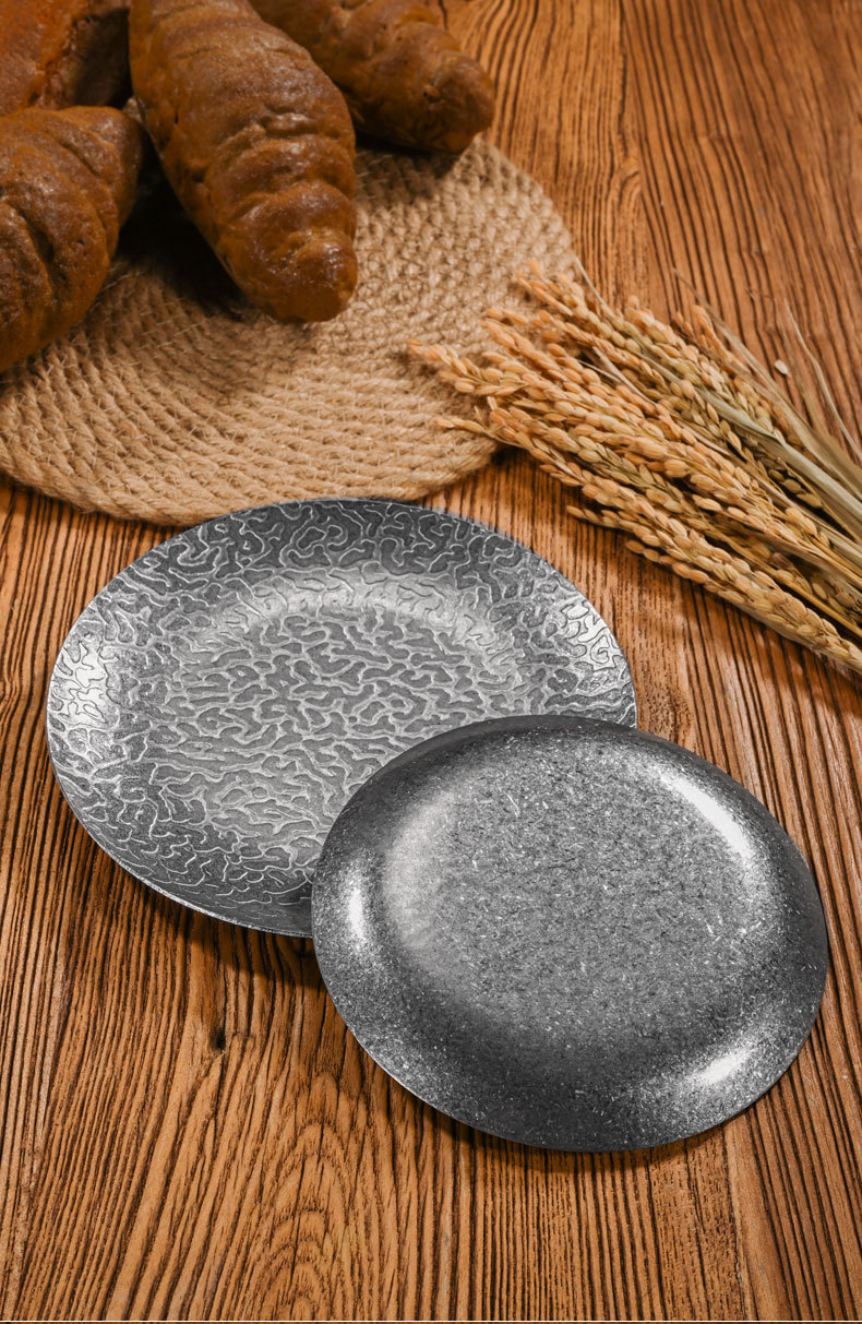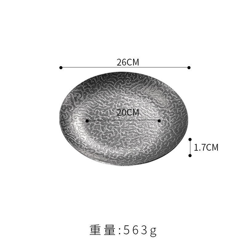26cm extra-thick hammered finish round plate (retro silver)