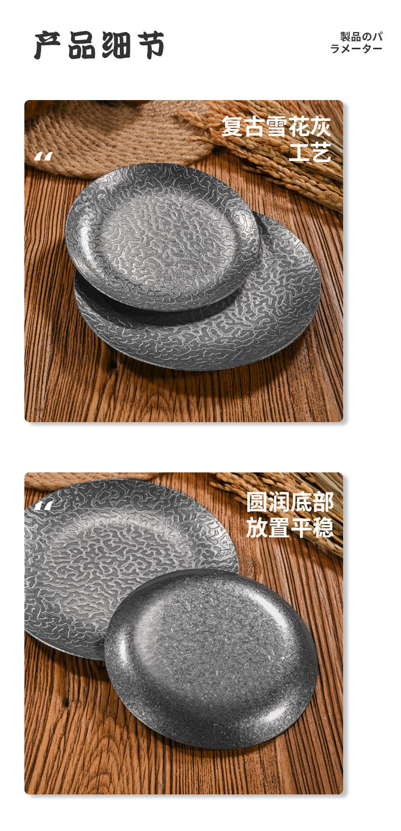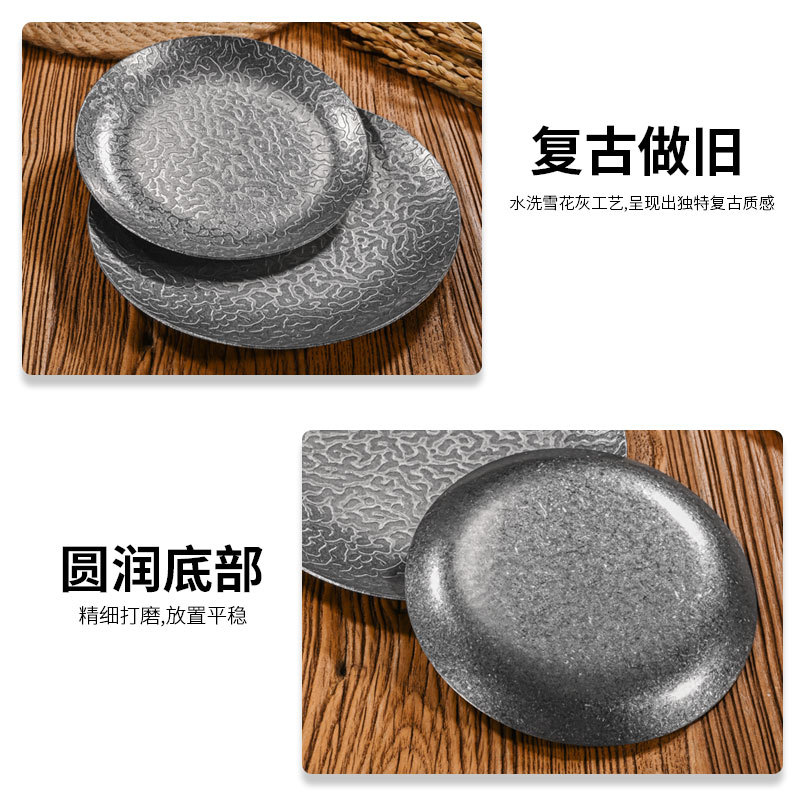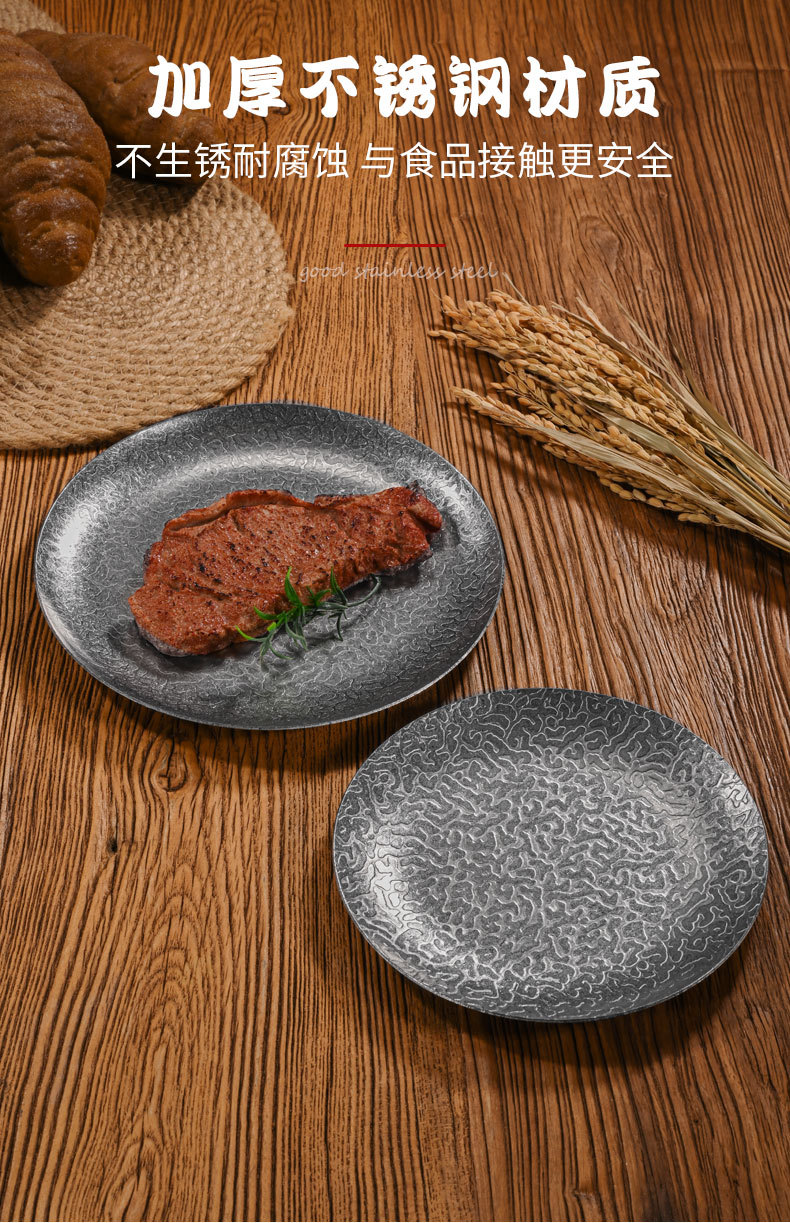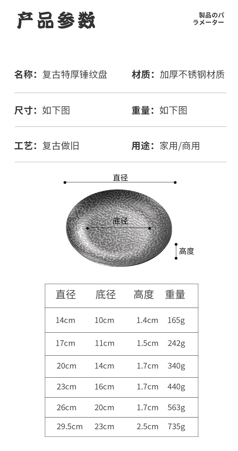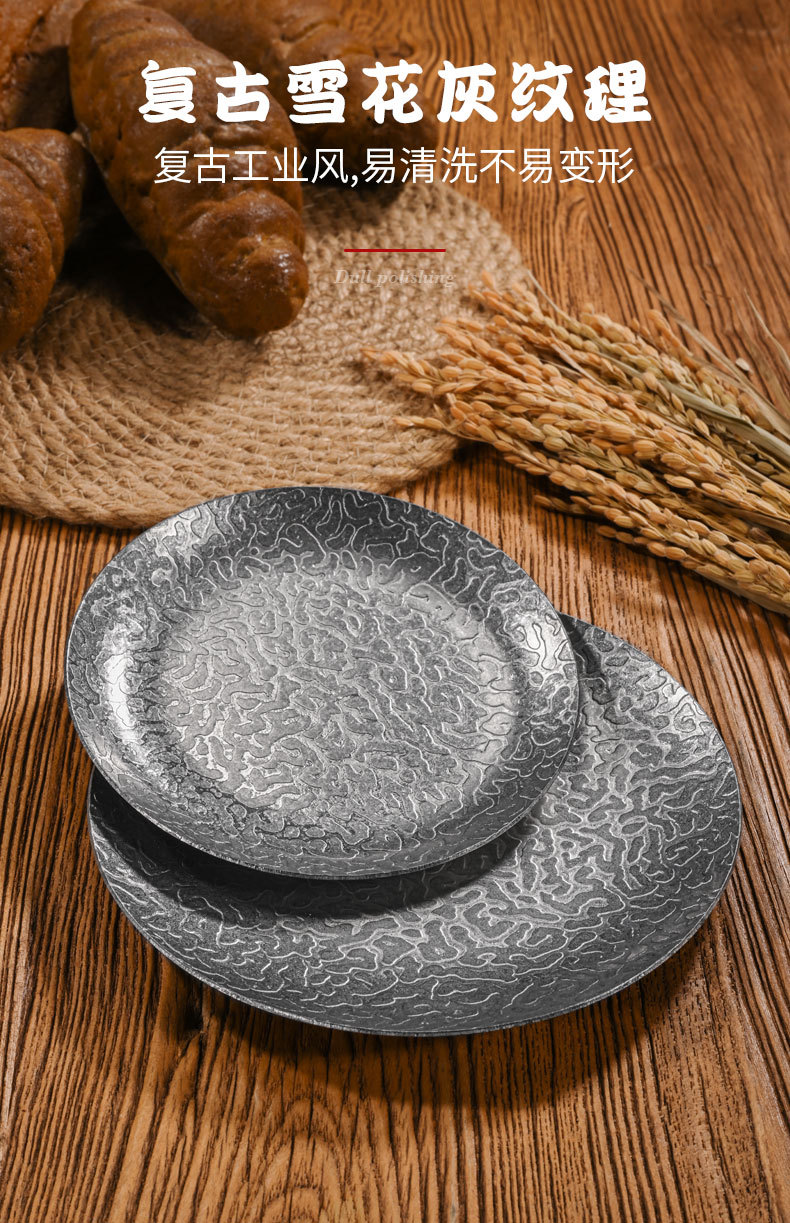 26cm extra-thick hammered finish round plate (retro silver)