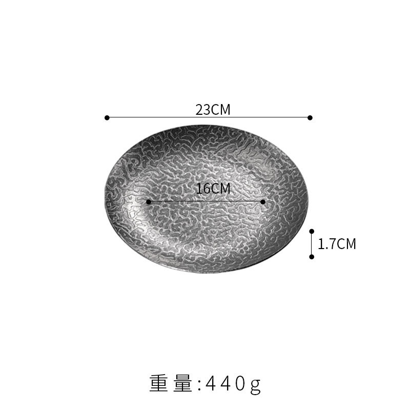 23cm extra-thick hammered finish round plate (retro silver)