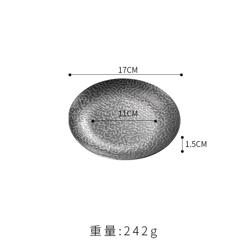 17cm extra-thick hammered finish round plate (retro silver)