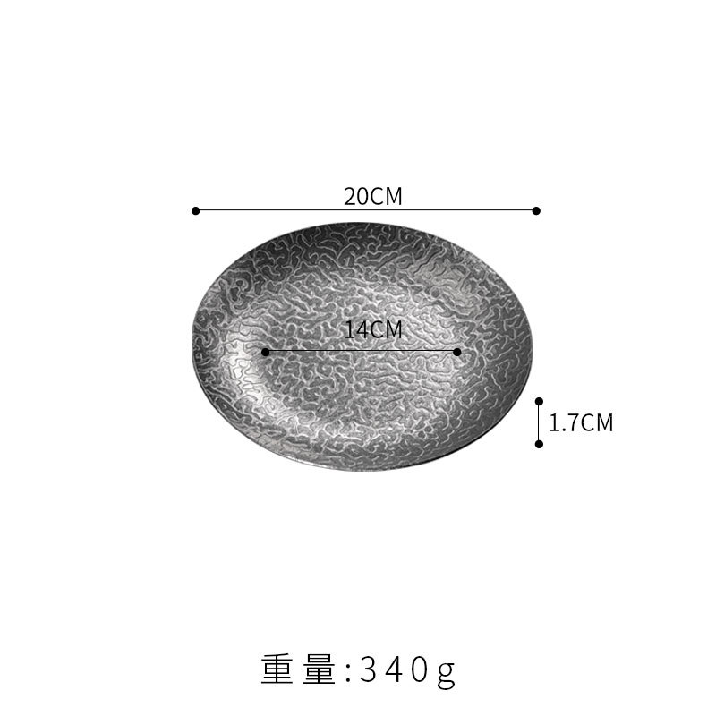 20cm extra-thick hammered finish round plate (retro silver)