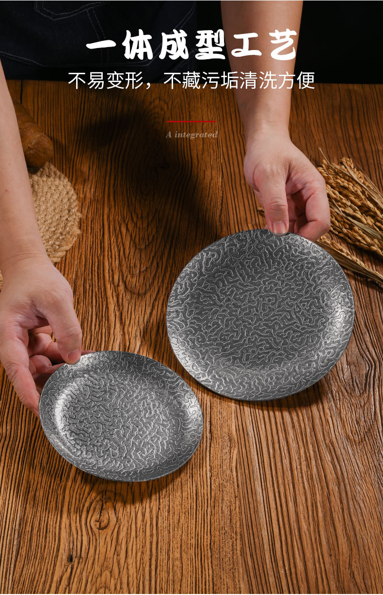 14cm extra-thick hammered finish round plate (retro silver)