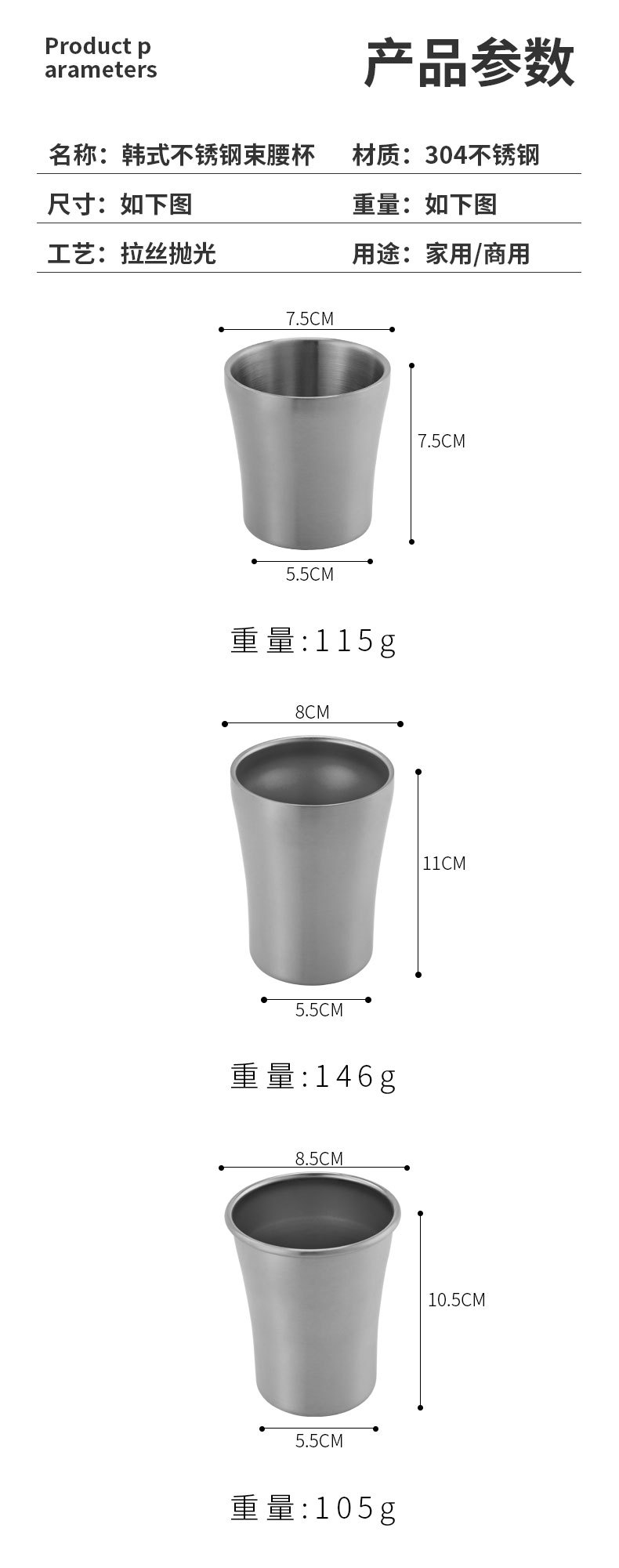 180ml double-layer waist cup (silver)