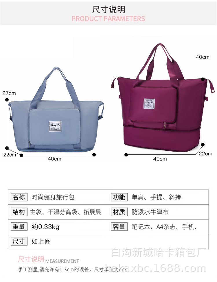 wholesale dry wet separation sport fitness bag portable large capacity short distance boarding bag folding short distance travel buggy bag
