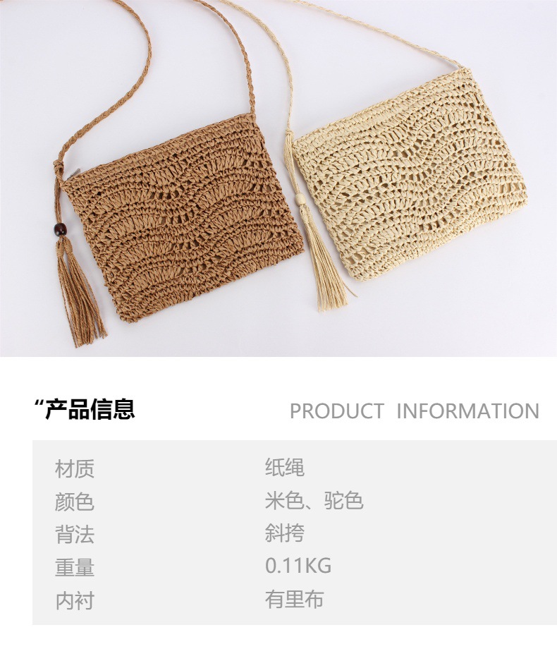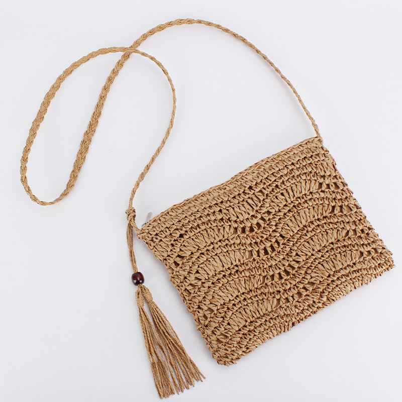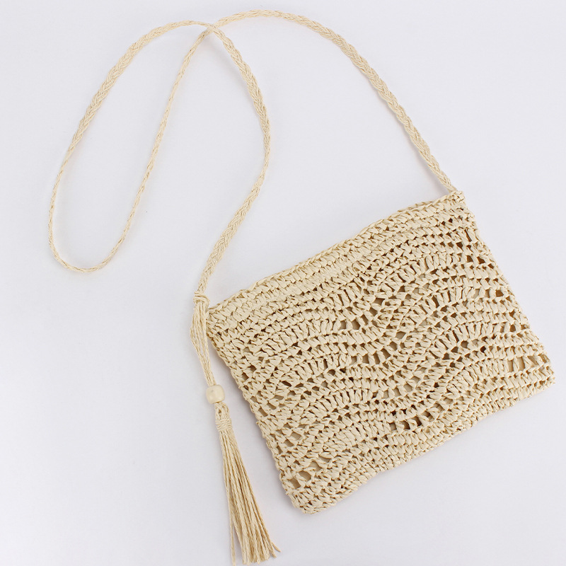 one piece dropshipping new hand-woven bag versatile simple tassel messenger bag seaside vacation beach bag women's bag