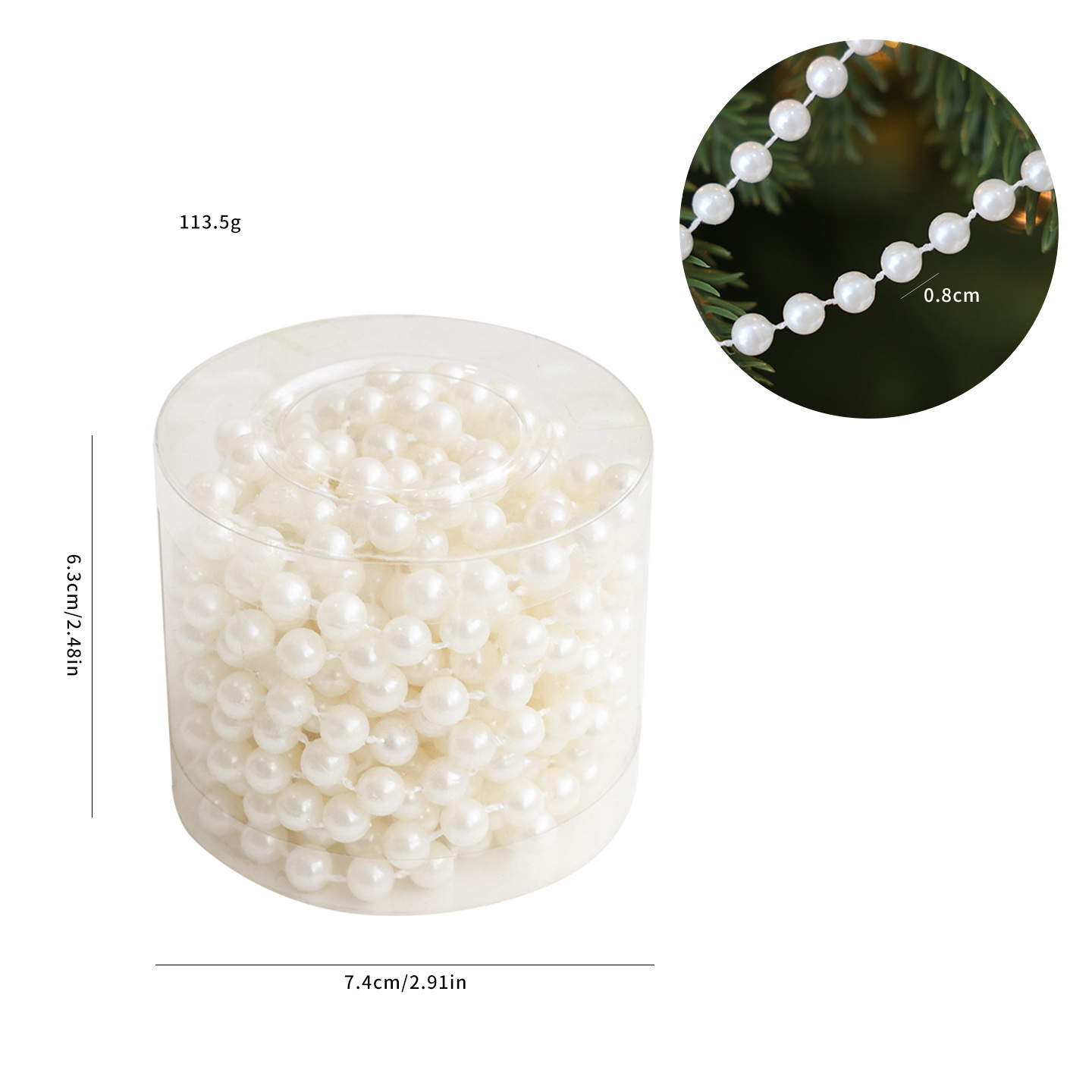 one 5-meter 8mm white bead necklace