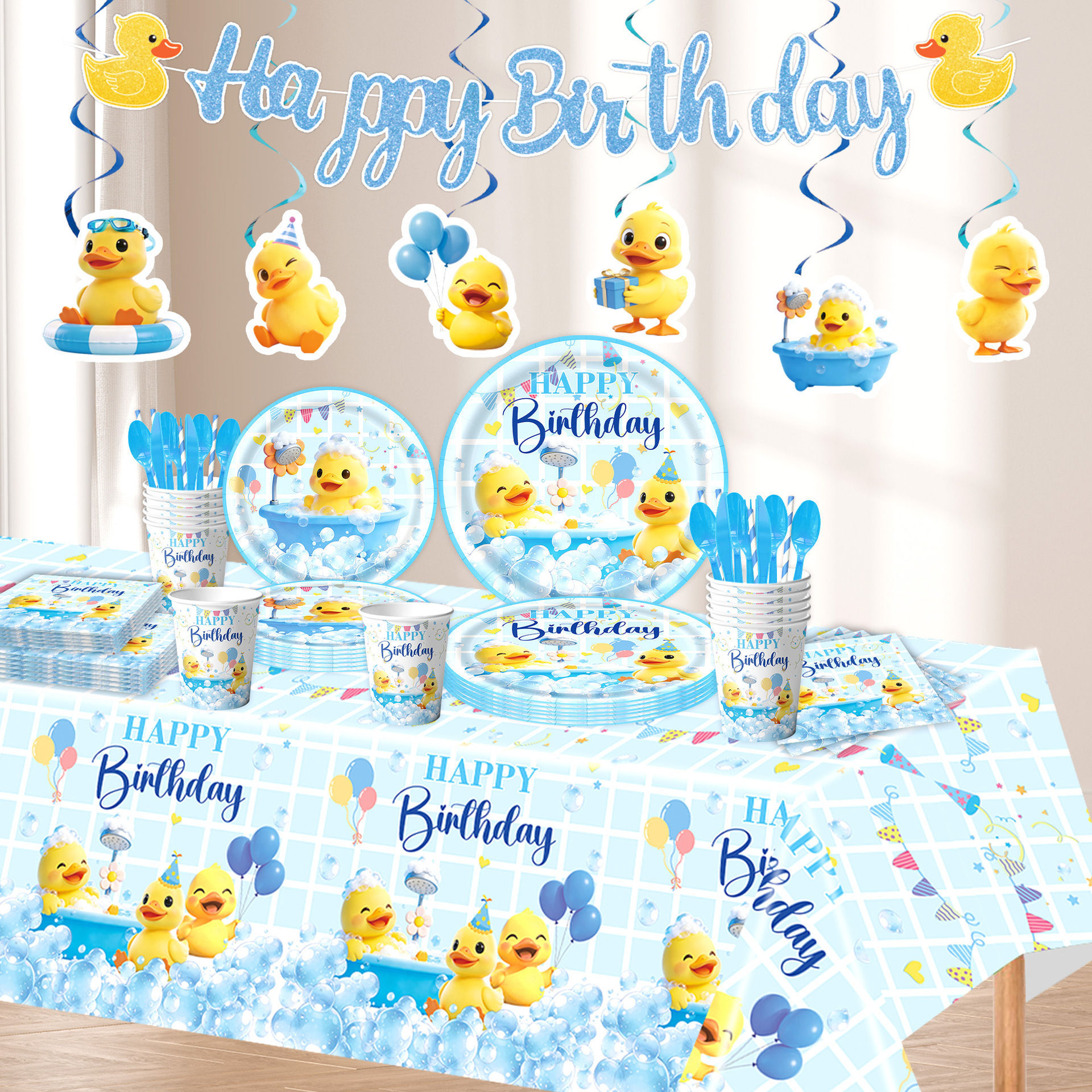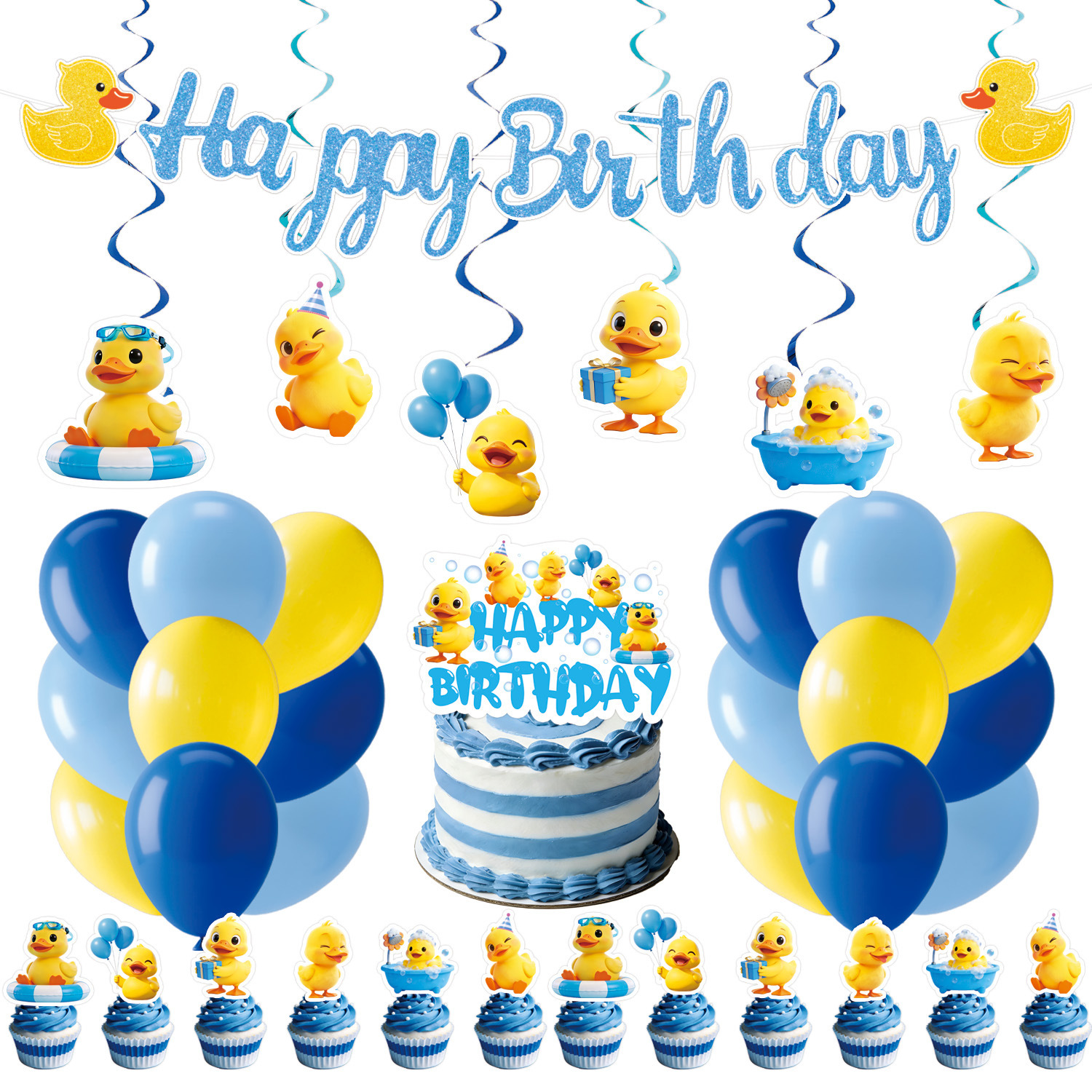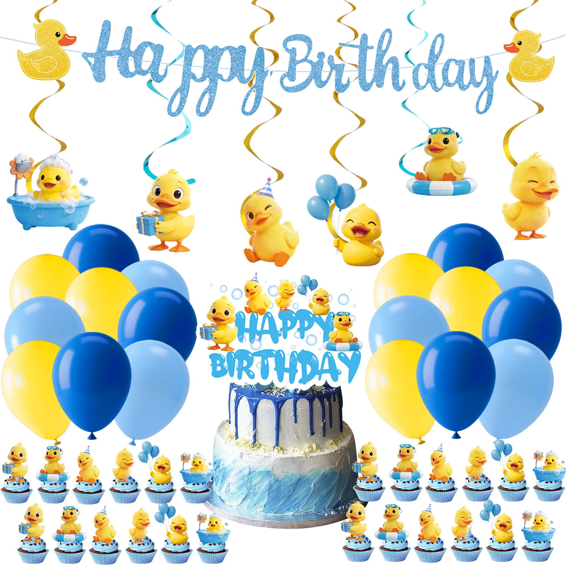 five-piece set: (hanging flag + large power strip + small power strip + hanging prop + balloons)-small yellow duck