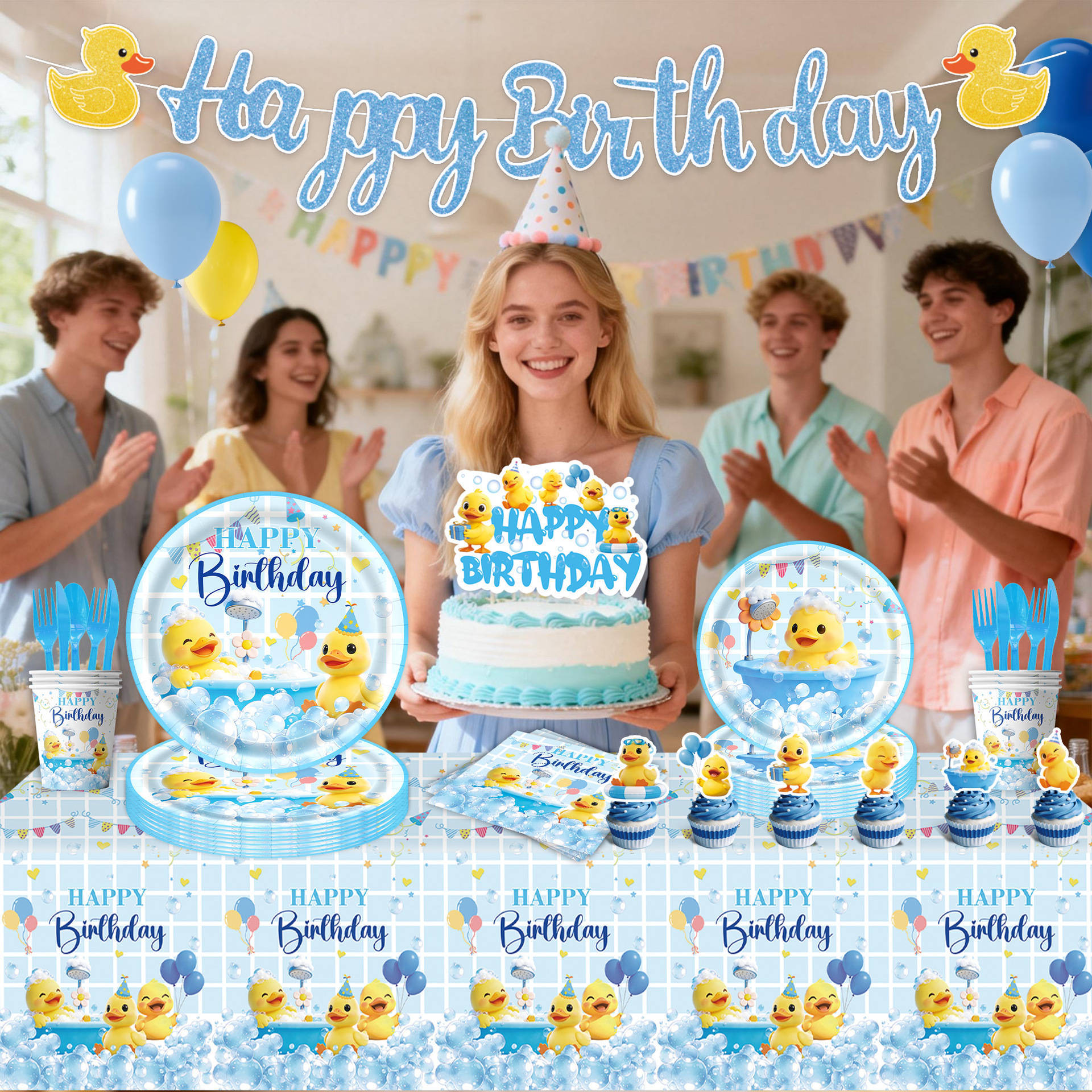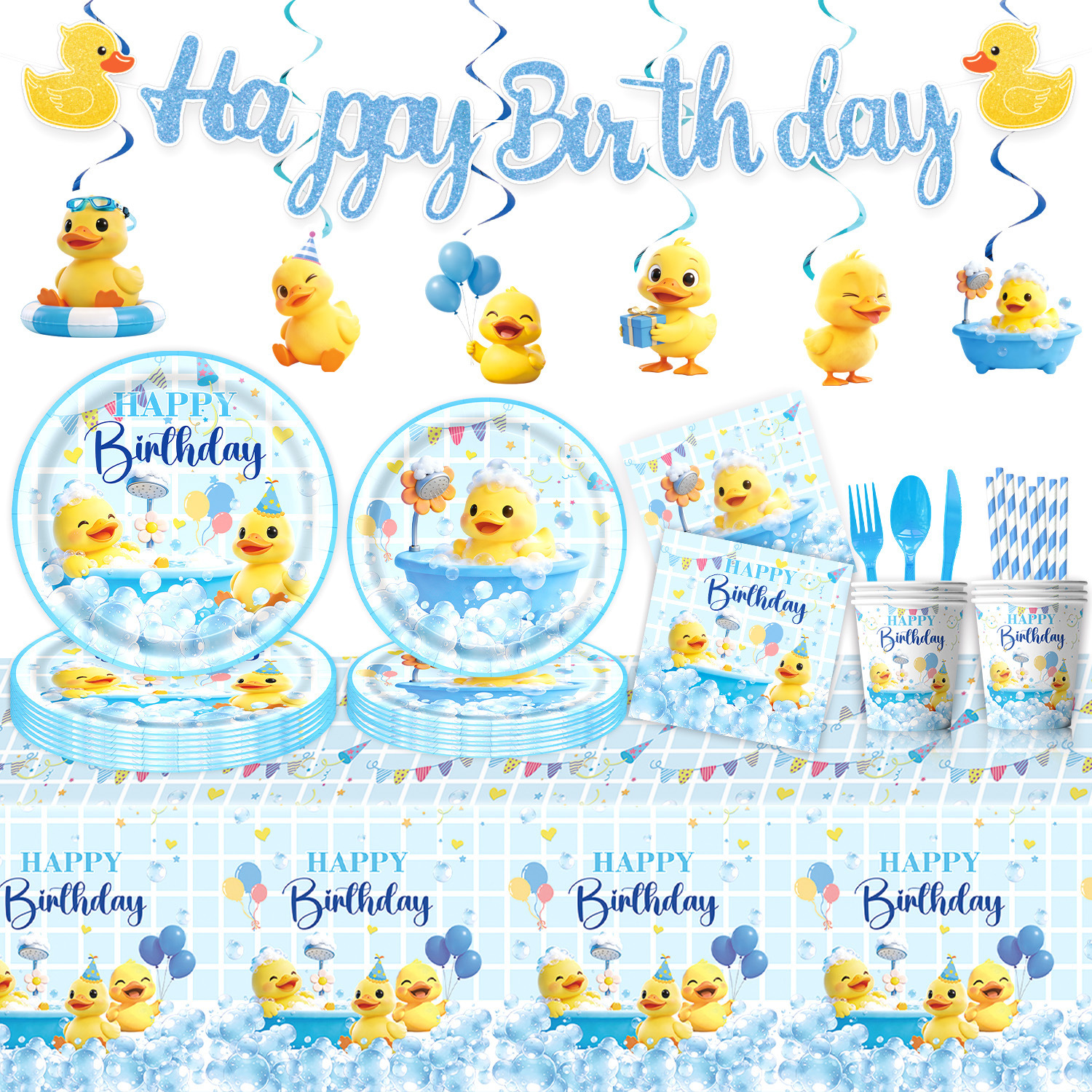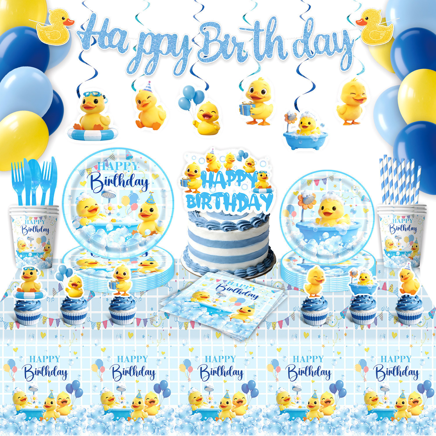 five-piece set: (hanging flag + large power strip + small power strip + hanging prop + balloons)-small yellow duck