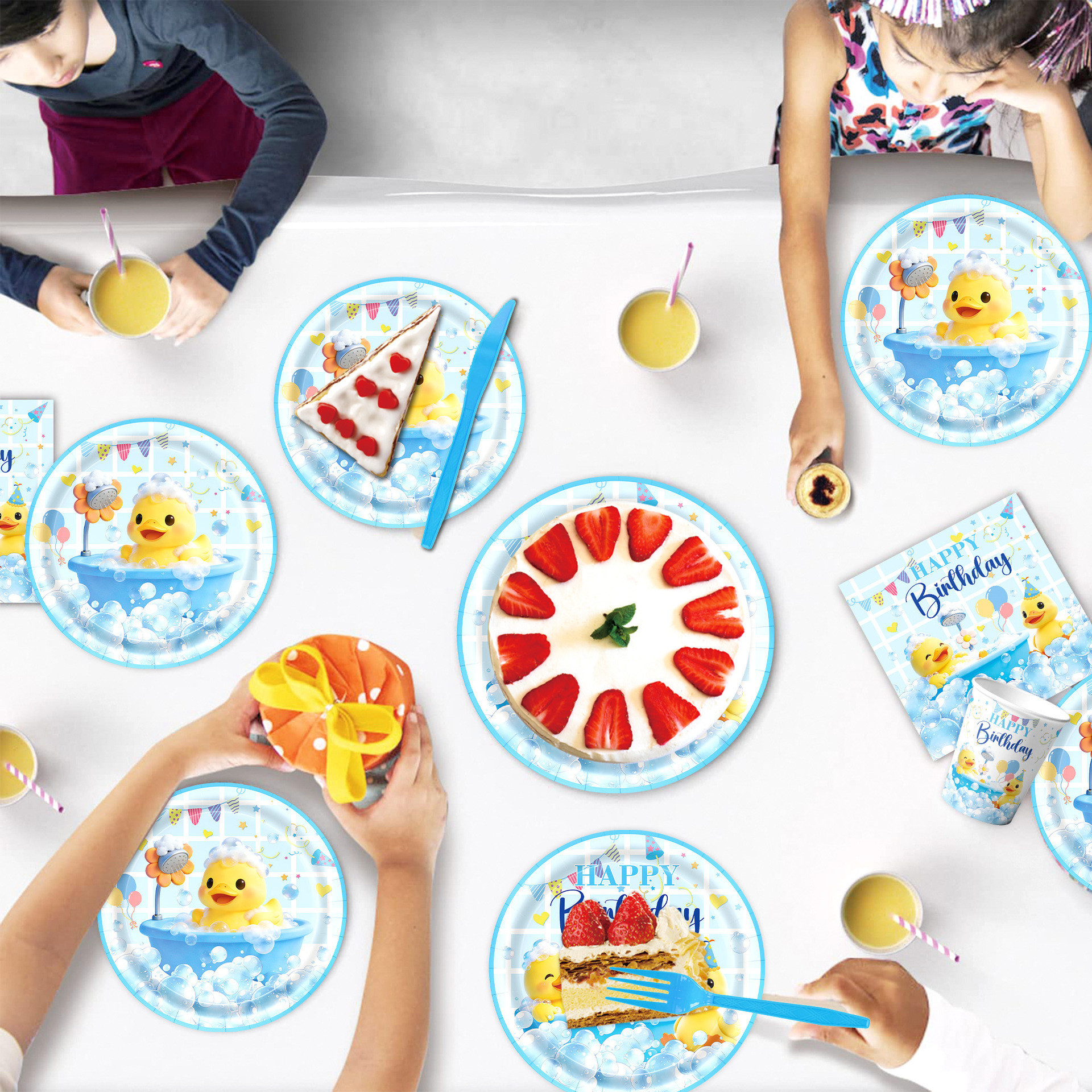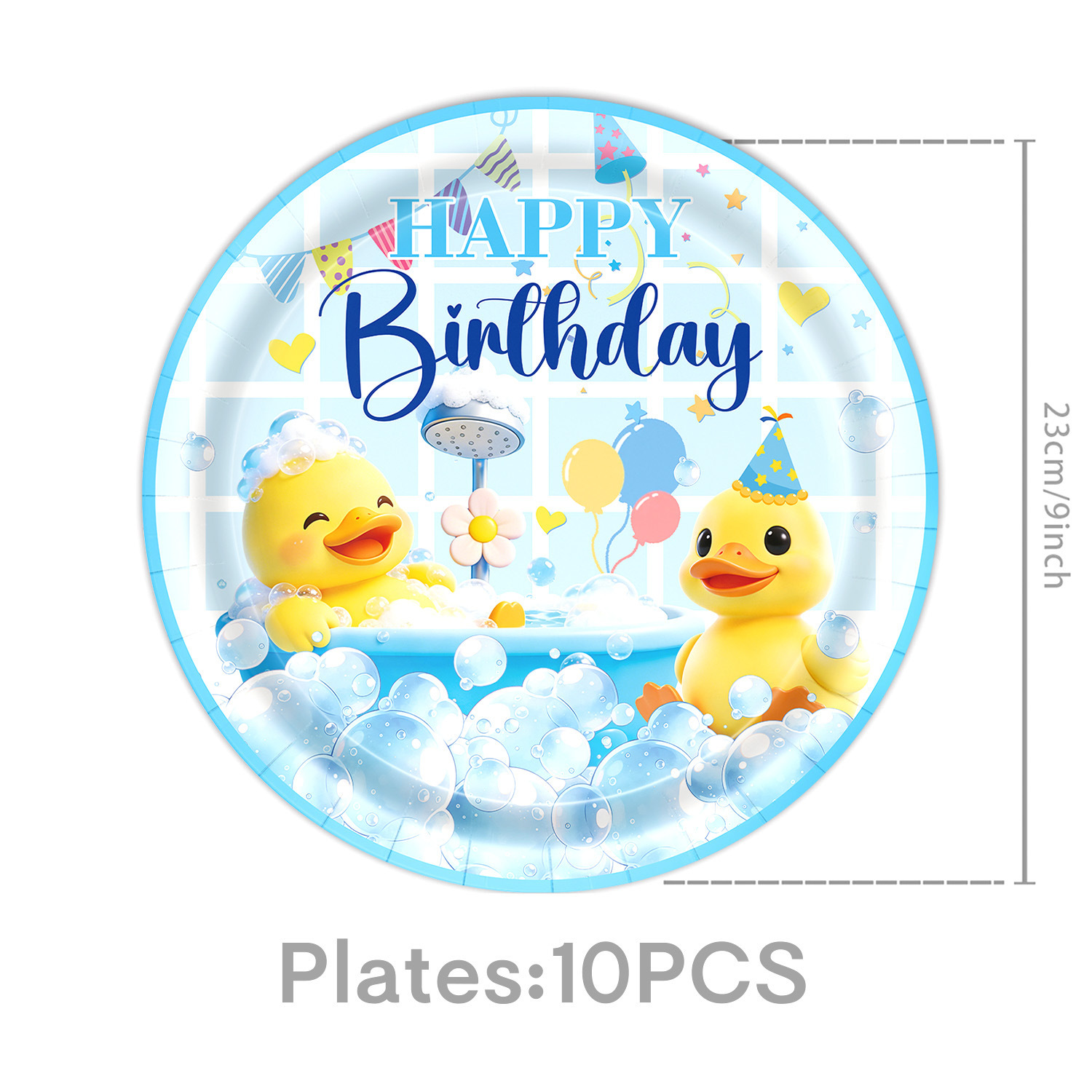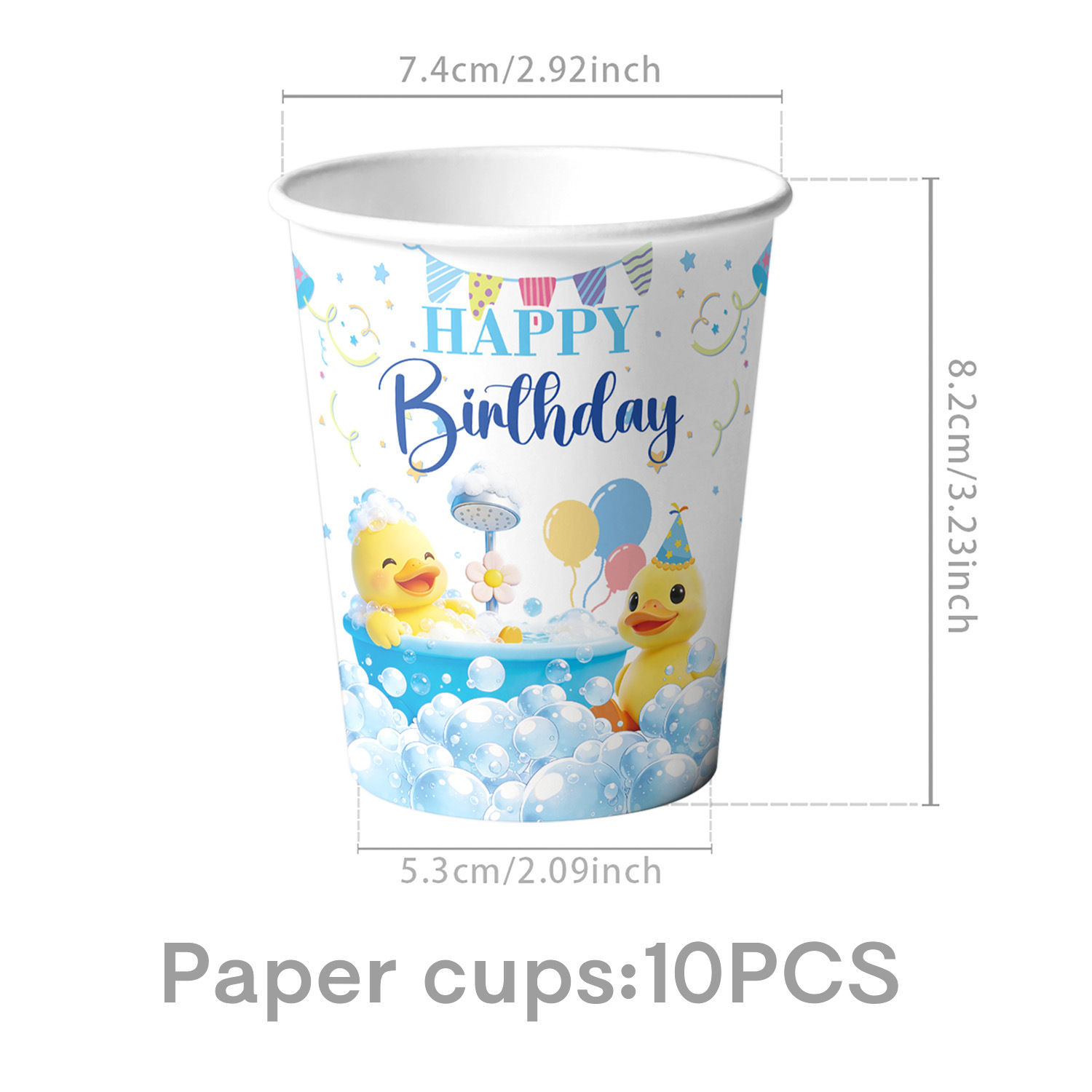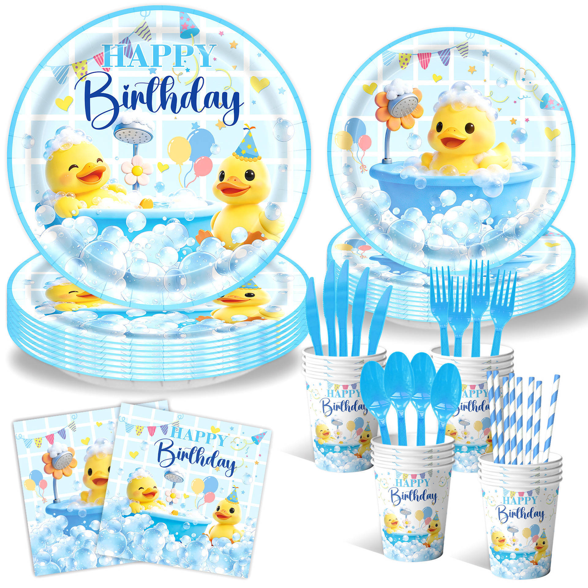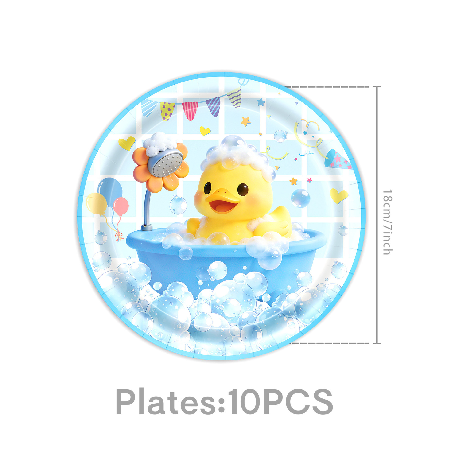 picture 4-piece set: (7-inch 10 + 9-inch 10 + paper cups 10 + paper towels 20)-small yellow duck