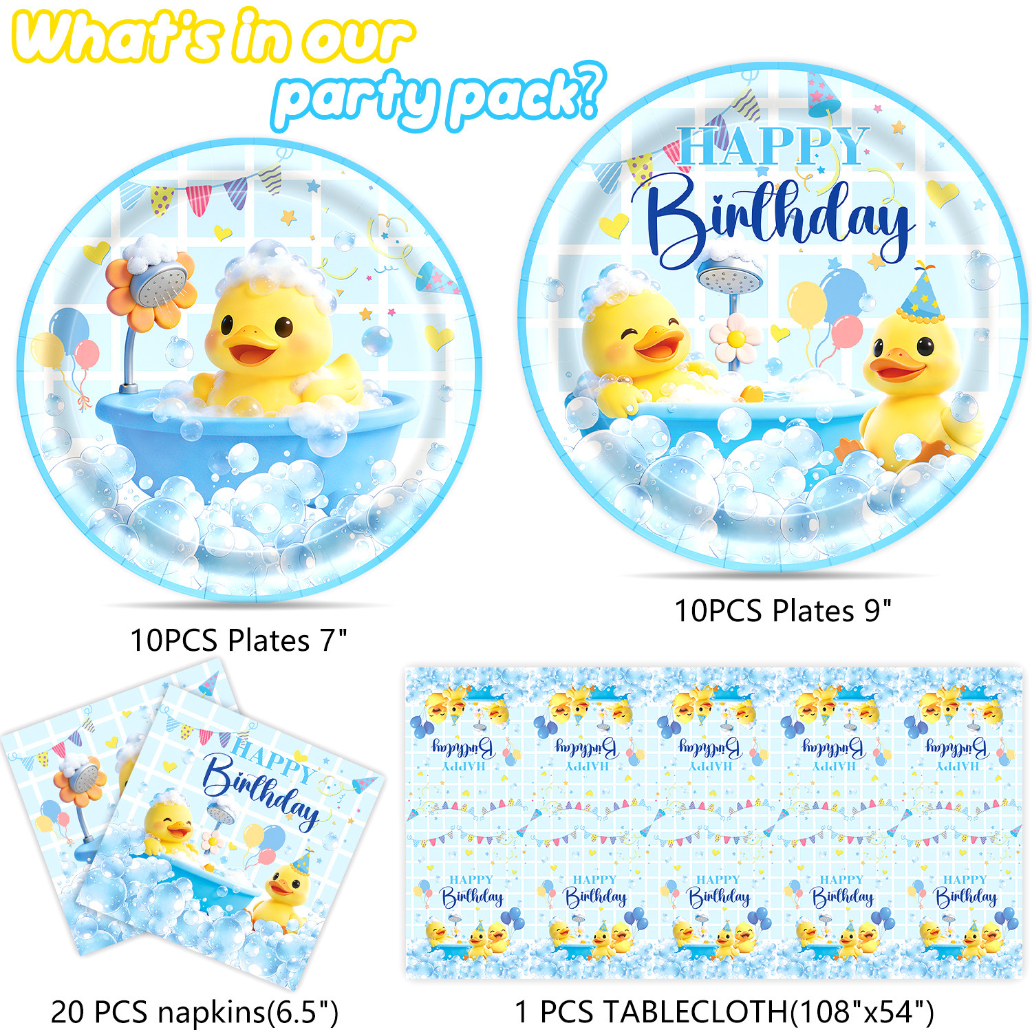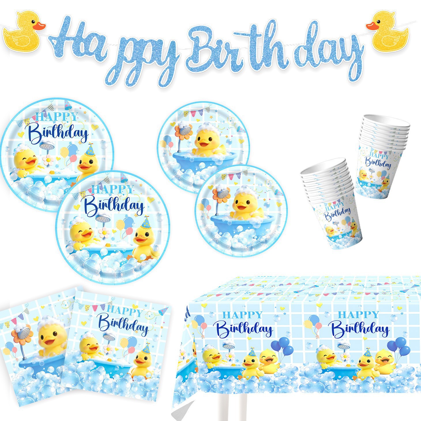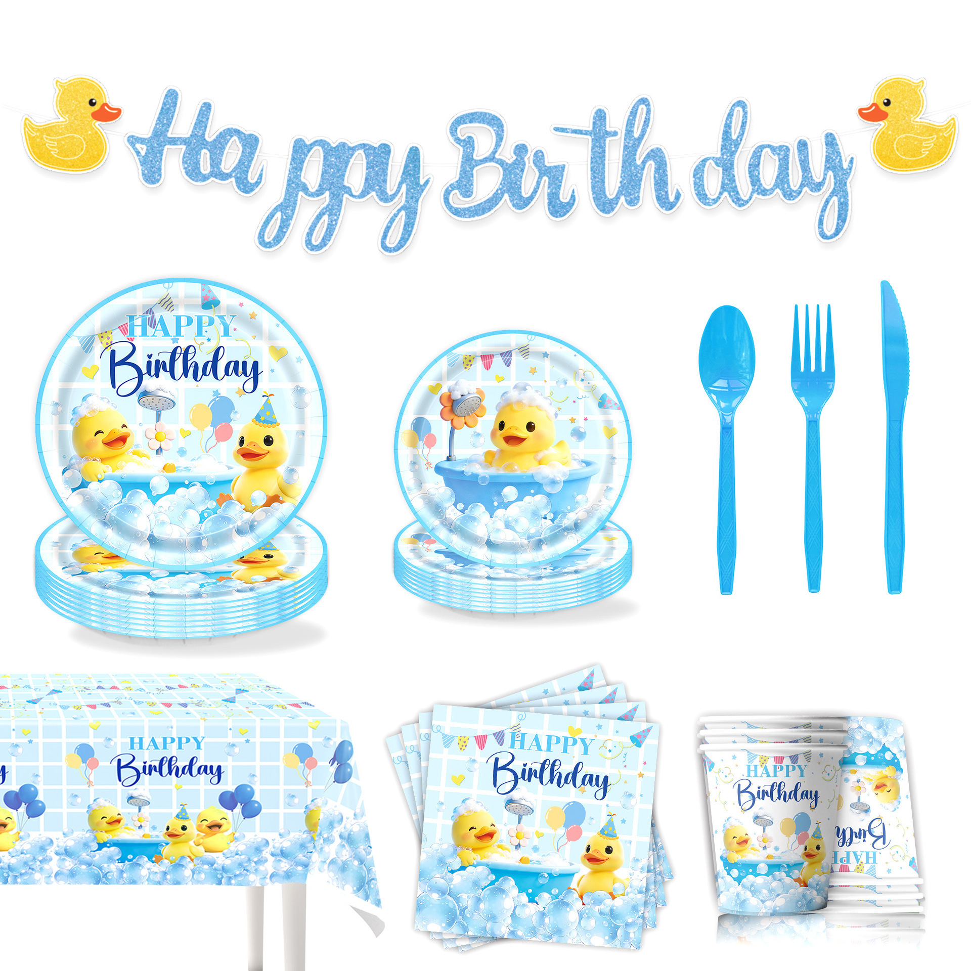 picture 6-piece set (7-inch 10+9-inch 10 + tissue 20 + paper cup 10 + tablecloth 1 + hanging flag 1)-small yellow duck