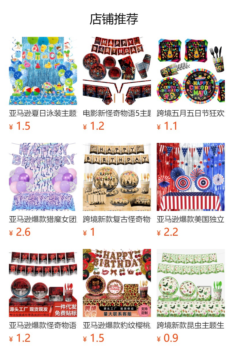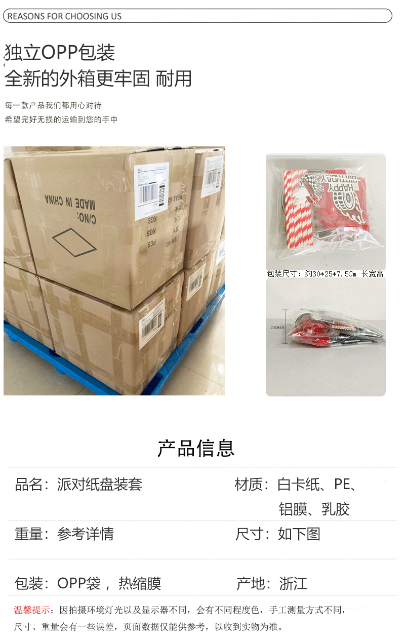 picture 9-piece set (7-inch 10+9-inch 10 + tissue 20 + paper cup 10 + tablecloth 1 + hanging flag 1 + knife, fork and spoon each 10