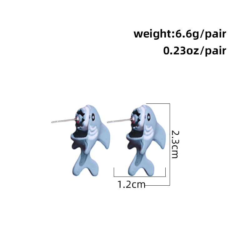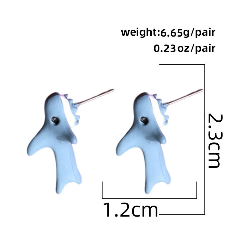 european and american small animal ear-biting dinosaur ear studs corgi shark ear rings spray paint cute mini cross-border wholesale
