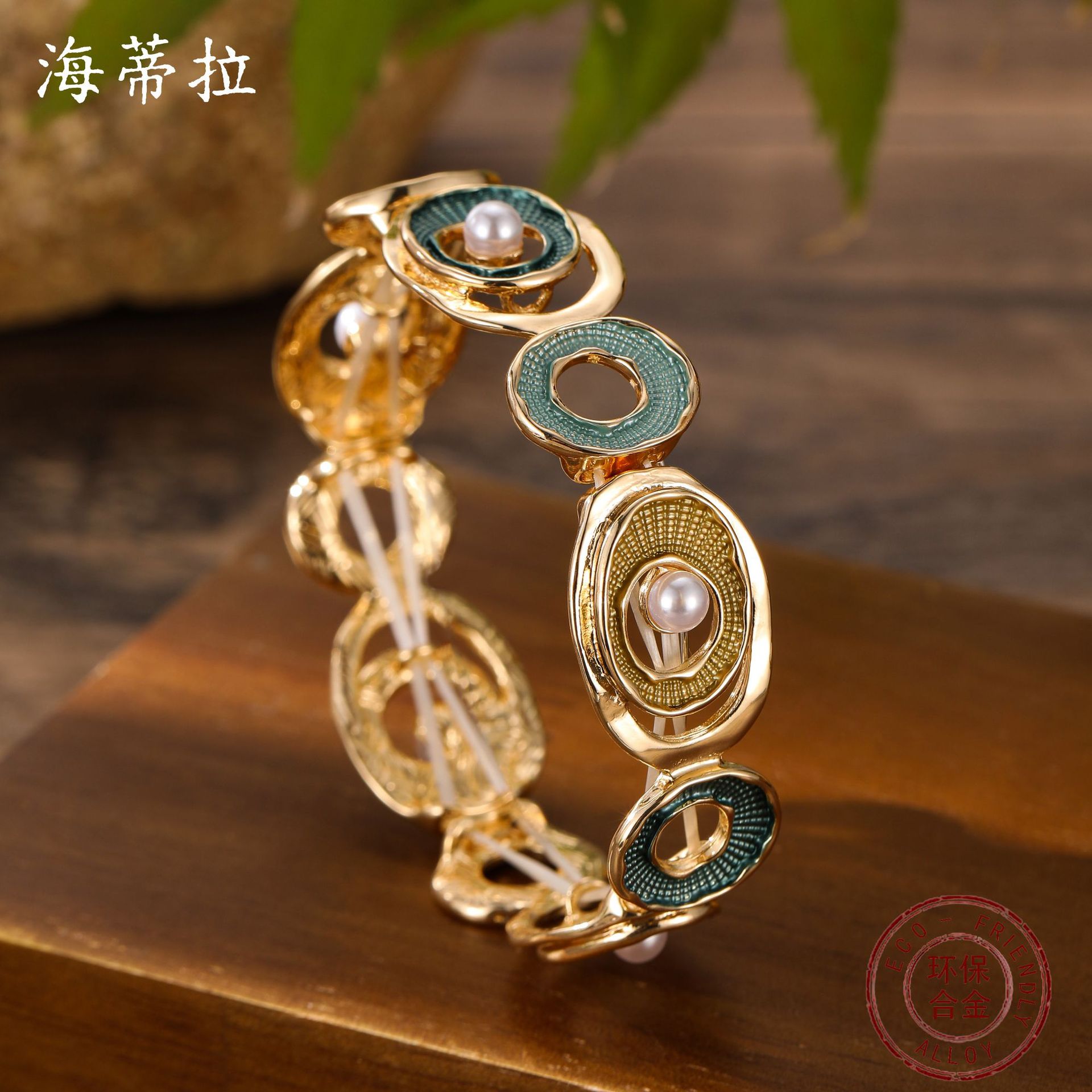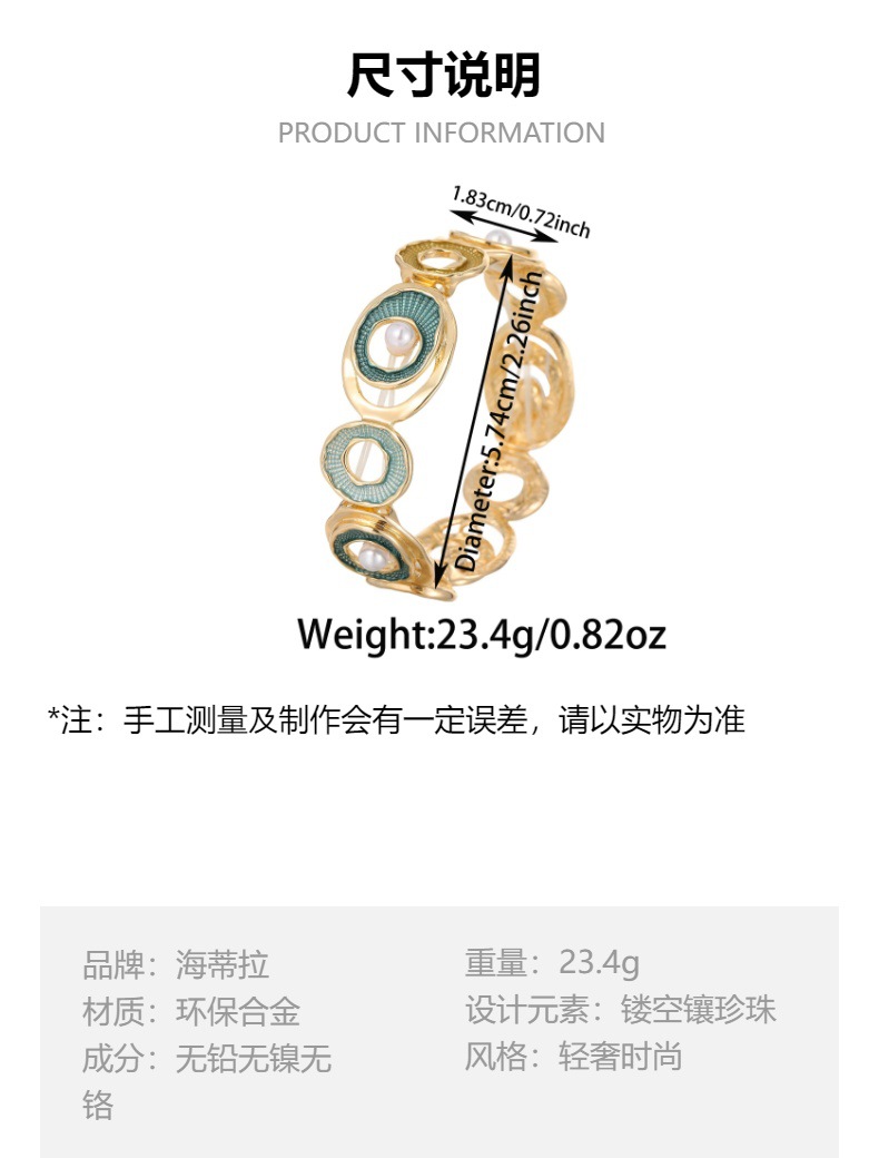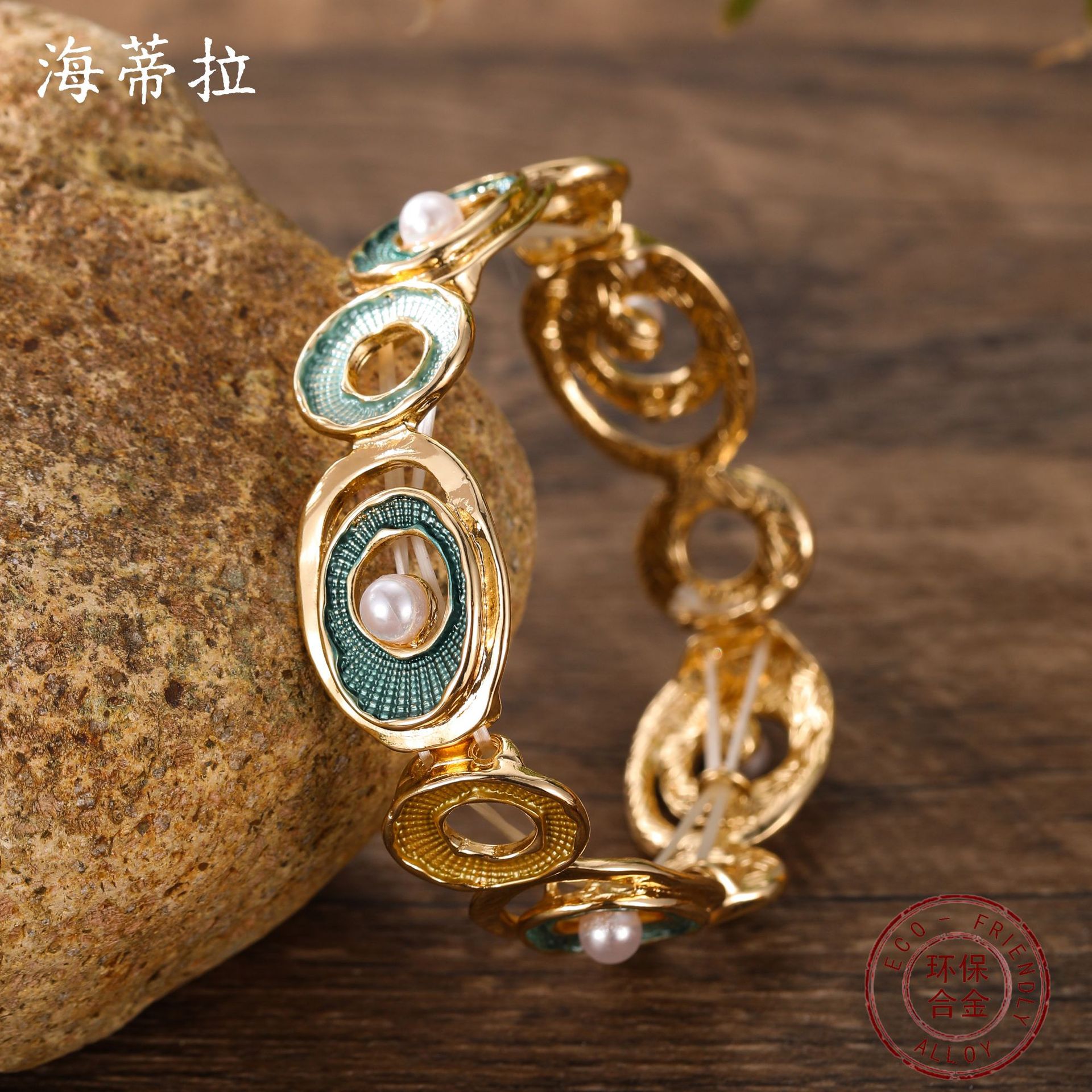 green hoop and pearl elastic bracelet-gold