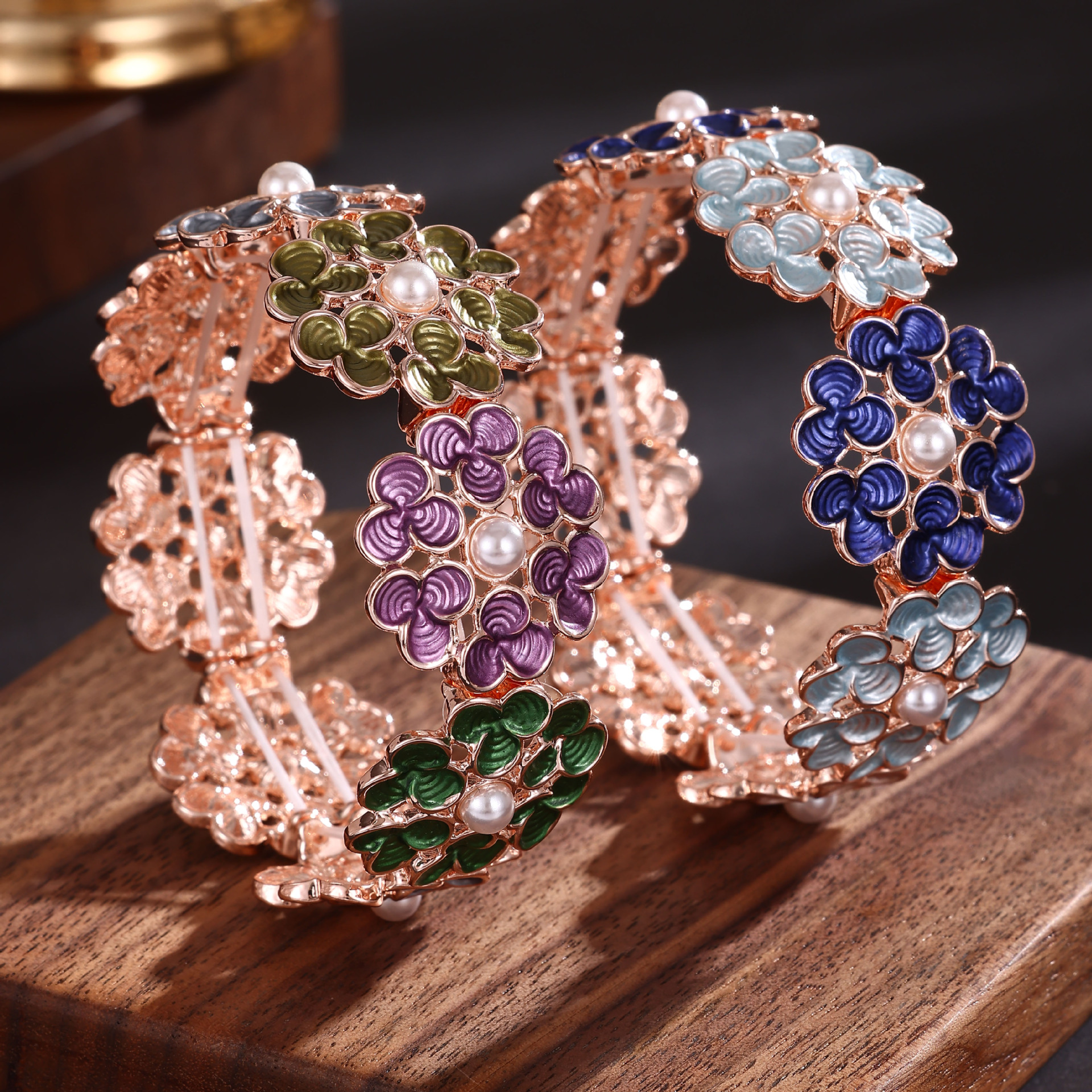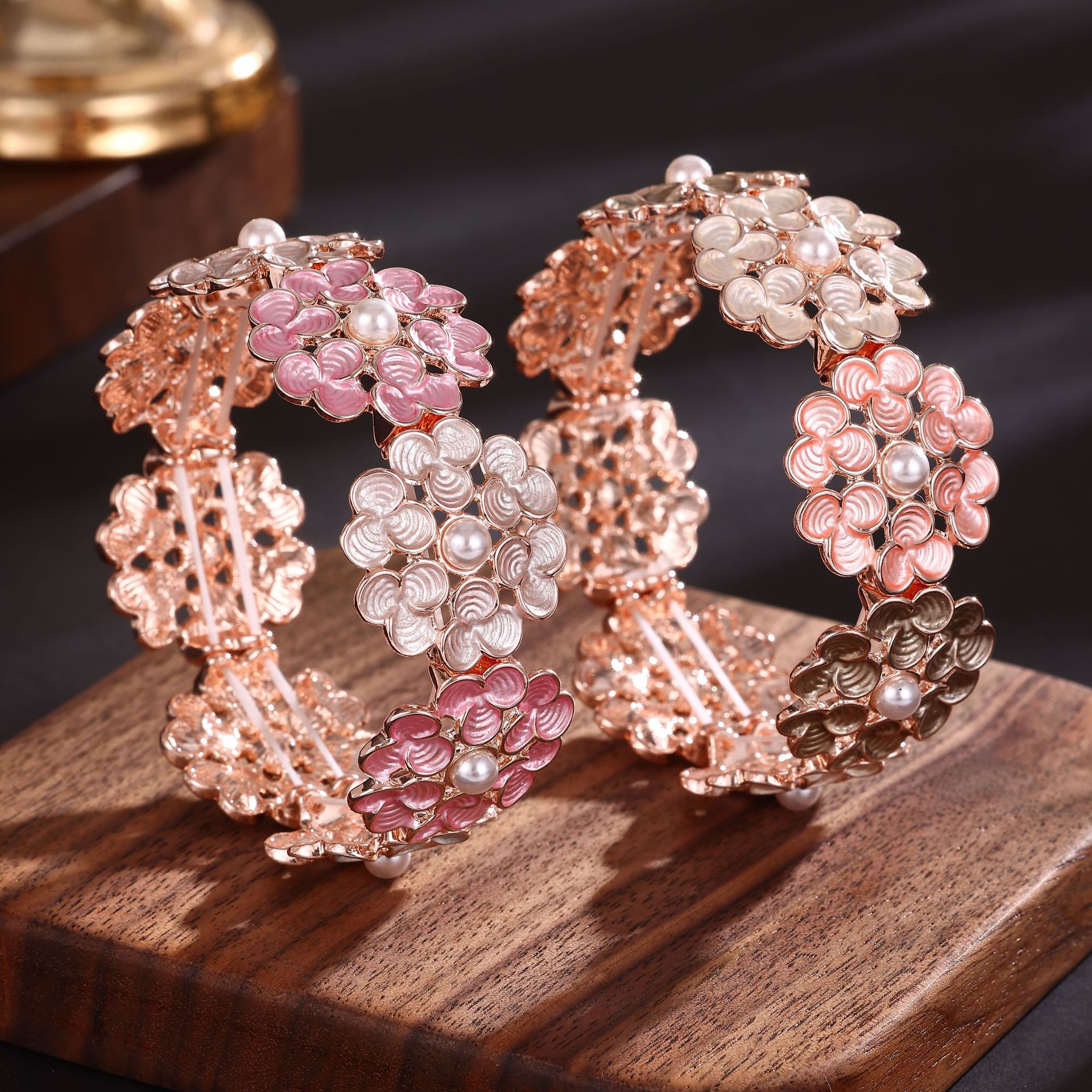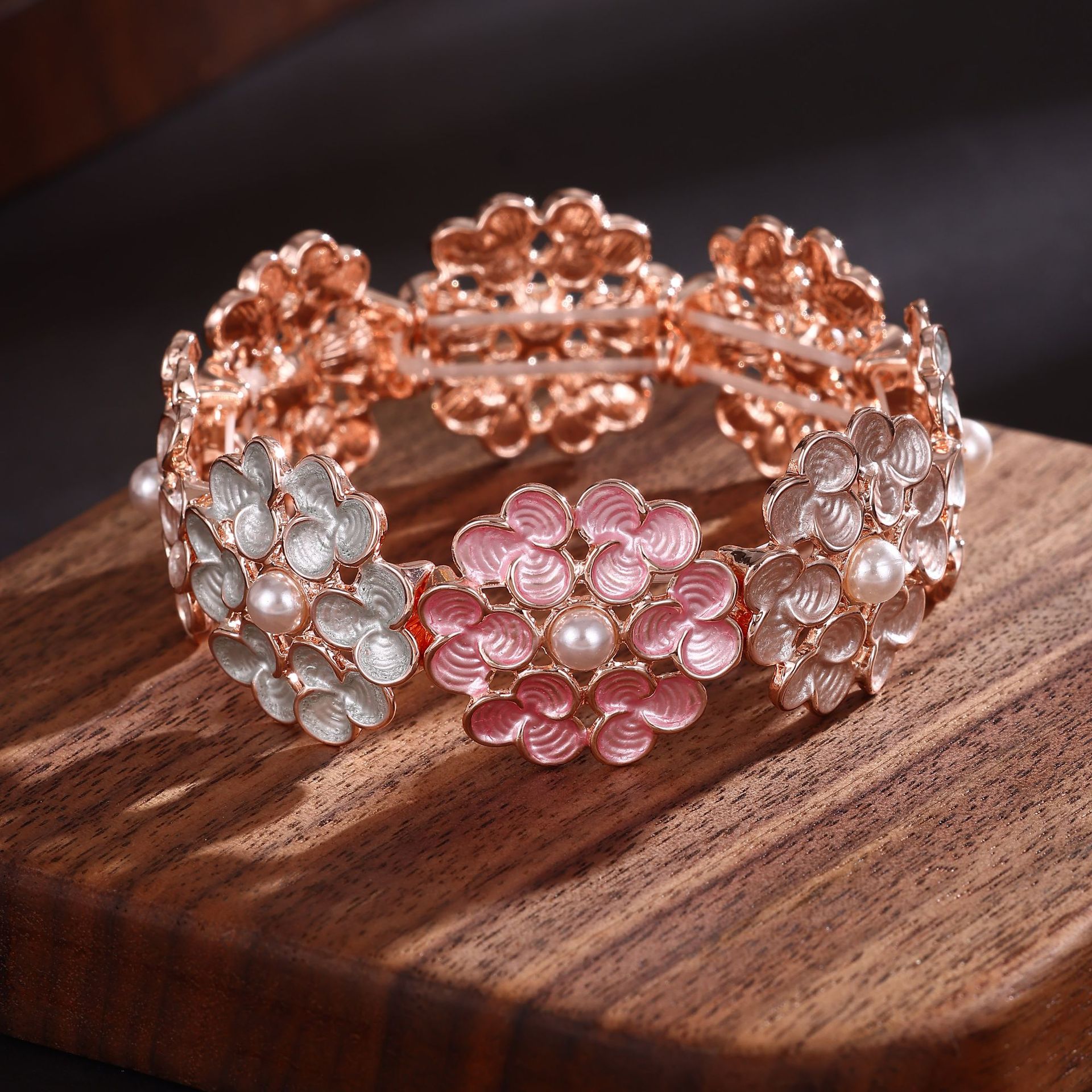 pink coffee color clover bracelet