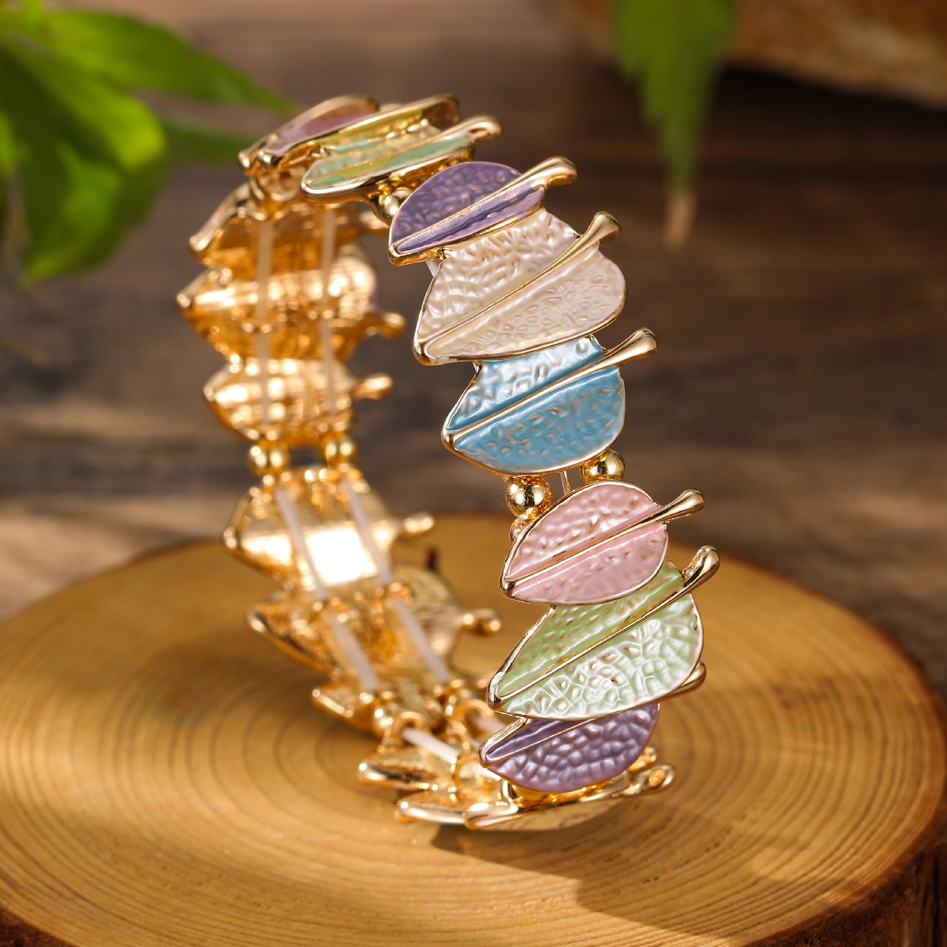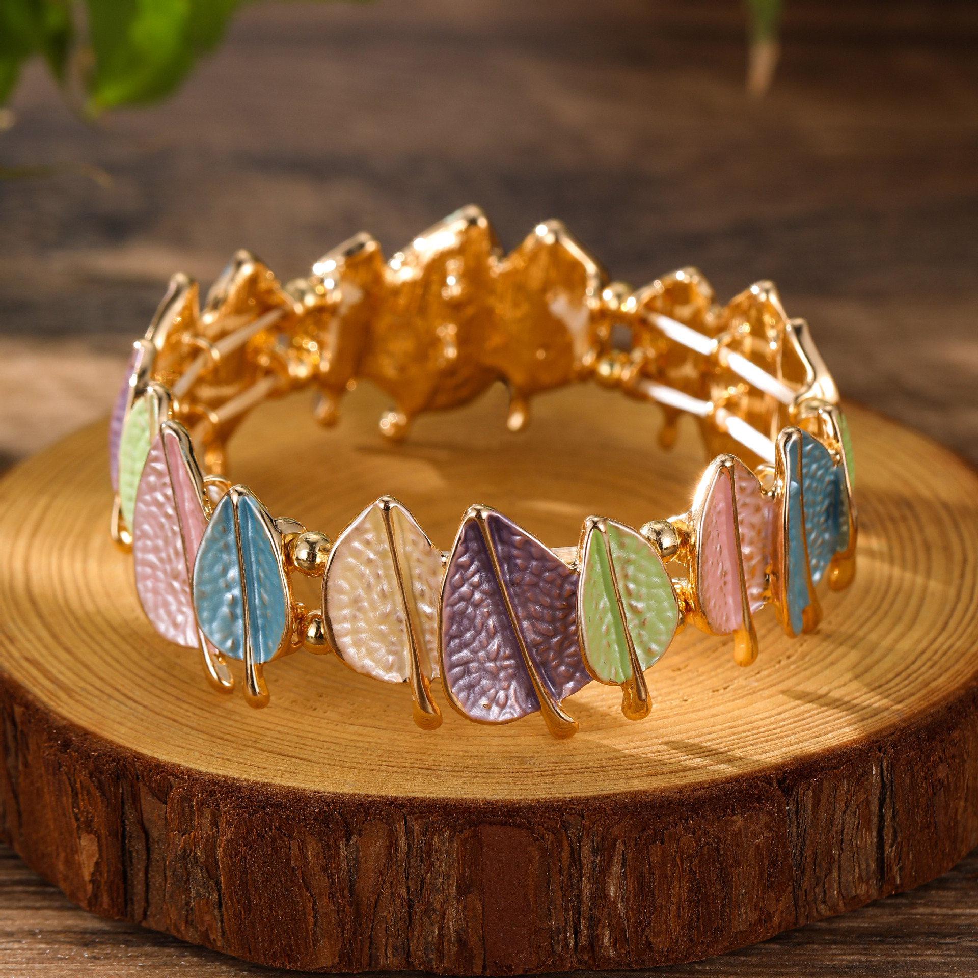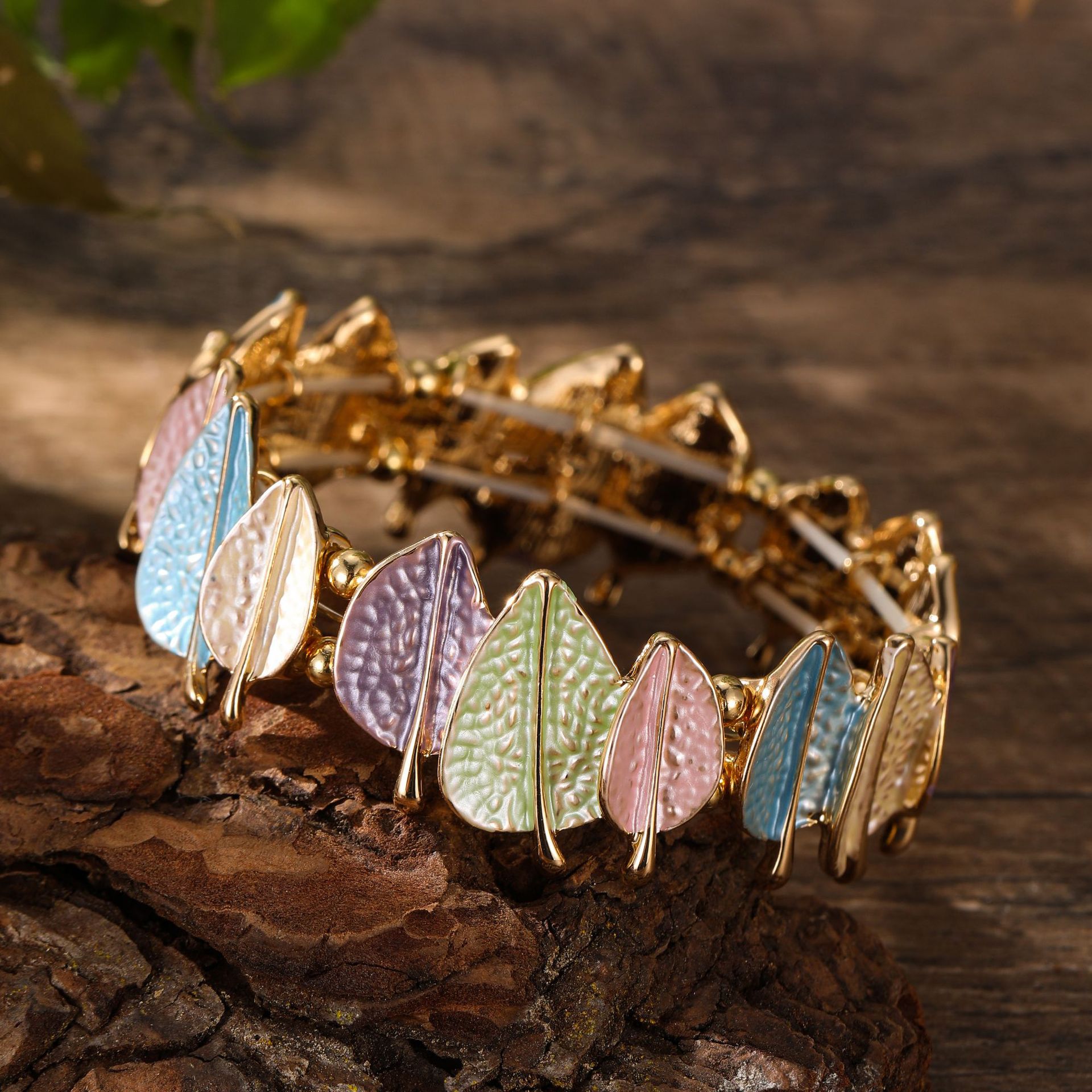spring colored leaves elastic bracelet-gold