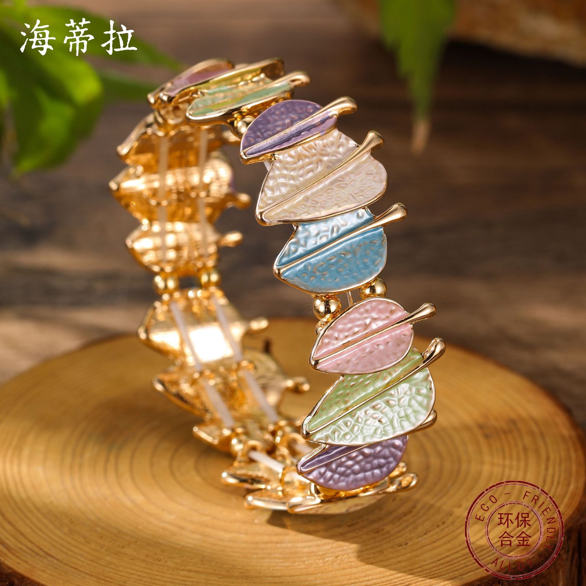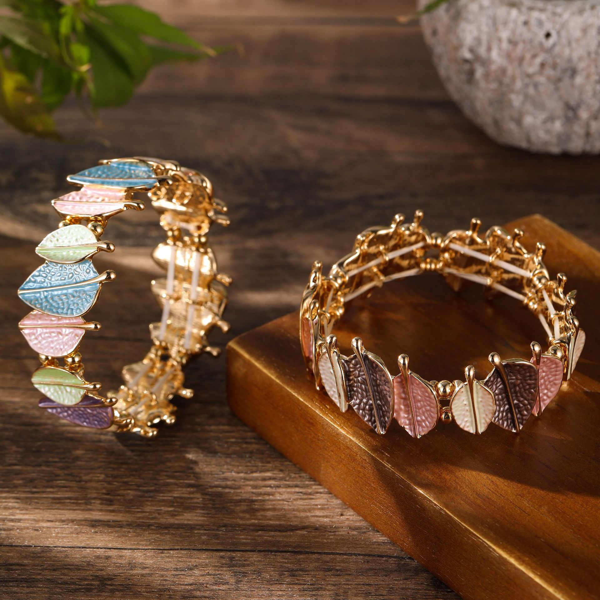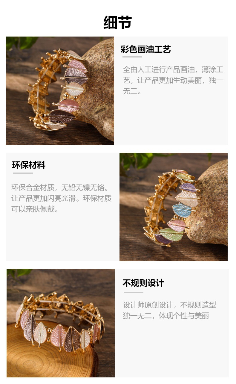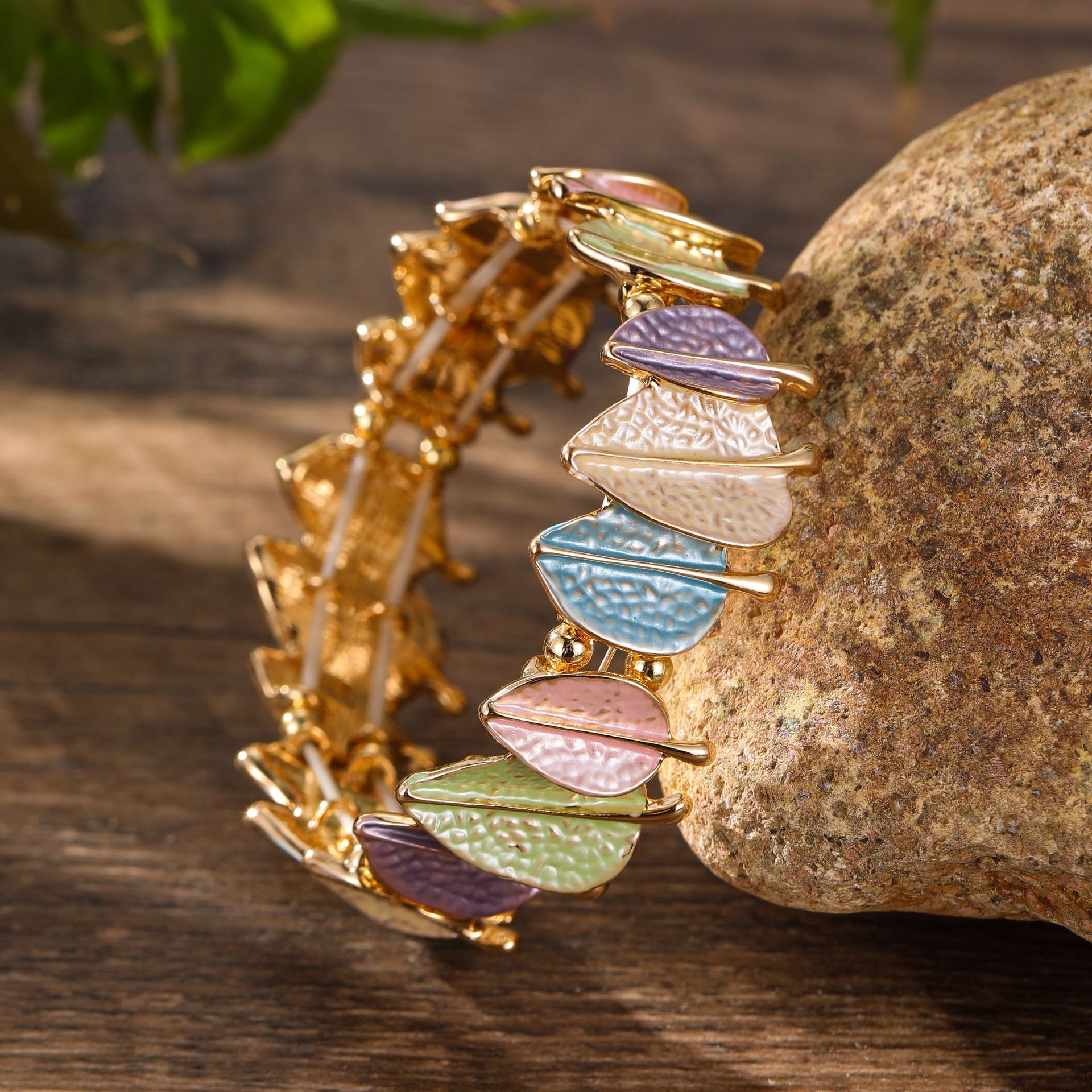 spring colored leaves elastic bracelet-gold