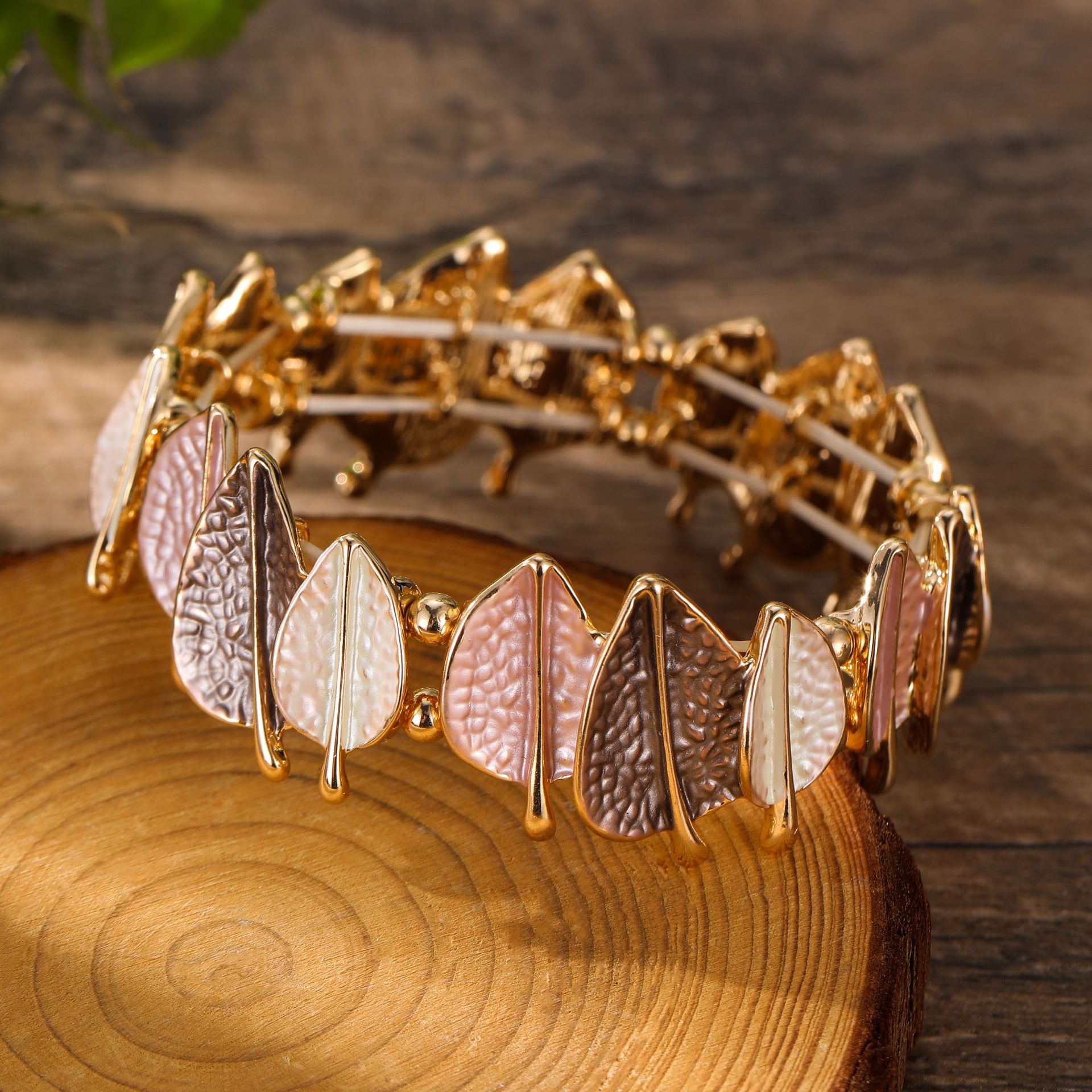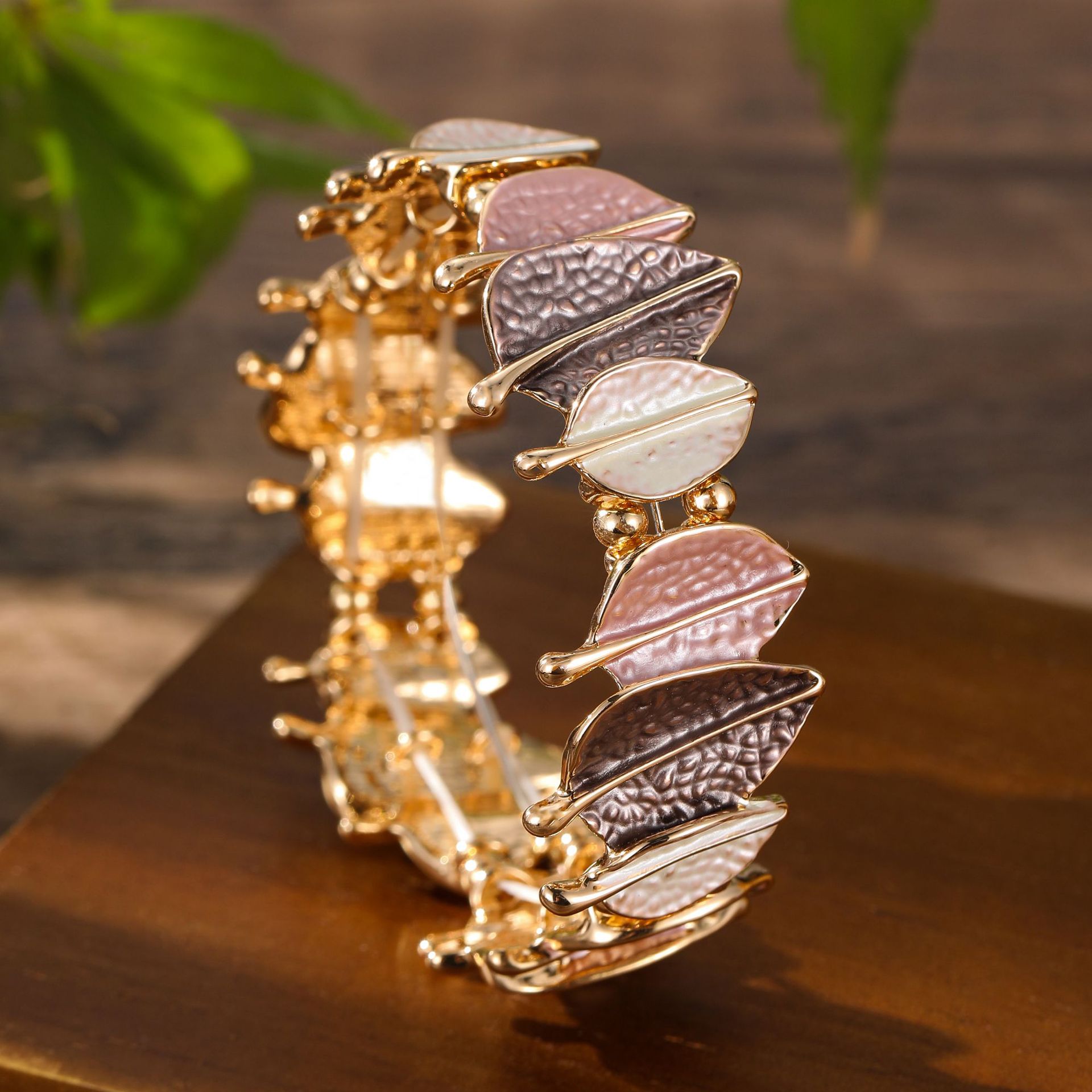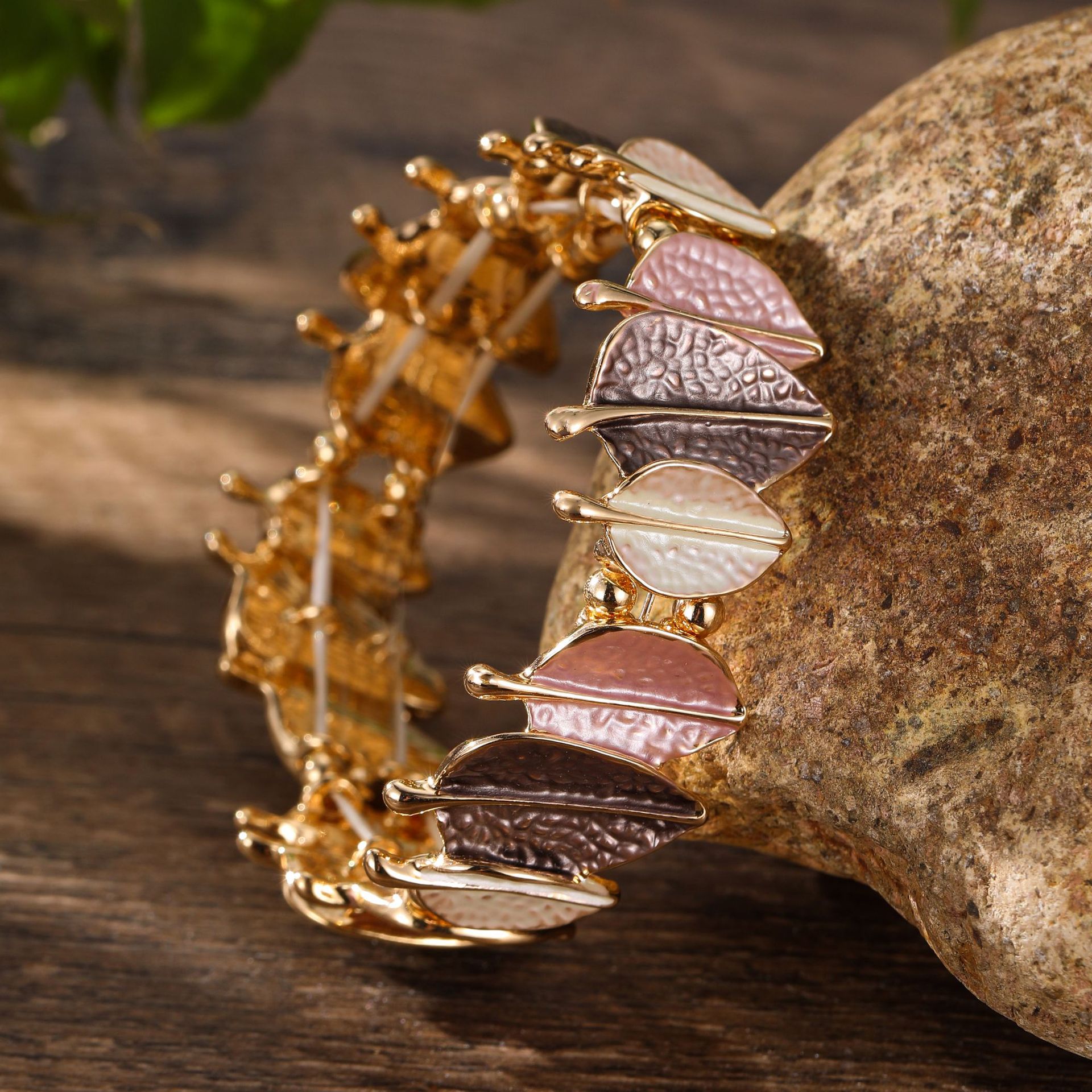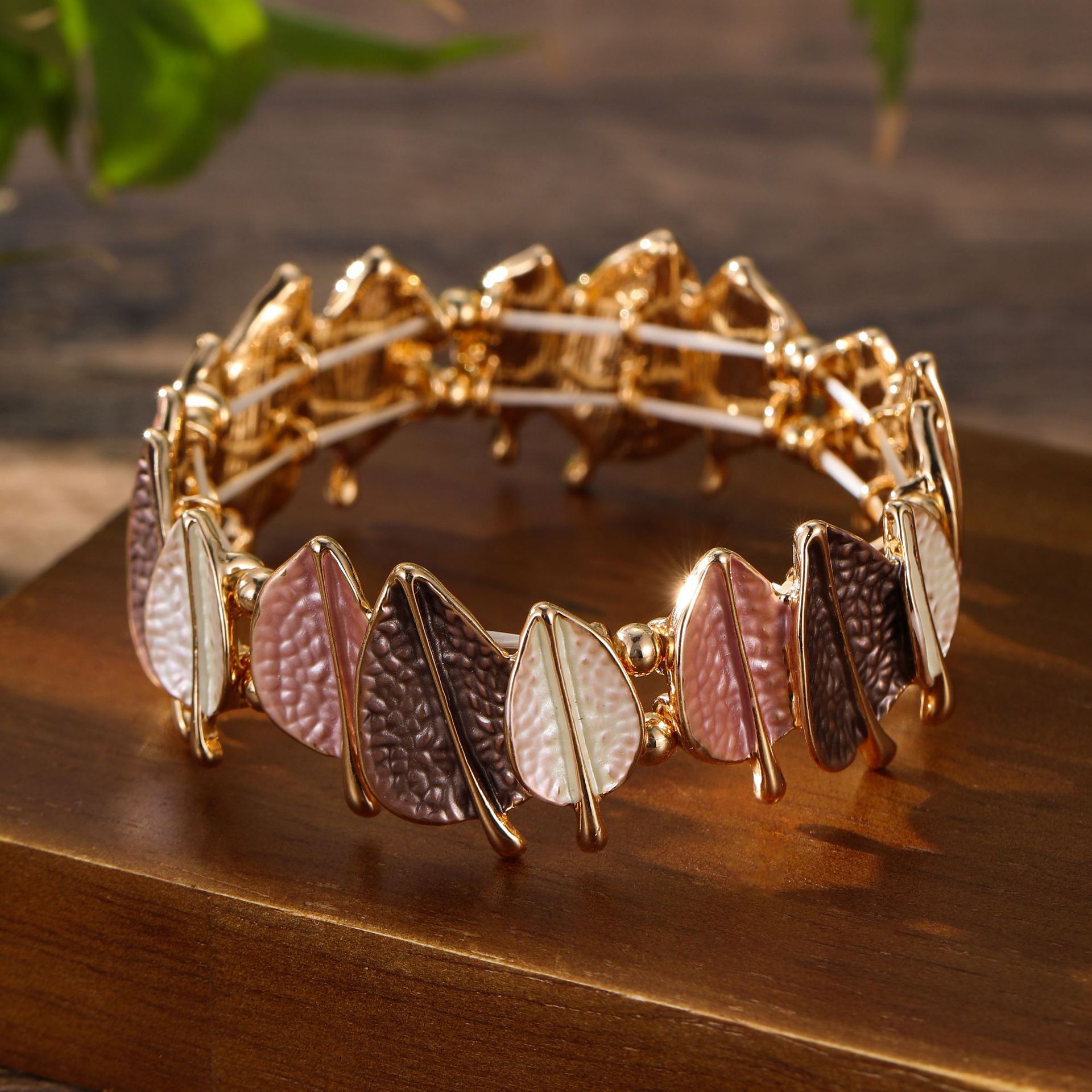 coffee-colored leaf elastic bracelet-gold