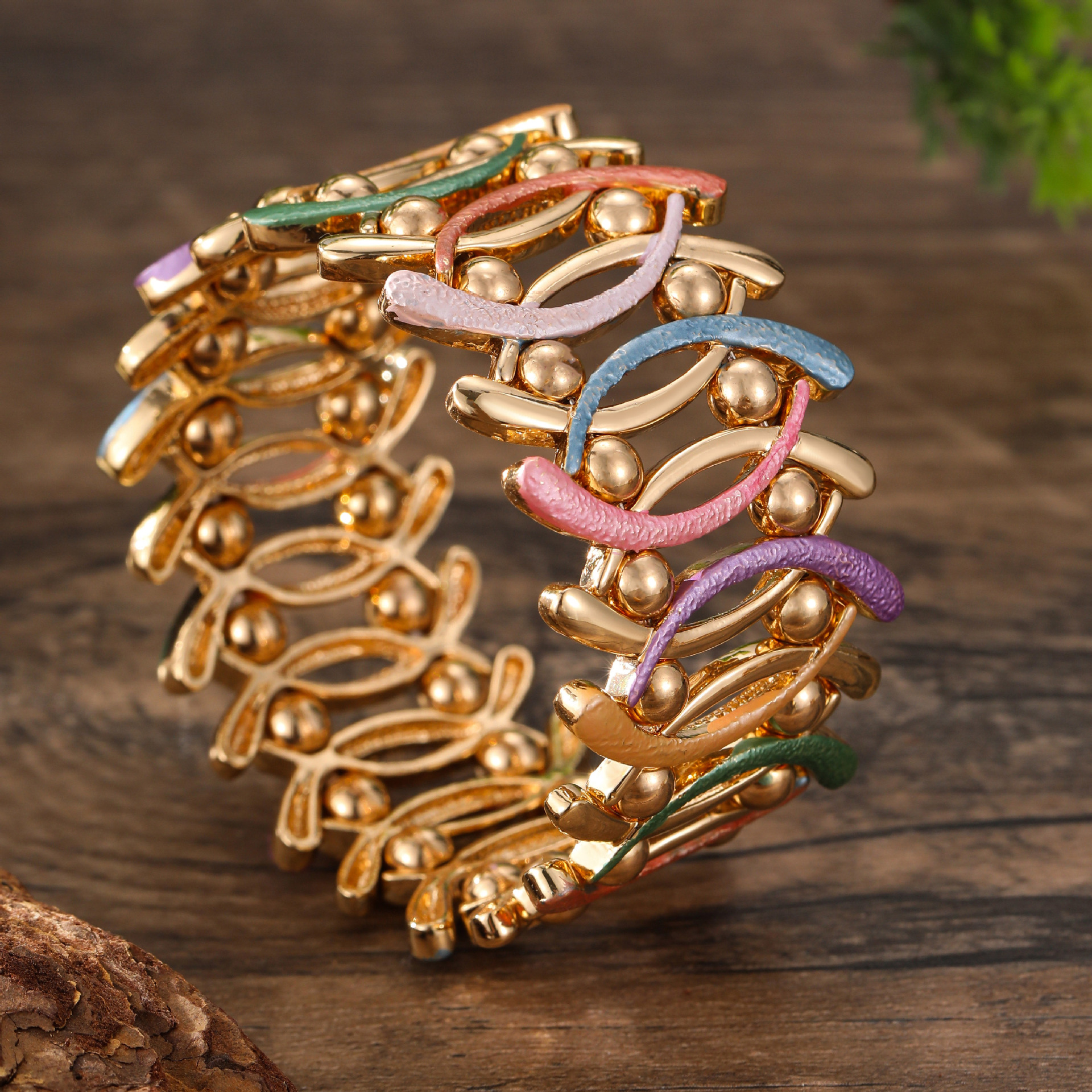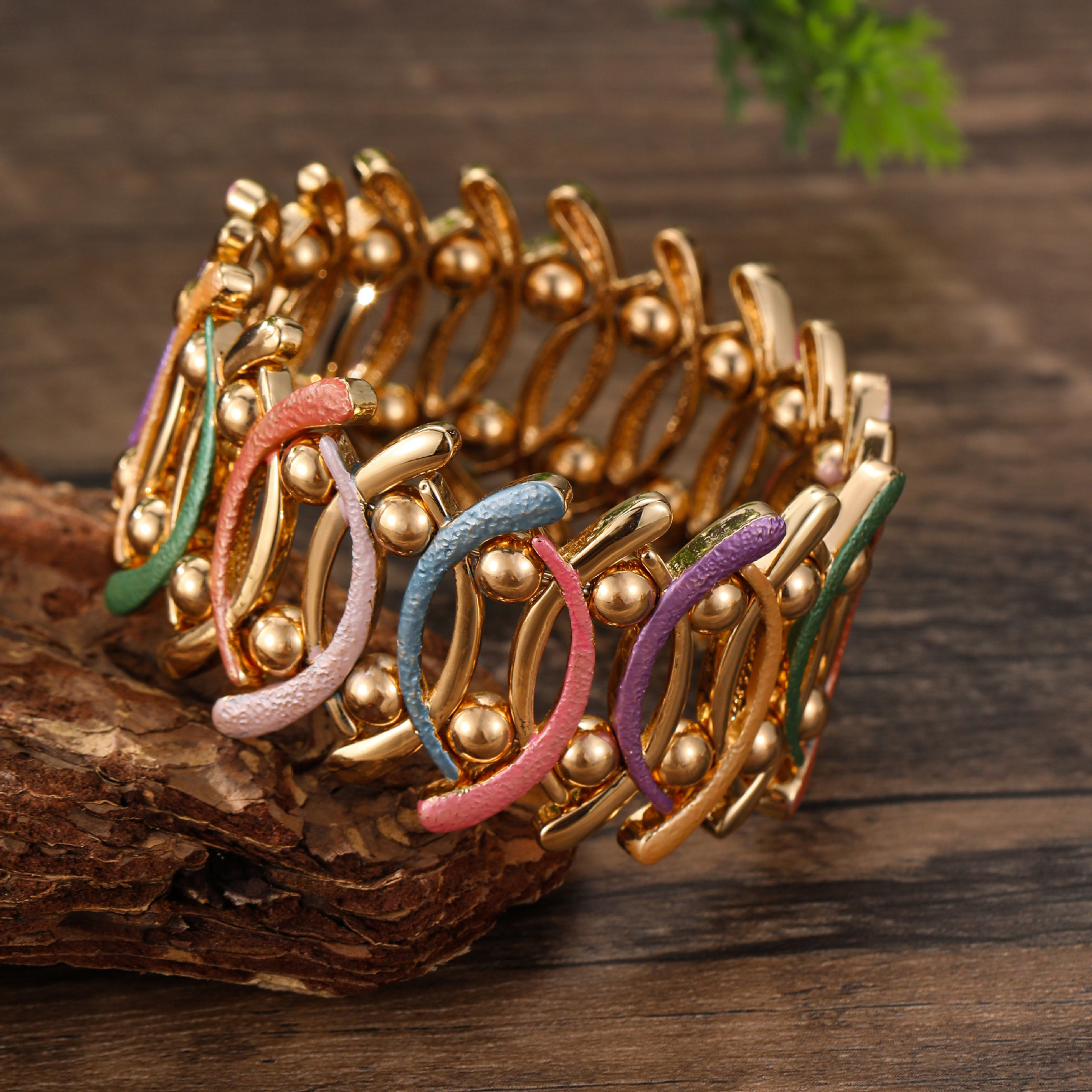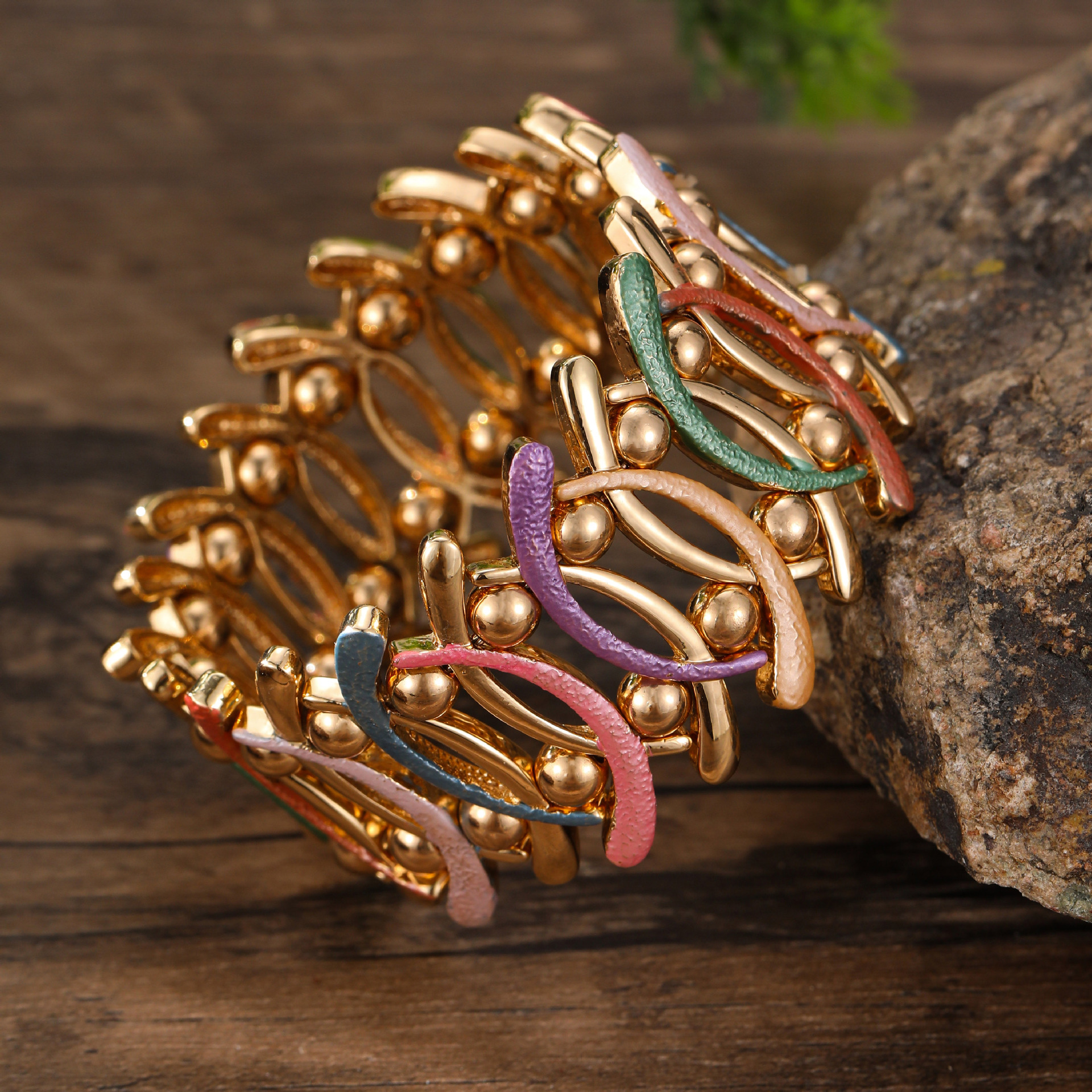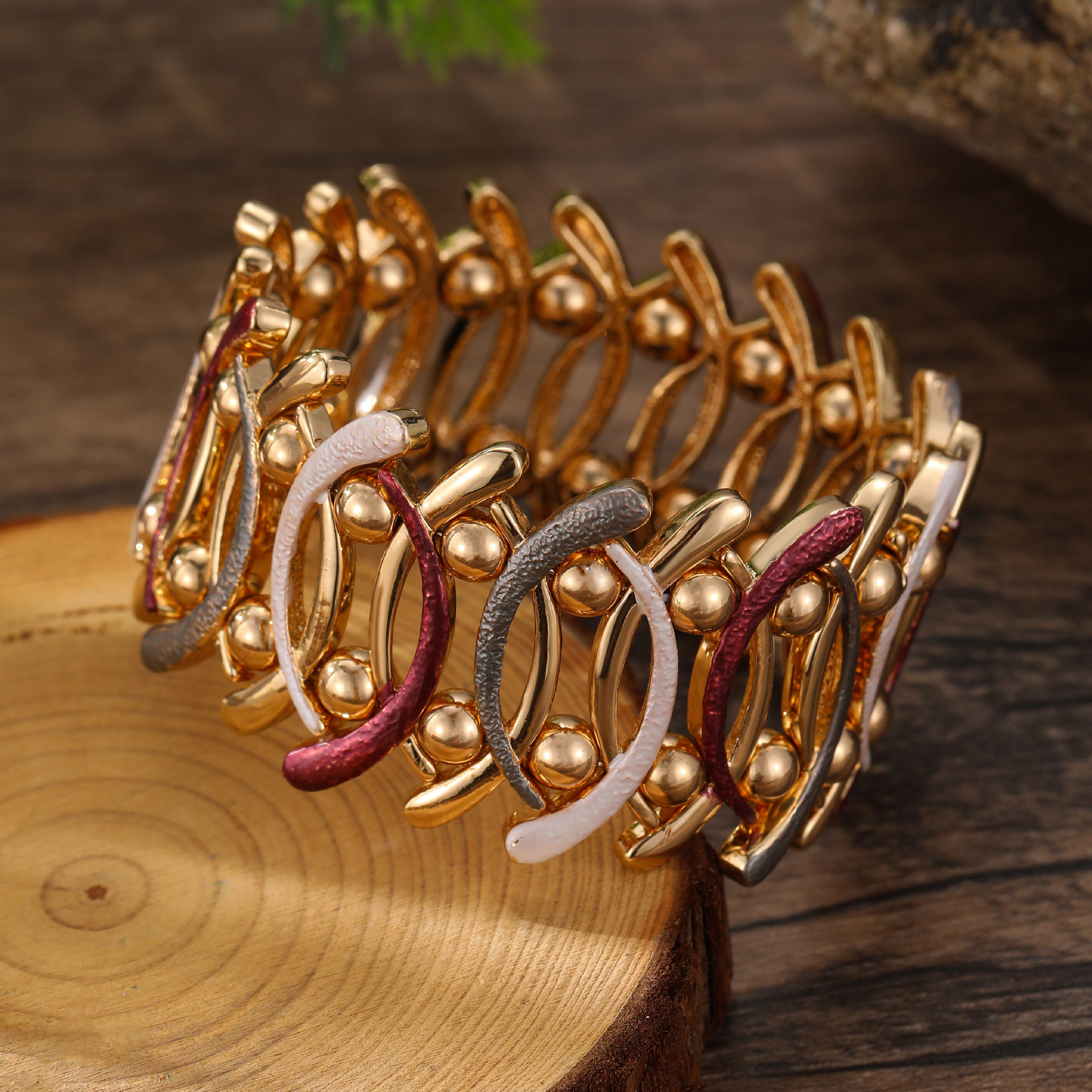 coffee-colored geometric line elastic bracelet-gold