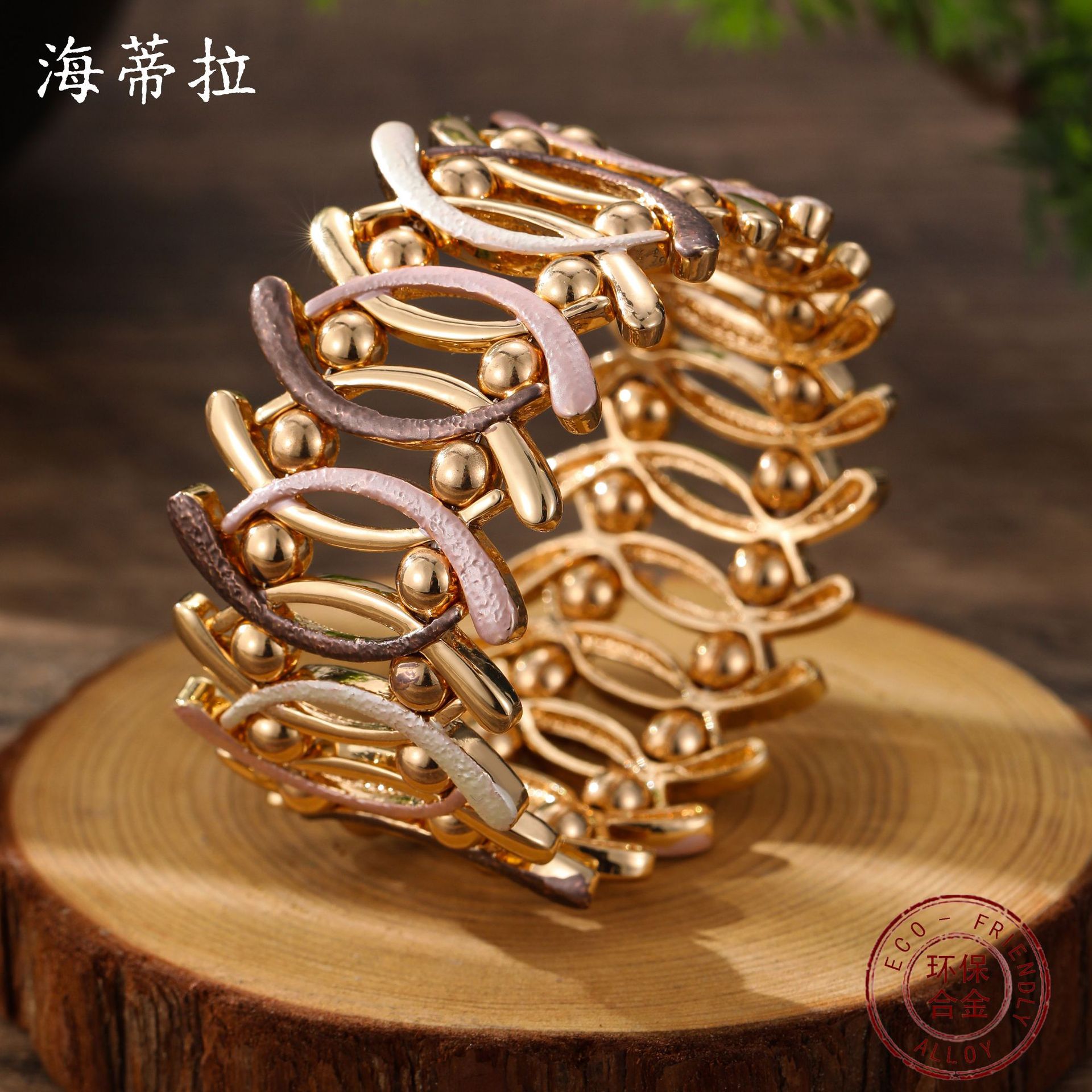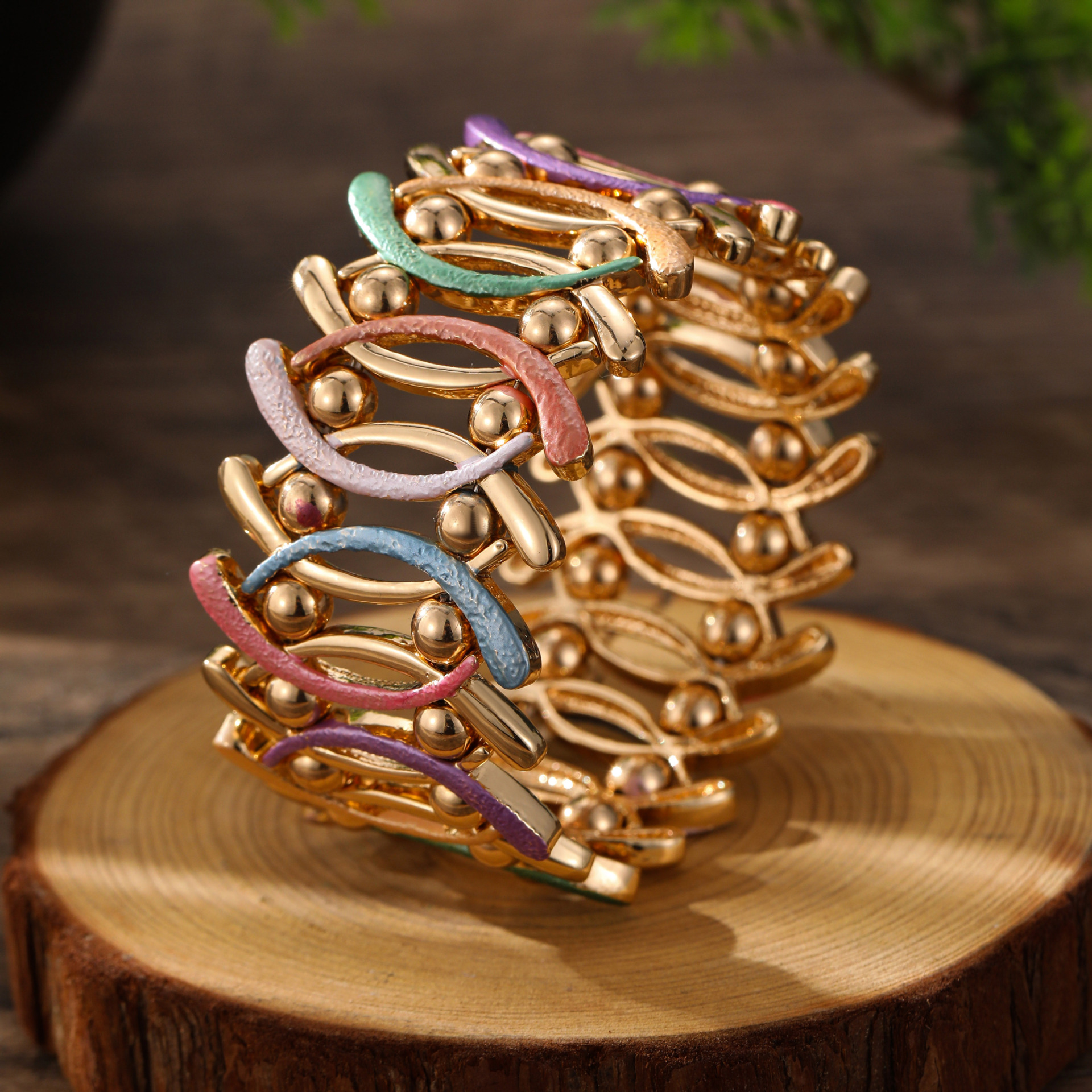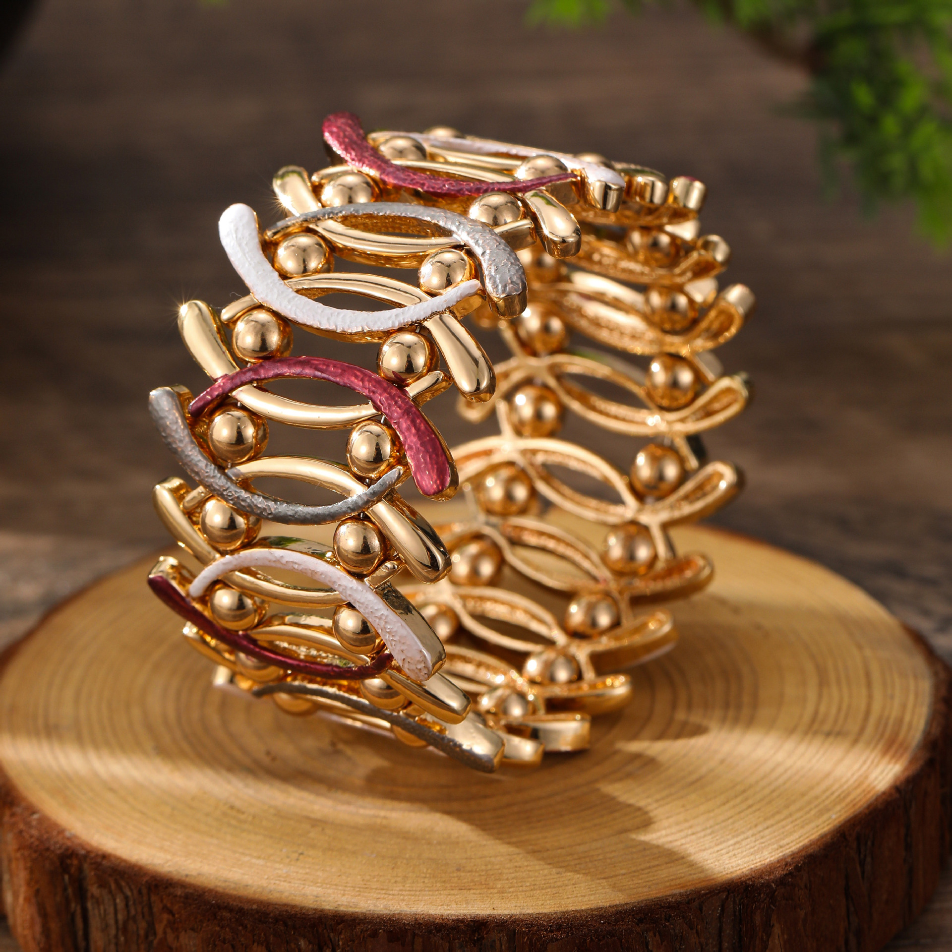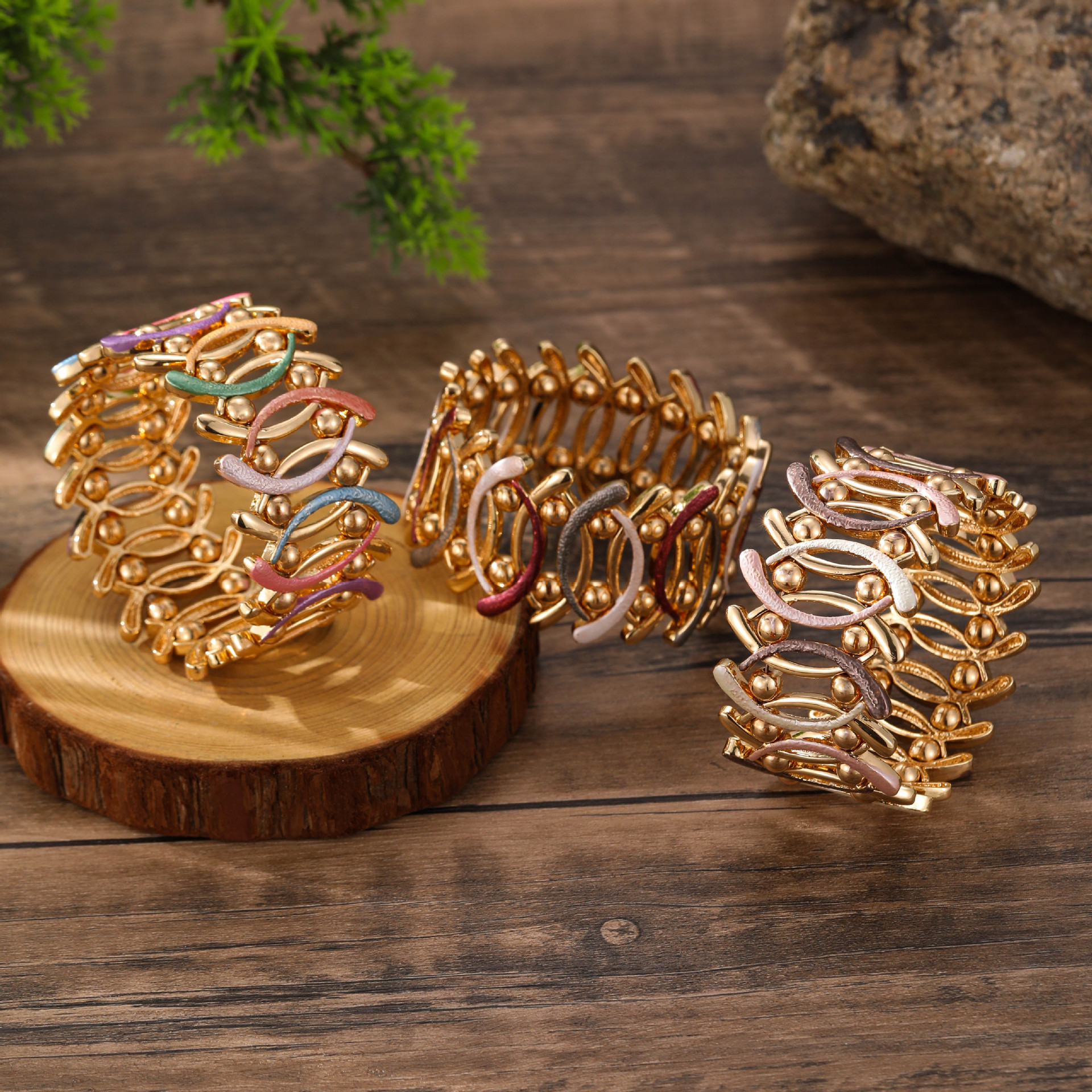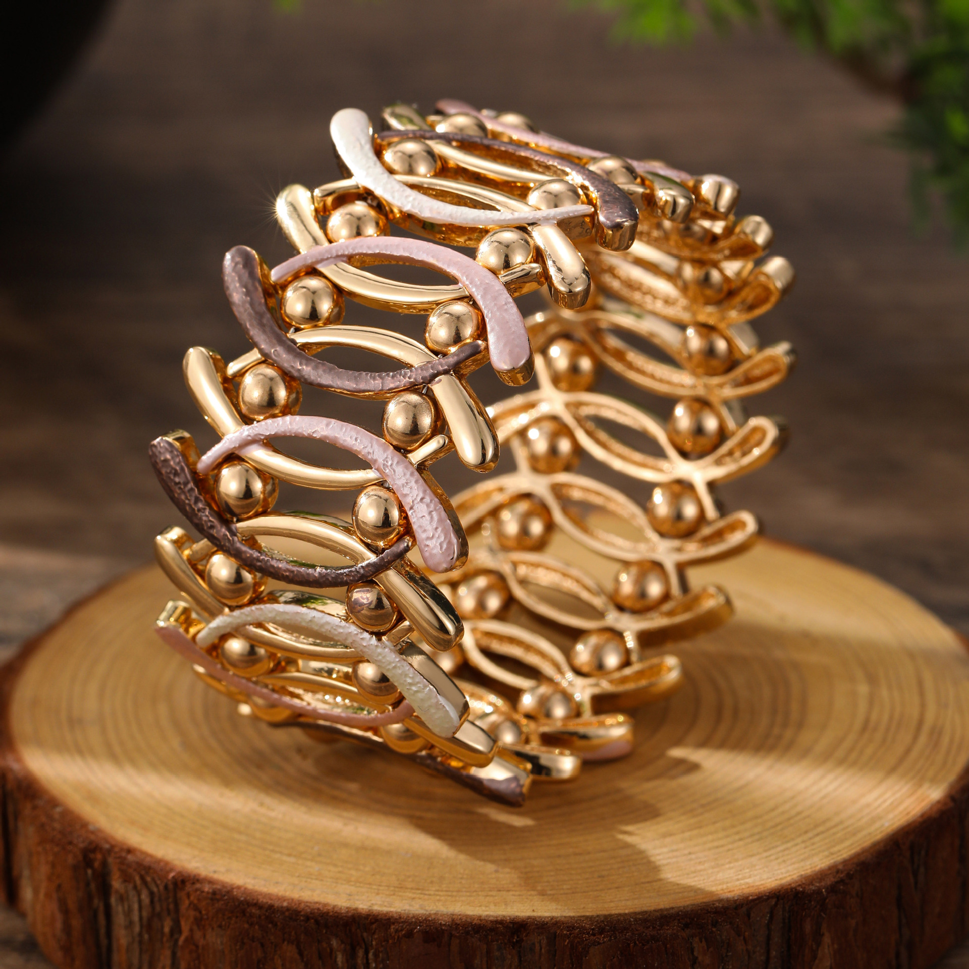 coffee-colored geometric line elastic bracelet-gold