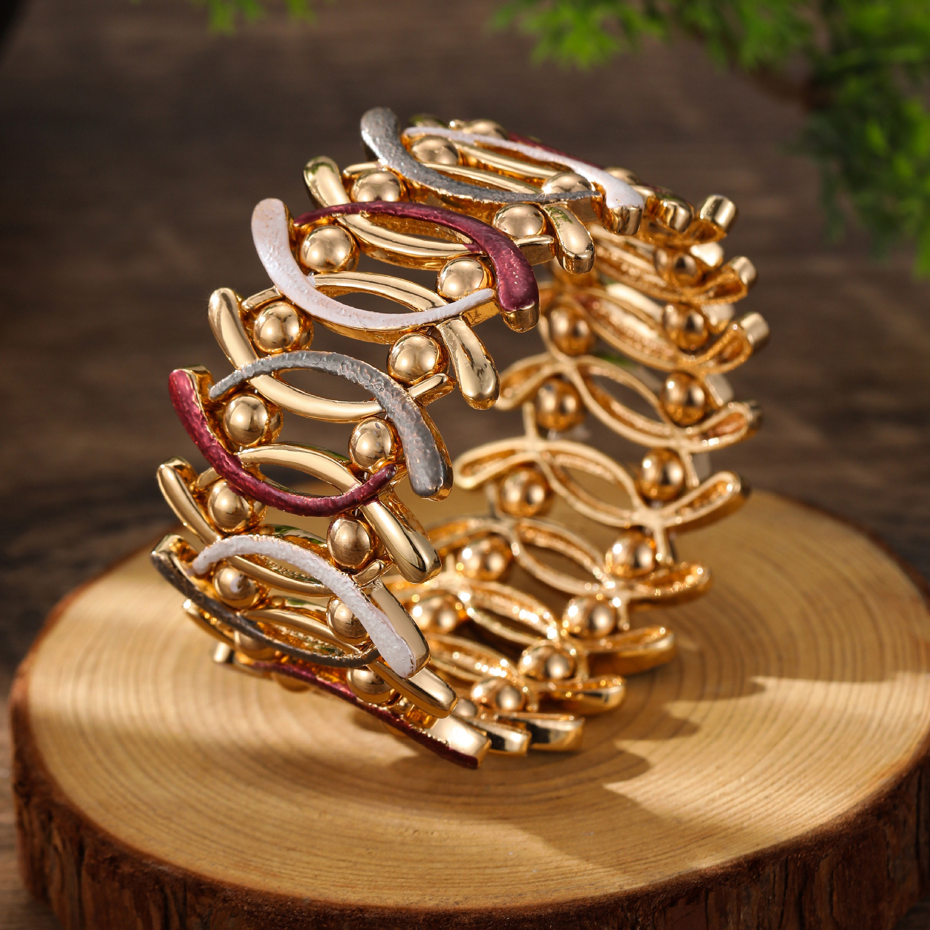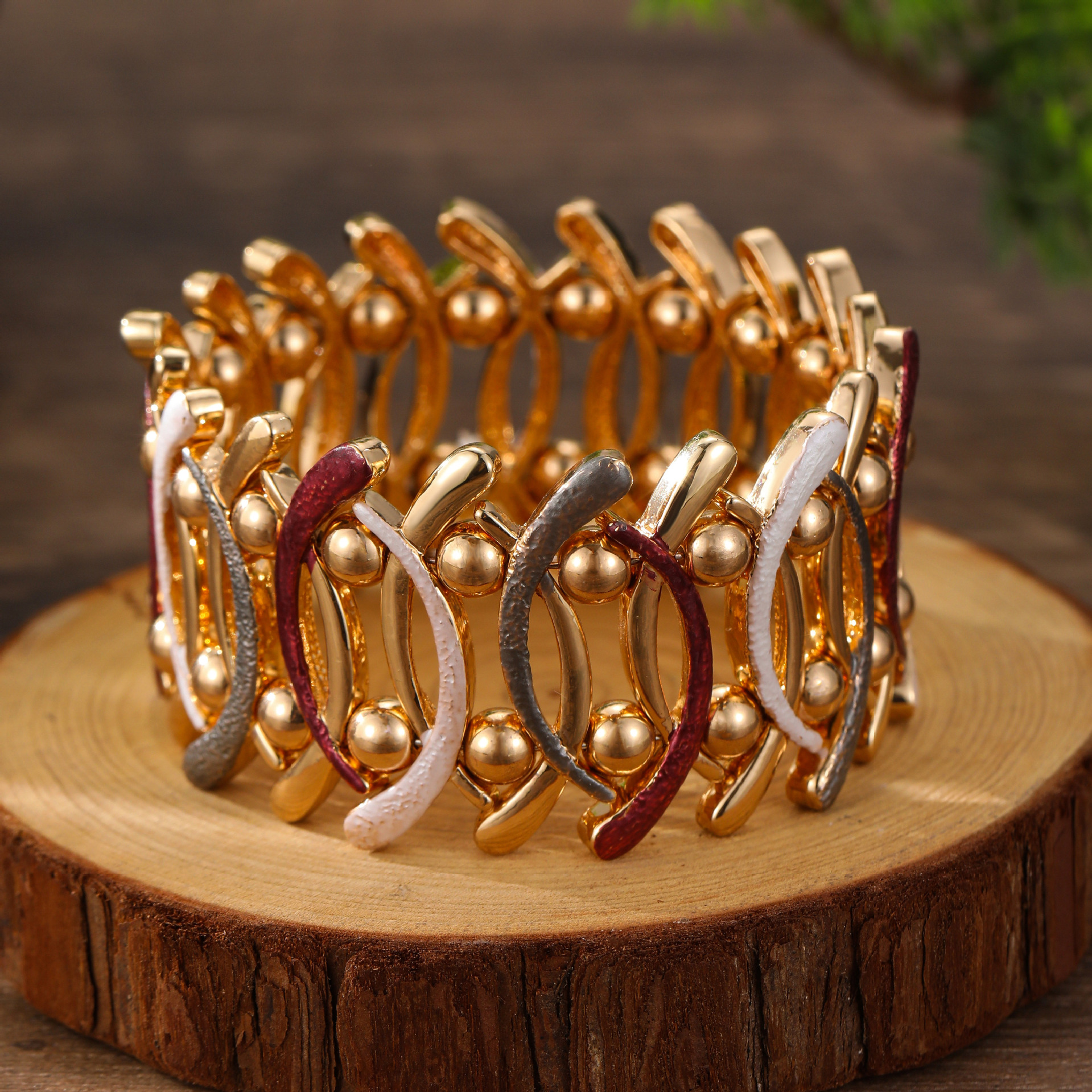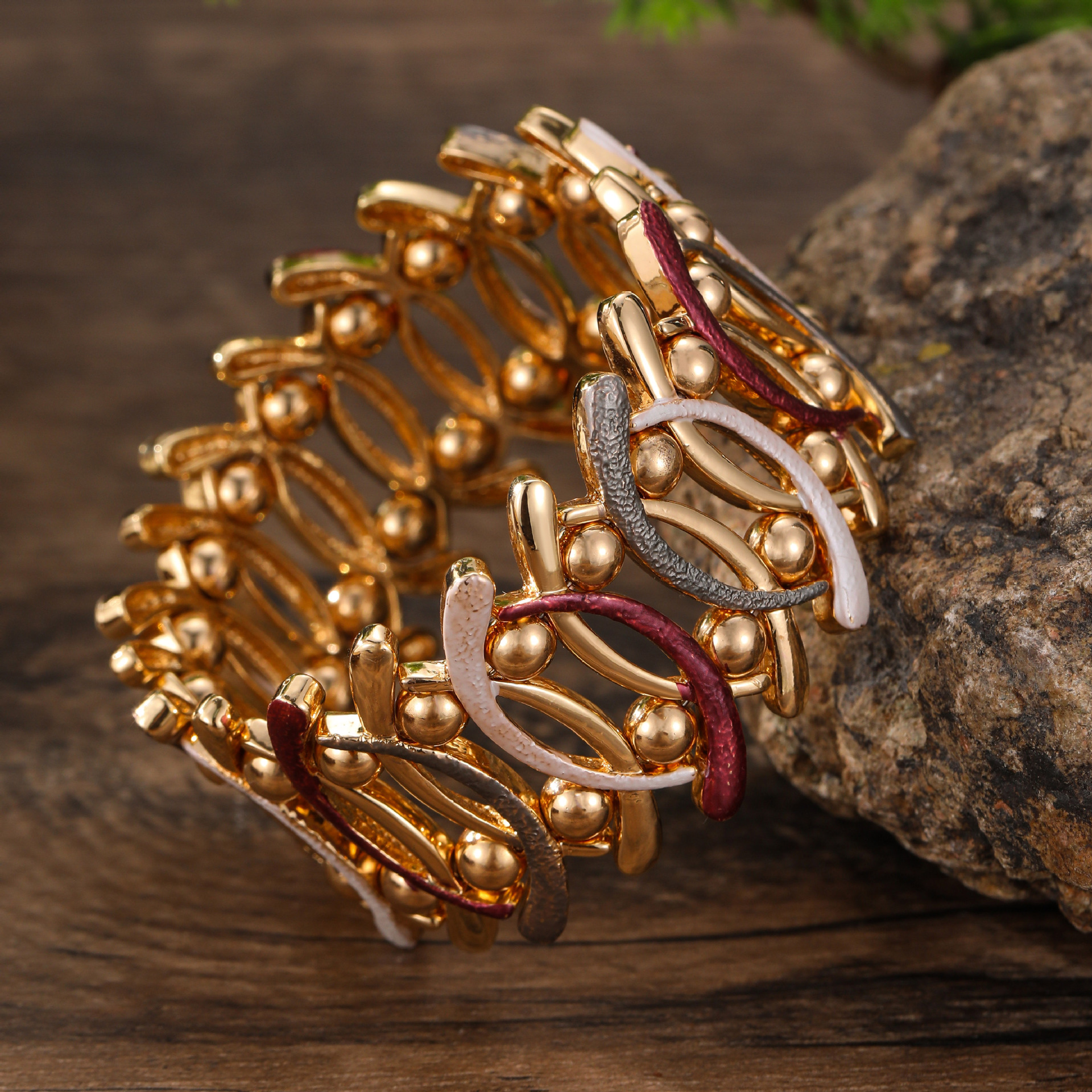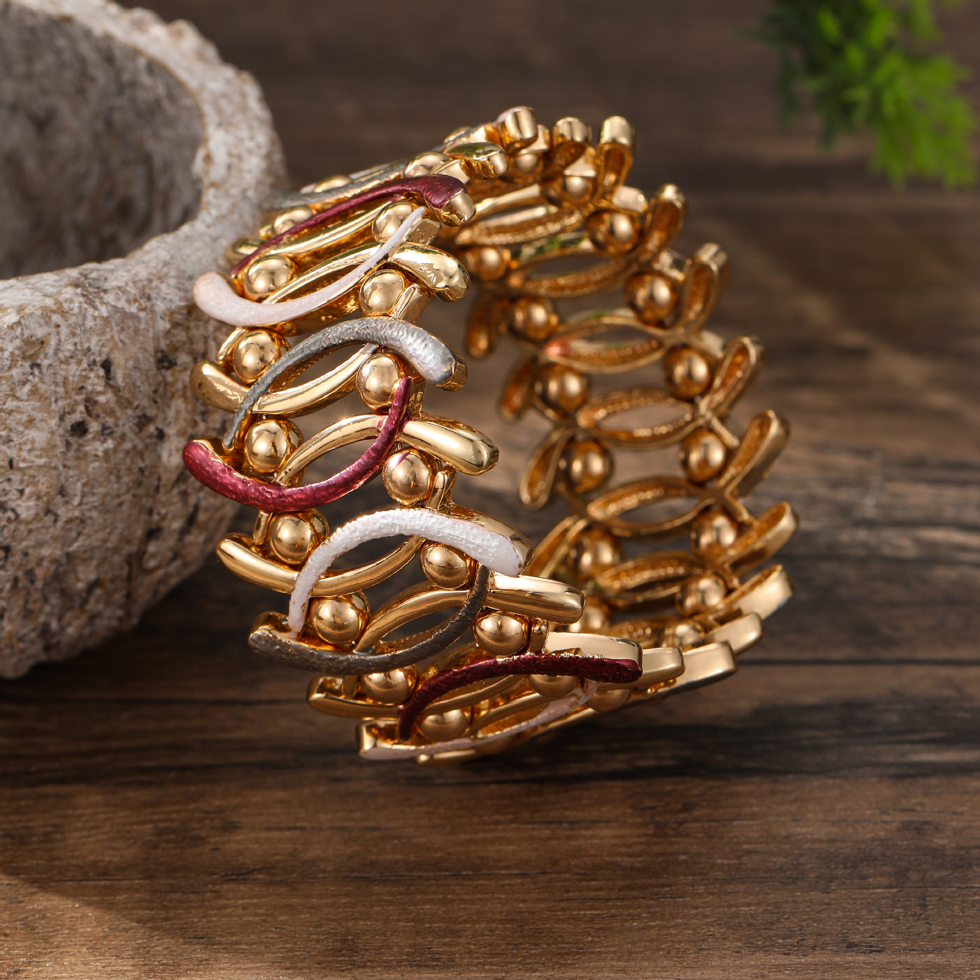 angolan red geometric line elastic bracelet-gold
