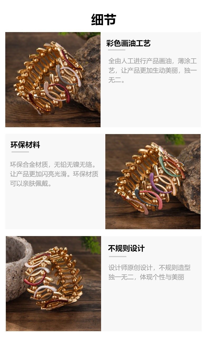 spring color geometric line elastic bracelet-gold