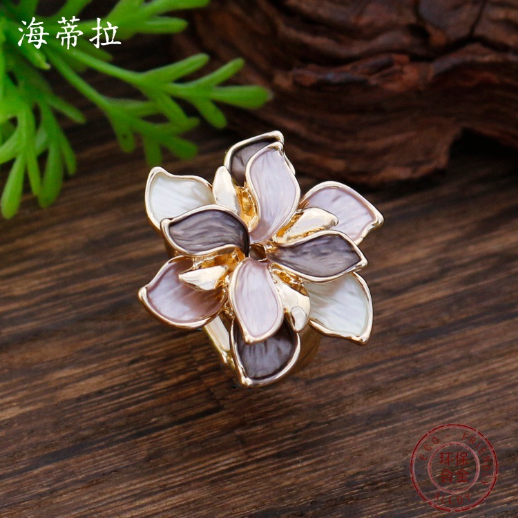 coffee-colored narcissus flower elastic ring-gold