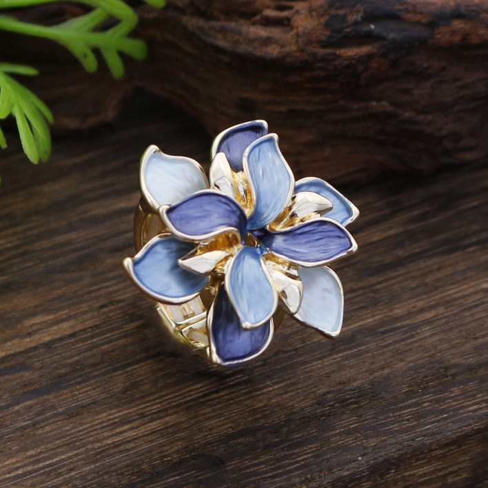 blue narcissus flower elastic ring-gold