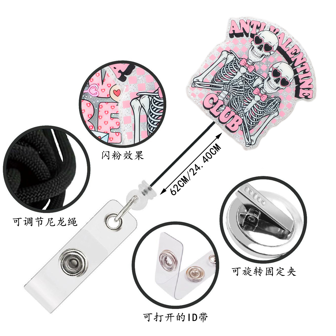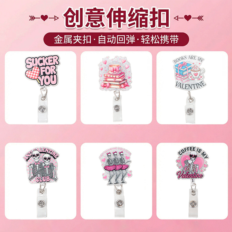 factory direct sales valentine's day rotating transparent can buckle face powder acrylic name tag voucher buckle badge retractable buckle