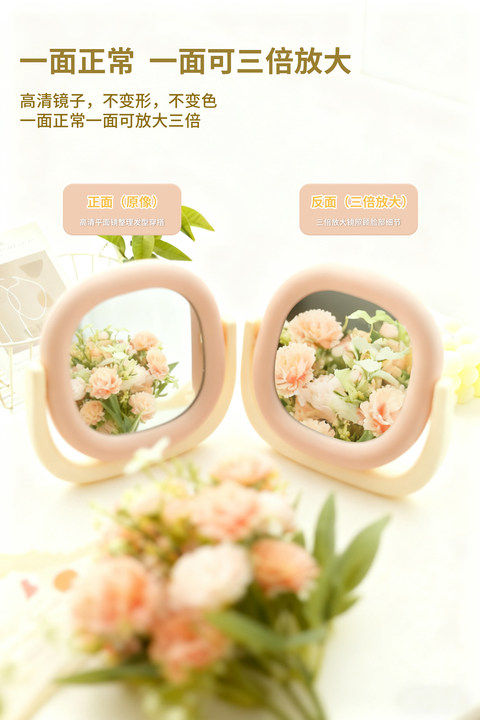 color classification: flower manduo v2685 round fat double-sided table mirror adorable pink frame, flower