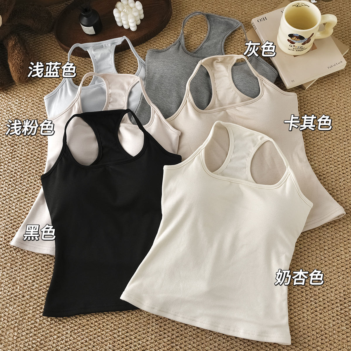 color: light blue, milk apricot, light pink, khaki, gray, black