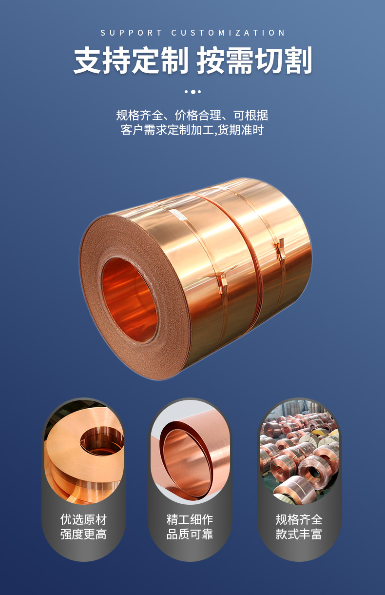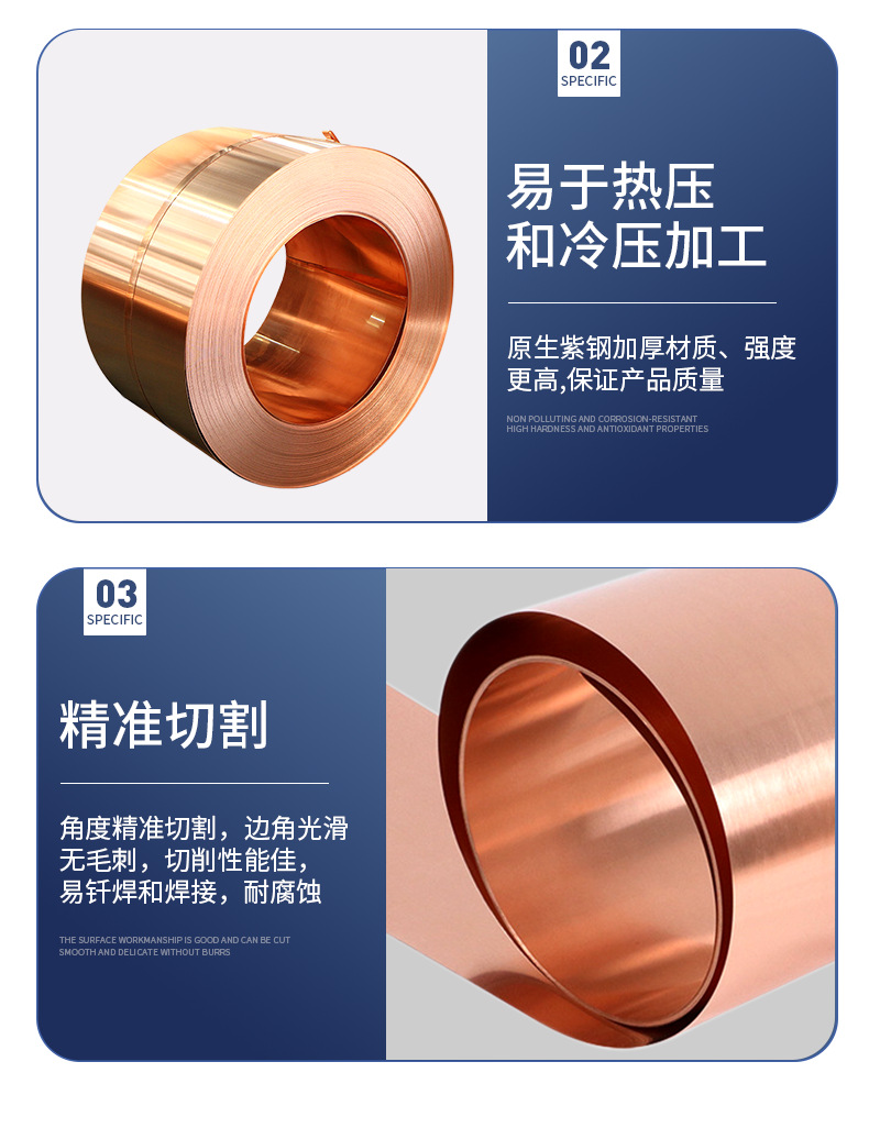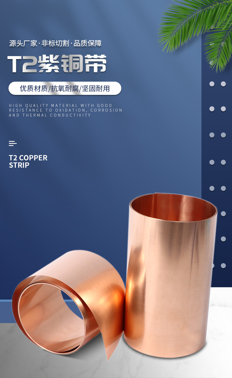 t2 copper strip thin section width 3mm-620mm thickness 0.015-3.5mm open flat slitting zero cut non-standard spot processing