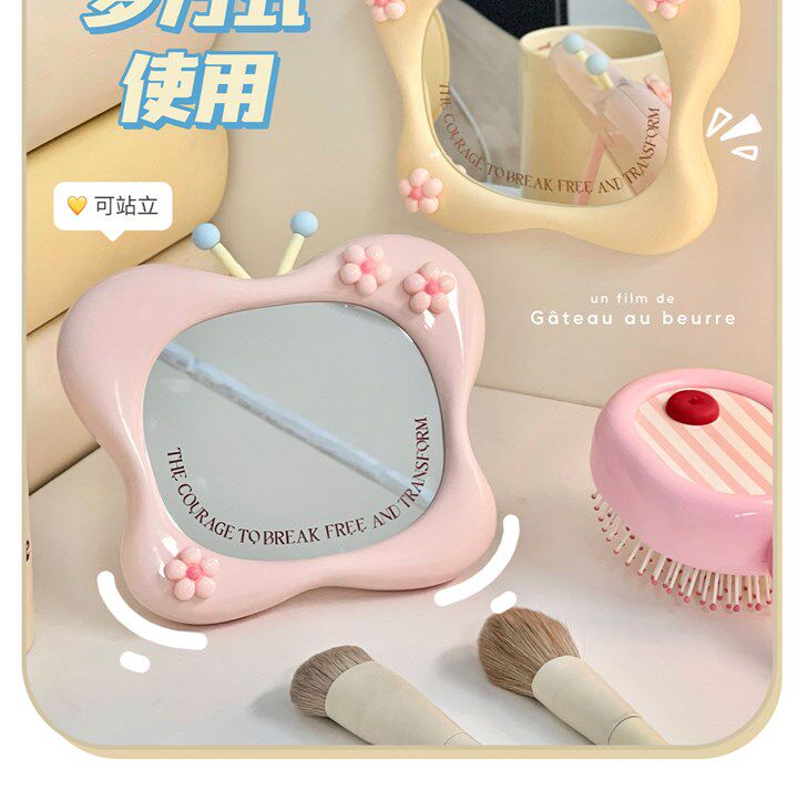 creamy-style butterfly-shaped foldable makeup mirror, desktop princess mirror, cute dresser, foldable makeup mirror for girls and students in dormitories.