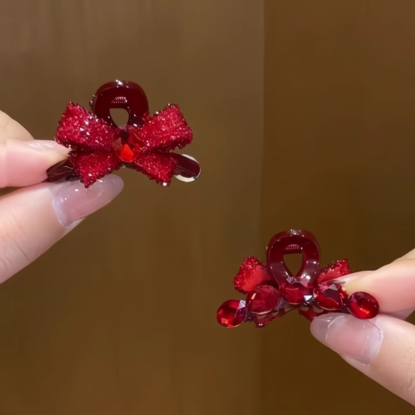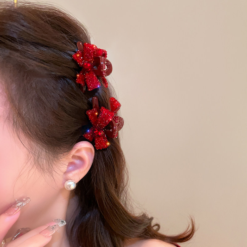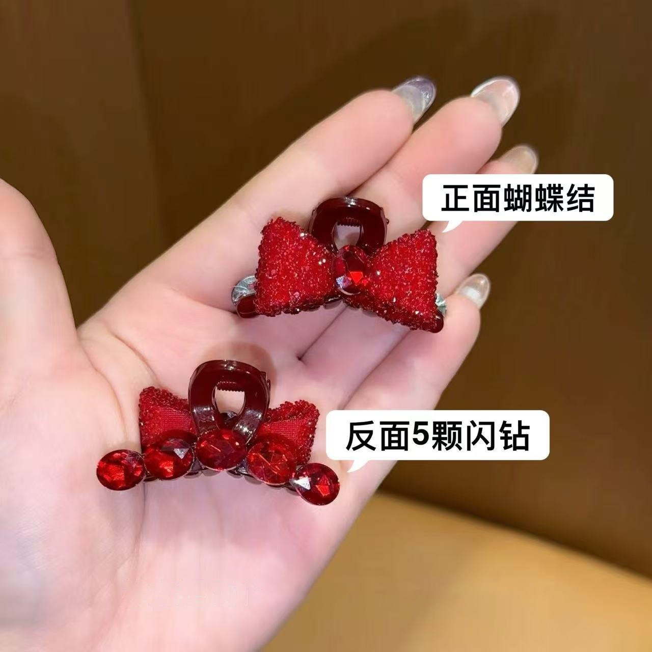 wine-red bow with five diamonds