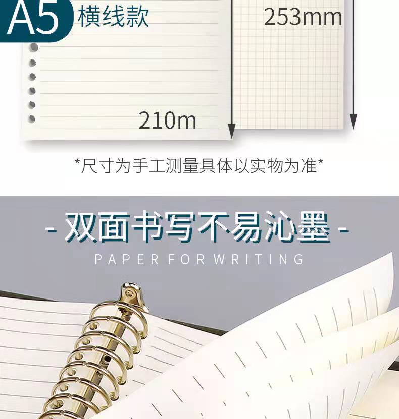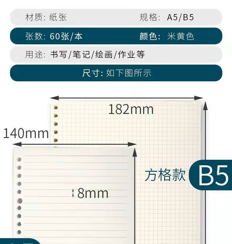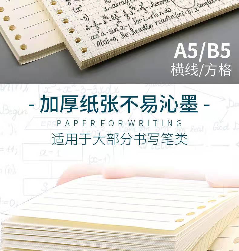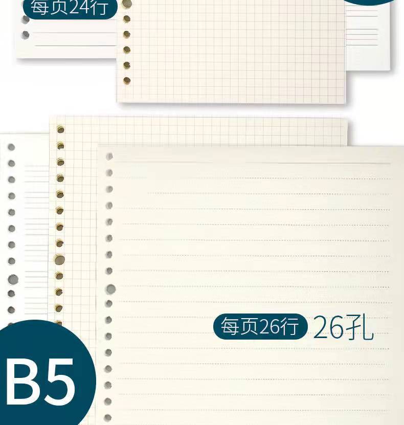 square partner loose-leaf core paper b5 loose-leaf paper 26 holes refill paper 20 holes a5 horizontal grid loose spiral notebook inner core wholesale