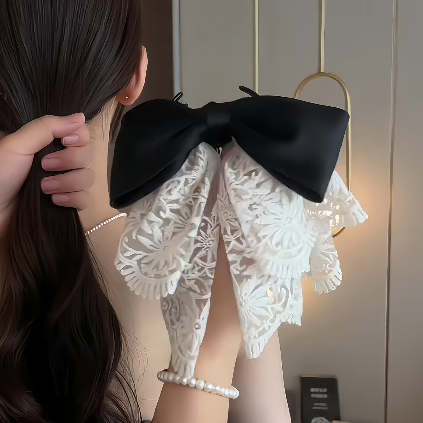 3# lace black bow claw clip [bow 15cm ribbon about 14cm]]