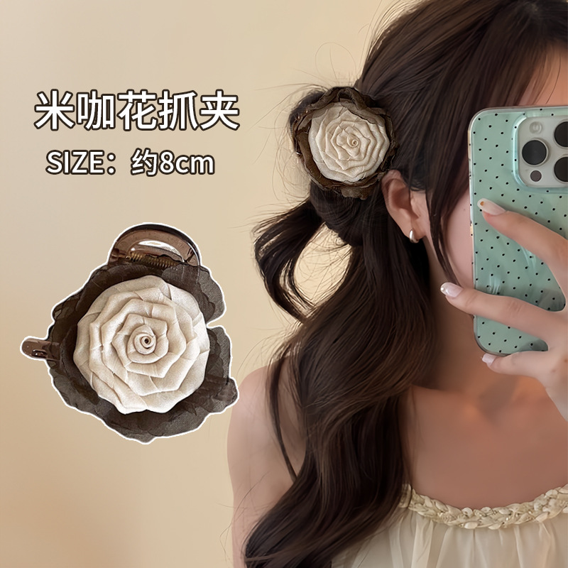 beige flower hair clip ~ about 8cm