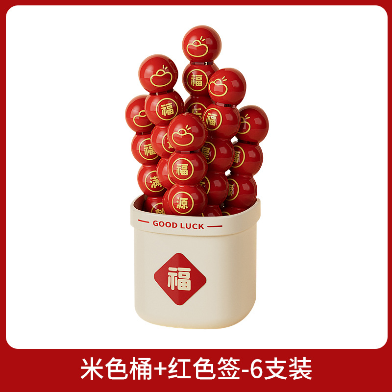 beige bucket + red signature