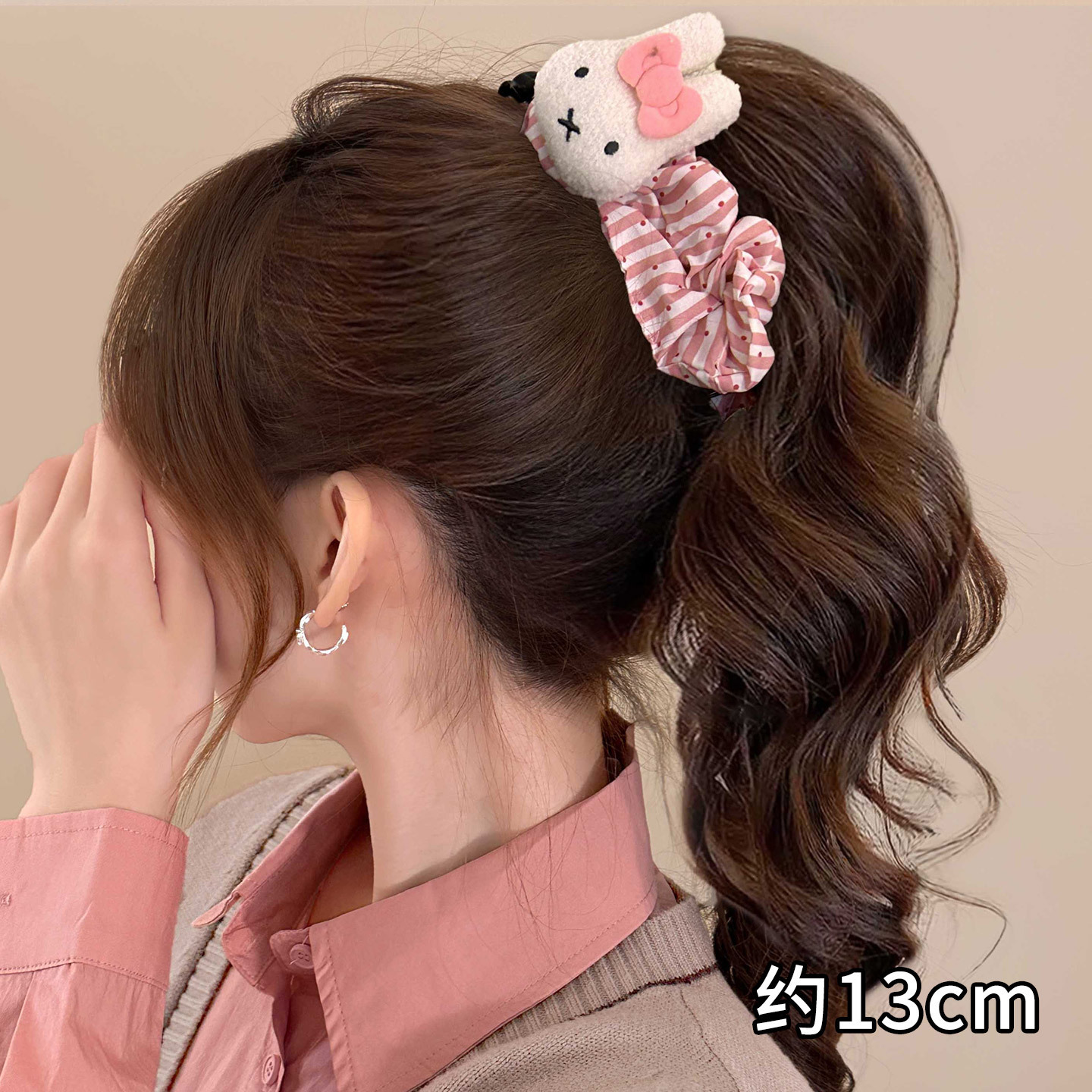 119# beige hair ball dried rose banana clip-10.5cm
