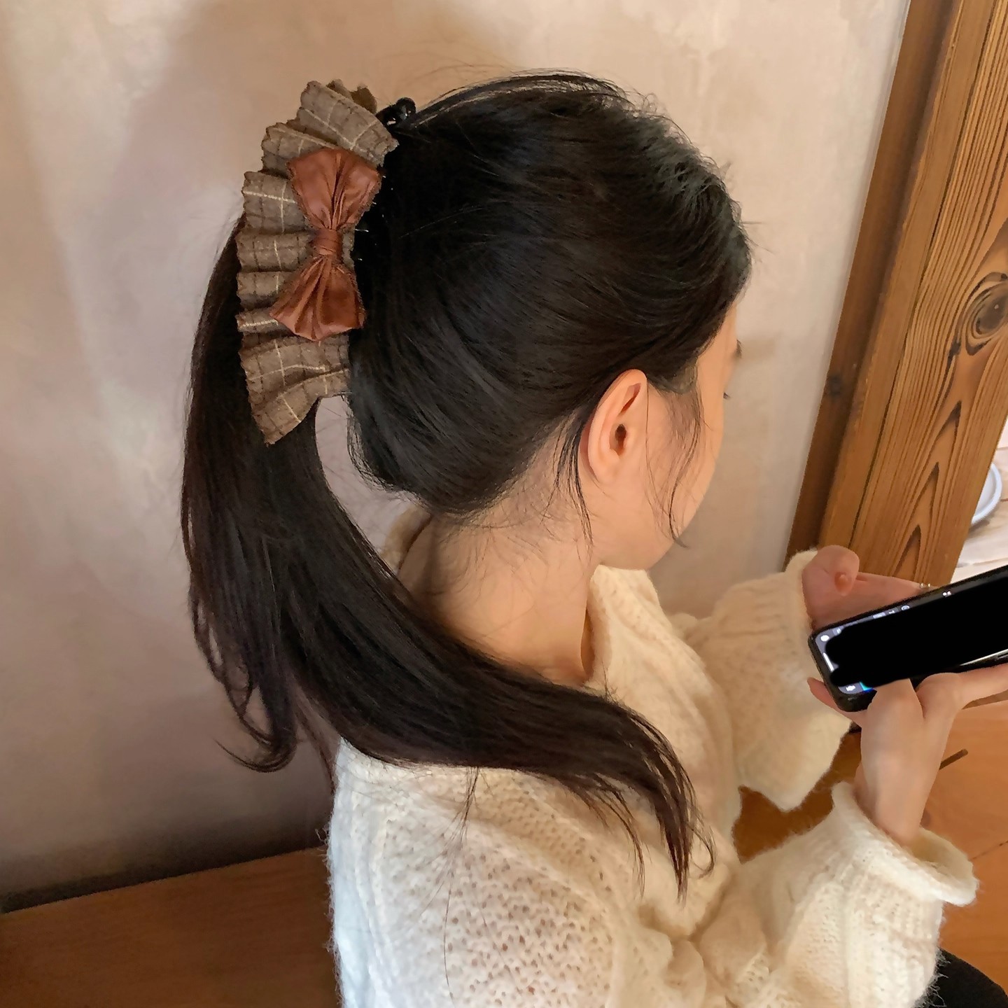 109# coffee suede bow banana clip-10.5cm
